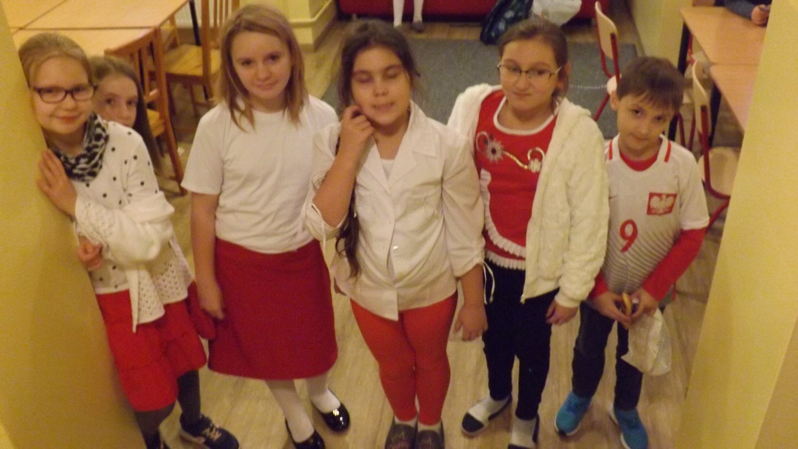 Dziś w naszej świetlicy z okazji Święta Narodowego przygotowaliśmy plakat także dzieci w strojach Narodowych chętnie oglądały wilm Historyczny .