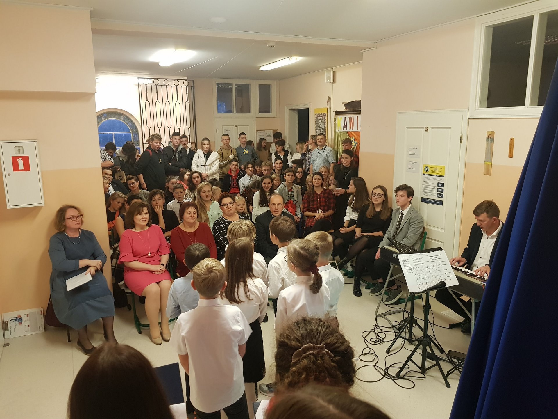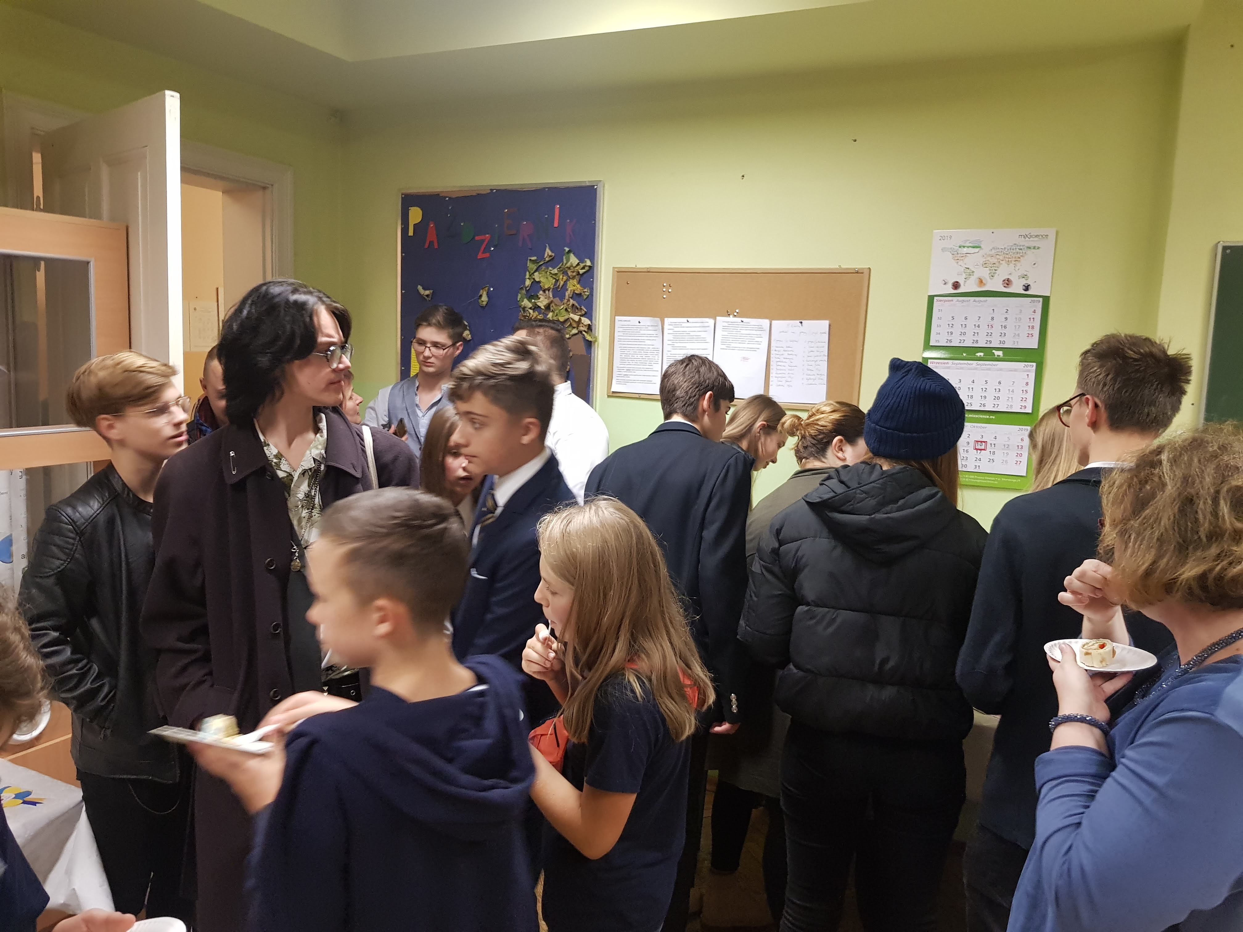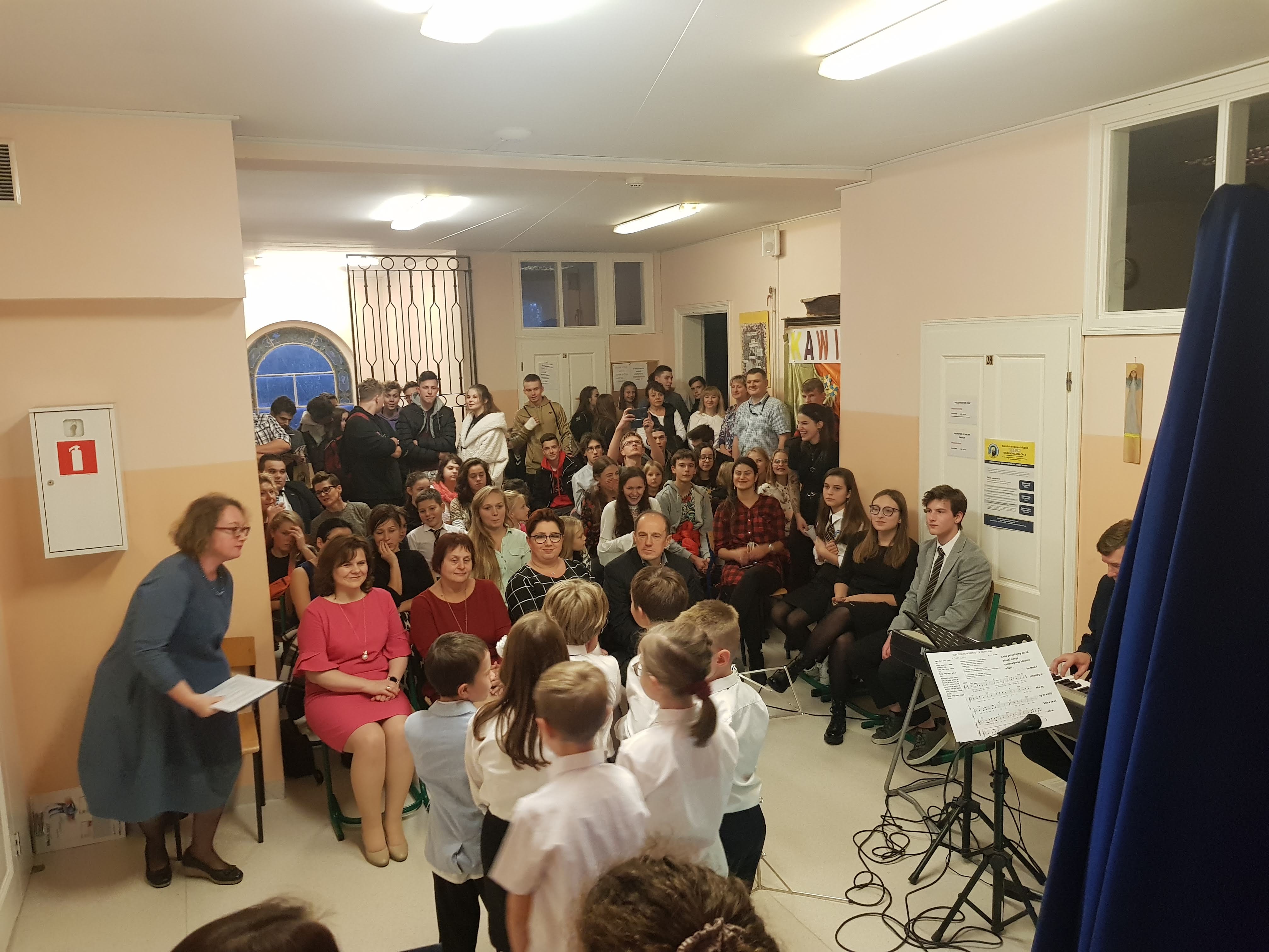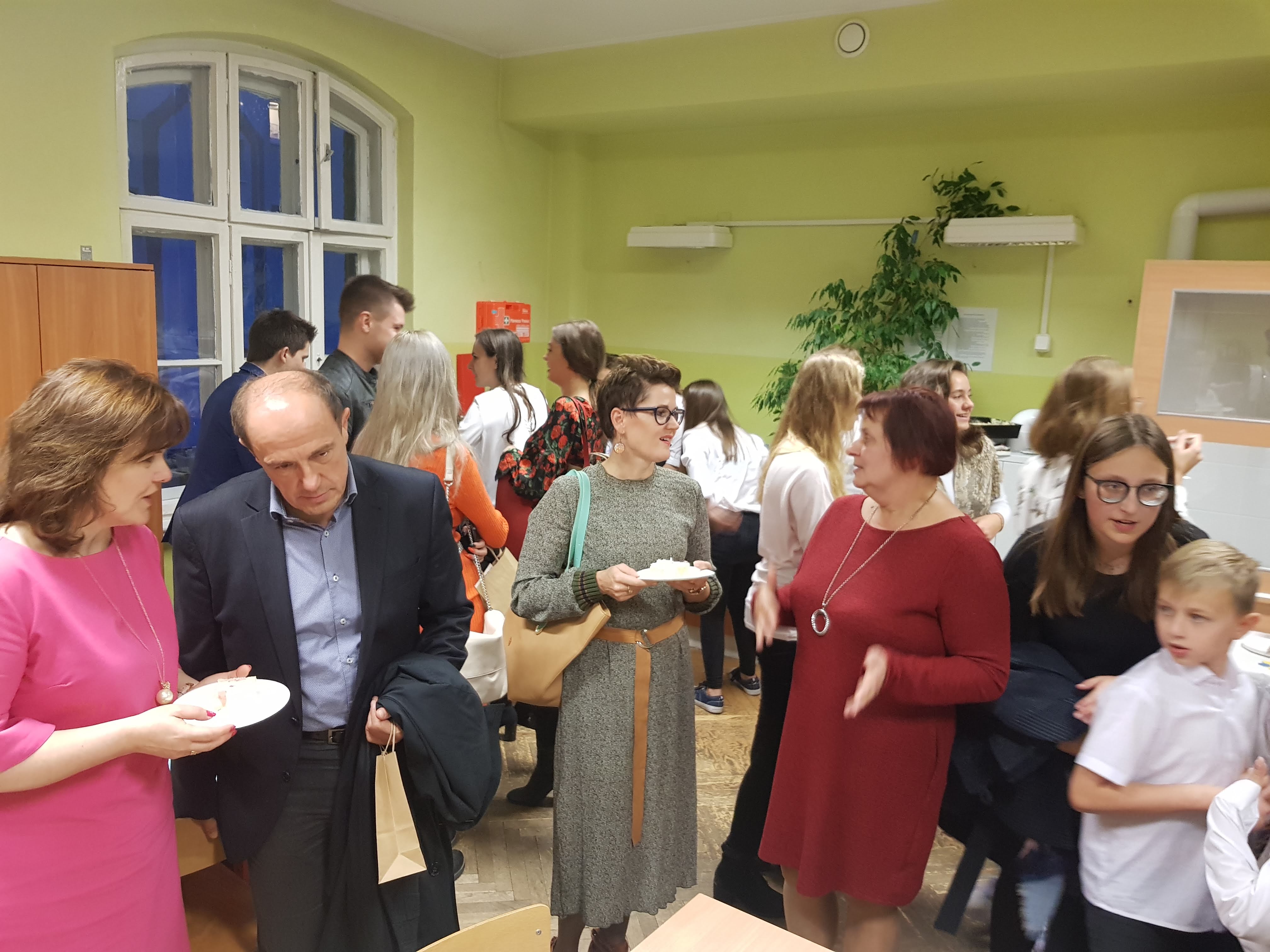 Dnia 11.10.2019 r. z okazji 15-lecia Szkoły mieliśmy zaszczyt gościć w naszym budynku przy ulicy Wojska Polskiego Absolwentów i Nauczycieli KSN. Nasi goście zgromadzili się tłumnie, co bardzo nas cieszy. Część oficjalną przygotowali i poprowadzili obecni uczniowie. Gości przywitali członkowie Fundacji oraz dyrekcja szkoły. Wszyscy zainteresowani mogli zwiedzić szkołę, odnaleźć swoją klasę, usiąść w ławce i przenieść się myślami do swojego dzieciństwa. Można było porozmawiać ze swoimi belframi. Ogromnym zainteresowaniem cieszyła się wystawa prac, dawne kroniki, zdjęcia oraz archiwalne filmy z różnych projektów szkolnych. Każdy z gości mógł zjeść kawał pysznego okolicznościowego tortu oraz przygotowane z okazji zjazdu wytrawne przekąski.