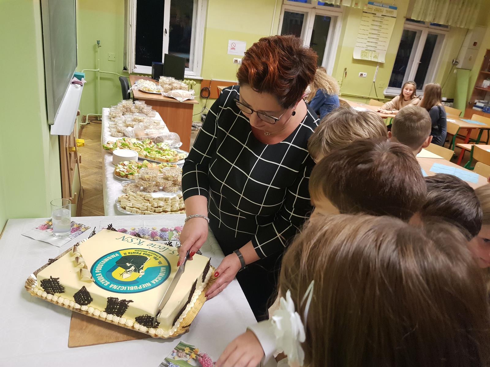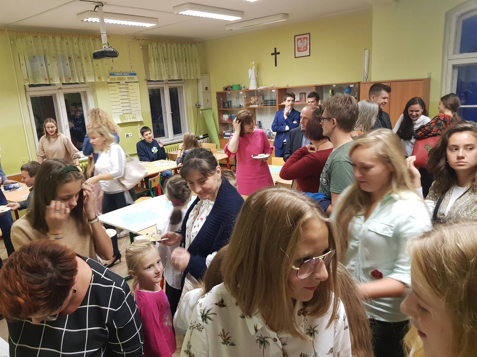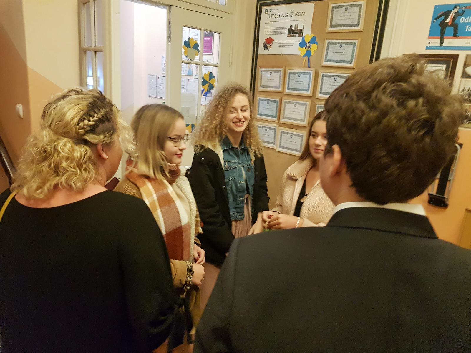 Dnia 11.10.2019 r. z okazji 15-lecia Szkoły mieliśmy zaszczyt gościć w naszym budynku przy ulicy Wojska Polskiego Absolwentów i Nauczycieli KSN. Nasi goście zgromadzili się tłumnie, co bardzo nas cieszy. Część oficjalną przygotowali i poprowadzili obecni uczniowie. Gości przywitali członkowie Fundacji oraz dyrekcja szkoły. Wszyscy zainteresowani mogli zwiedzić szkołę, odnaleźć swoją klasę, usiąść w ławce i przenieść się myślami do swojego dzieciństwa. Można było porozmawiać ze swoimi belframi. Ogromnym zainteresowaniem cieszyła się wystawa prac, dawne kroniki, zdjęcia oraz archiwalne filmy z różnych projektów szkolnych. Każdy z gości mógł zjeść kawał pysznego okolicznościowego tortu oraz przygotowane z okazji zjazdu wytrawne przekąski.