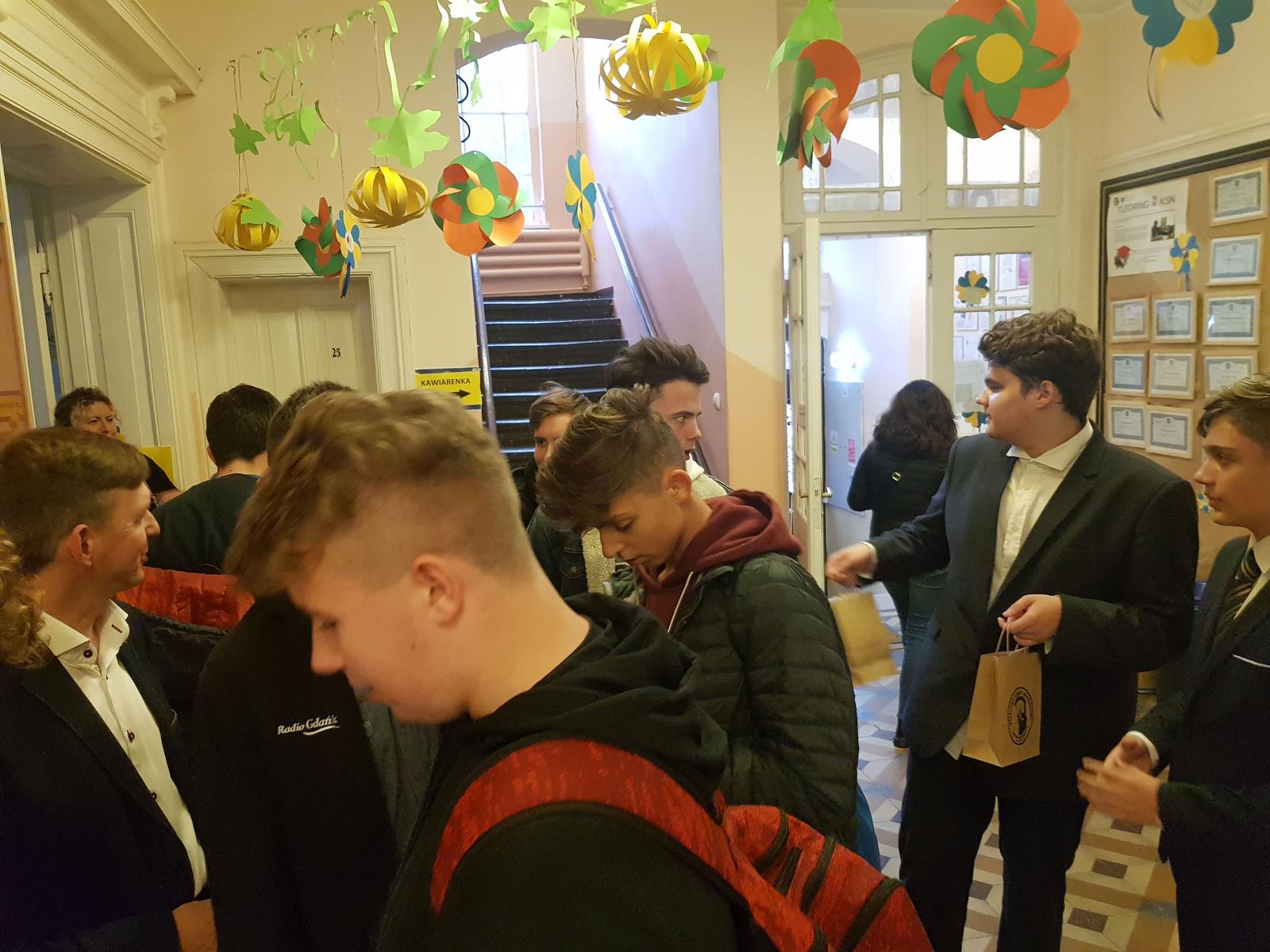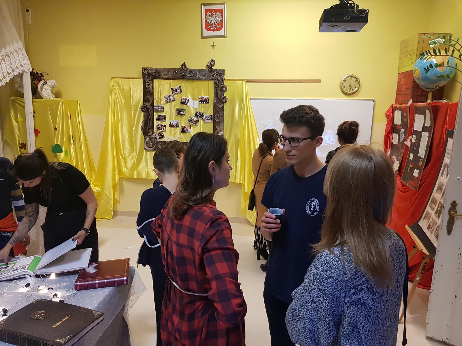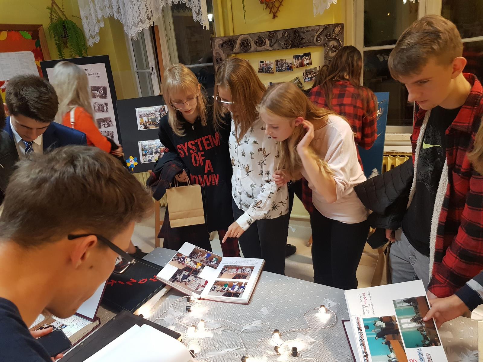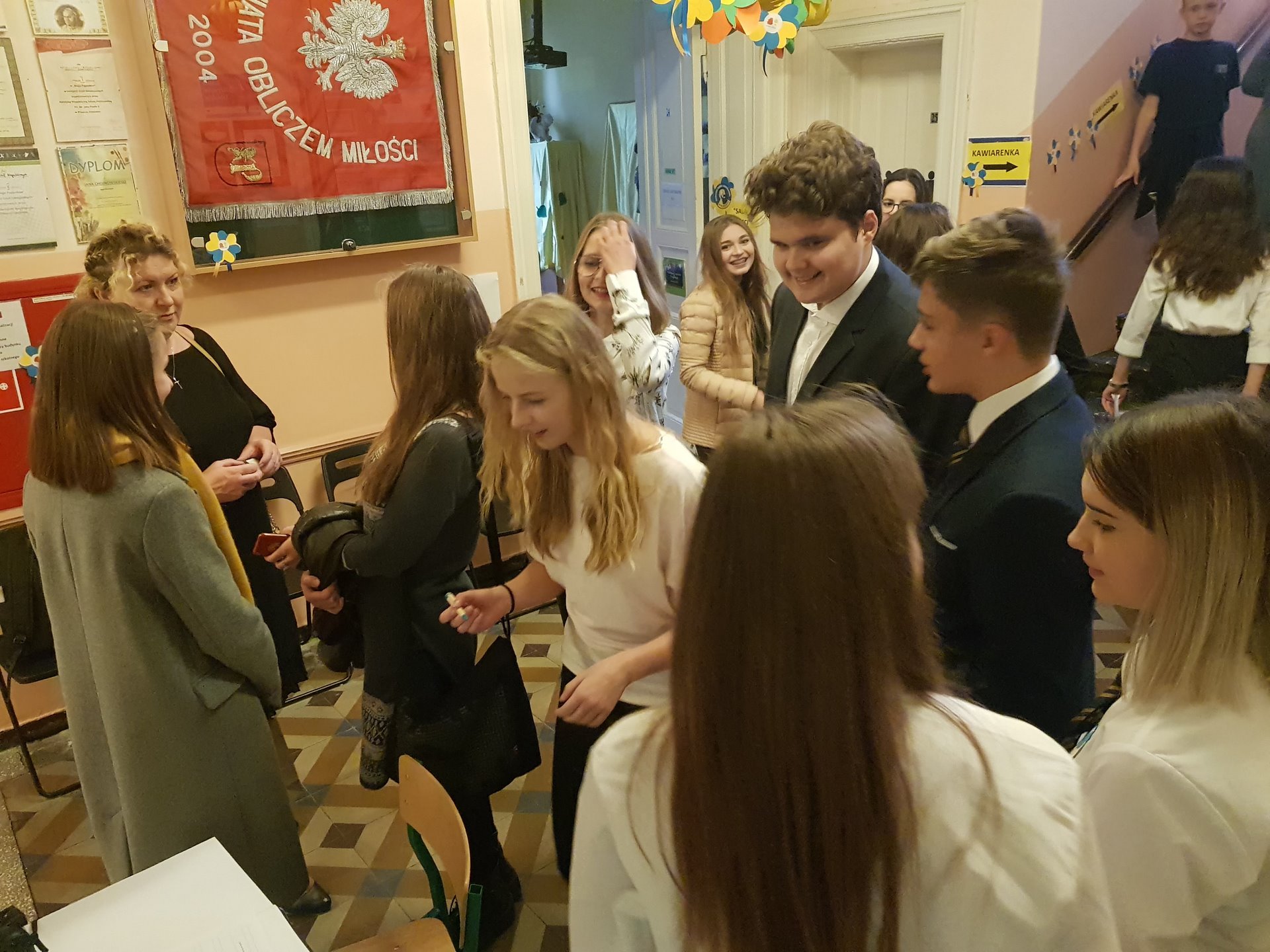 Dnia 11.10.2019 r. z okazji 15-lecia Szkoły mieliśmy zaszczyt gościć w naszym budynku przy ulicy Wojska Polskiego Absolwentów i Nauczycieli KSN. Nasi goście zgromadzili się tłumnie, co bardzo nas cieszy. Część oficjalną przygotowali i poprowadzili obecni uczniowie. Gości przywitali członkowie Fundacji oraz dyrekcja szkoły. Wszyscy zainteresowani mogli zwiedzić szkołę, odnaleźć swoją klasę, usiąść w ławce i przenieść się myślami do swojego dzieciństwa. Można było porozmawiać ze swoimi belframi. Ogromnym zainteresowaniem cieszyła się wystawa prac, dawne kroniki, zdjęcia oraz archiwalne filmy z różnych projektów szkolnych. Każdy z gości mógł zjeść kawał pysznego okolicznościowego tortu oraz przygotowane z okazji zjazdu wytrawne przekąski.