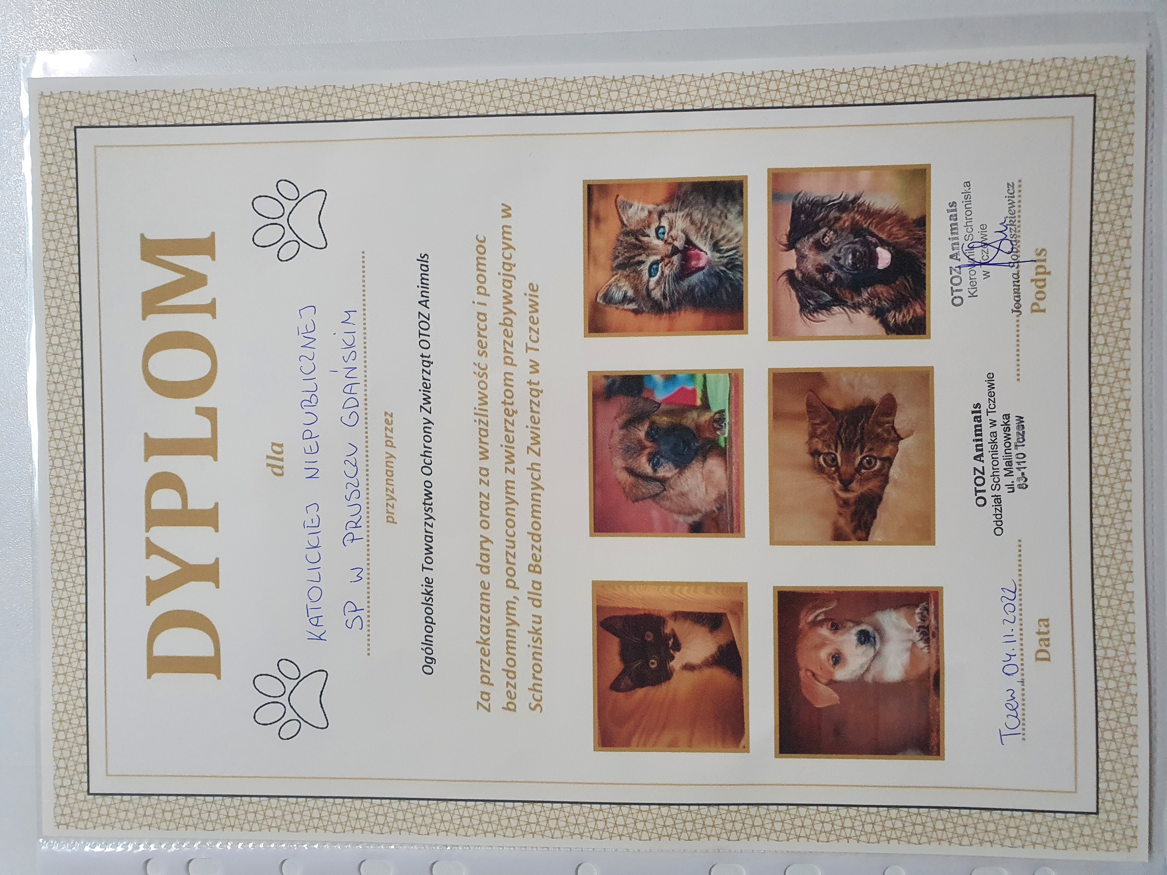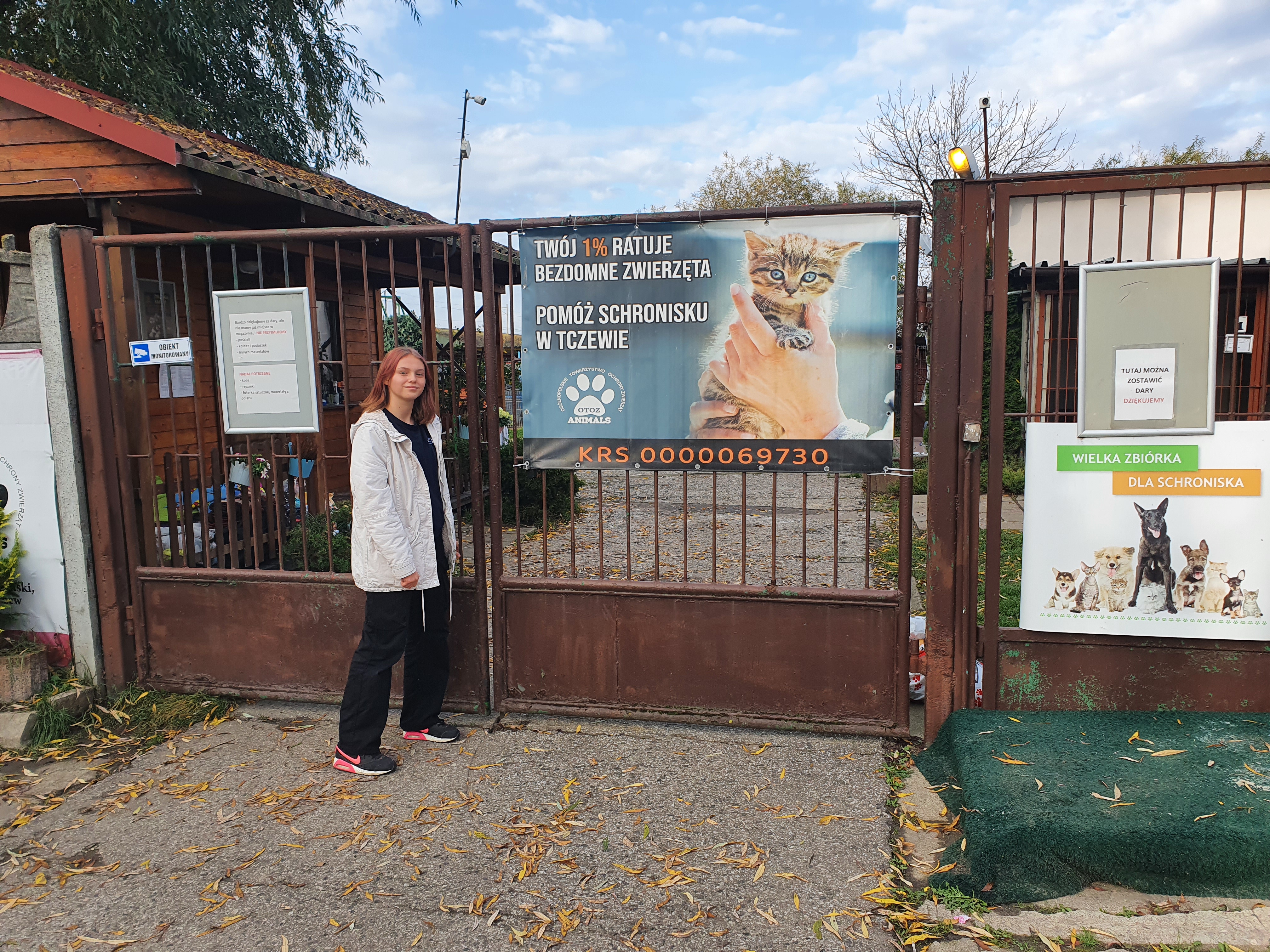 W ramach akcji wolontariatu szkolnego, 4 listopada odwiedziliśmy OTOZ Animals - schronisko dla zwierząt w Tczewie. Psiaki były przeurocze i czekające na kogoś, kto zechce chociaż pogłaskać… Karolinę najbardziej urzekł Szymek – pies, który spędził w schronisku 7 miesięcy. Mimo szczerych chęci w pomaganiu i wielkiego serca dla zwierząt, pobyt w schronisku wyzwala mnóstwo trudnych emocji i należy wykazać się dużą siłą, żeby temu sprostać.