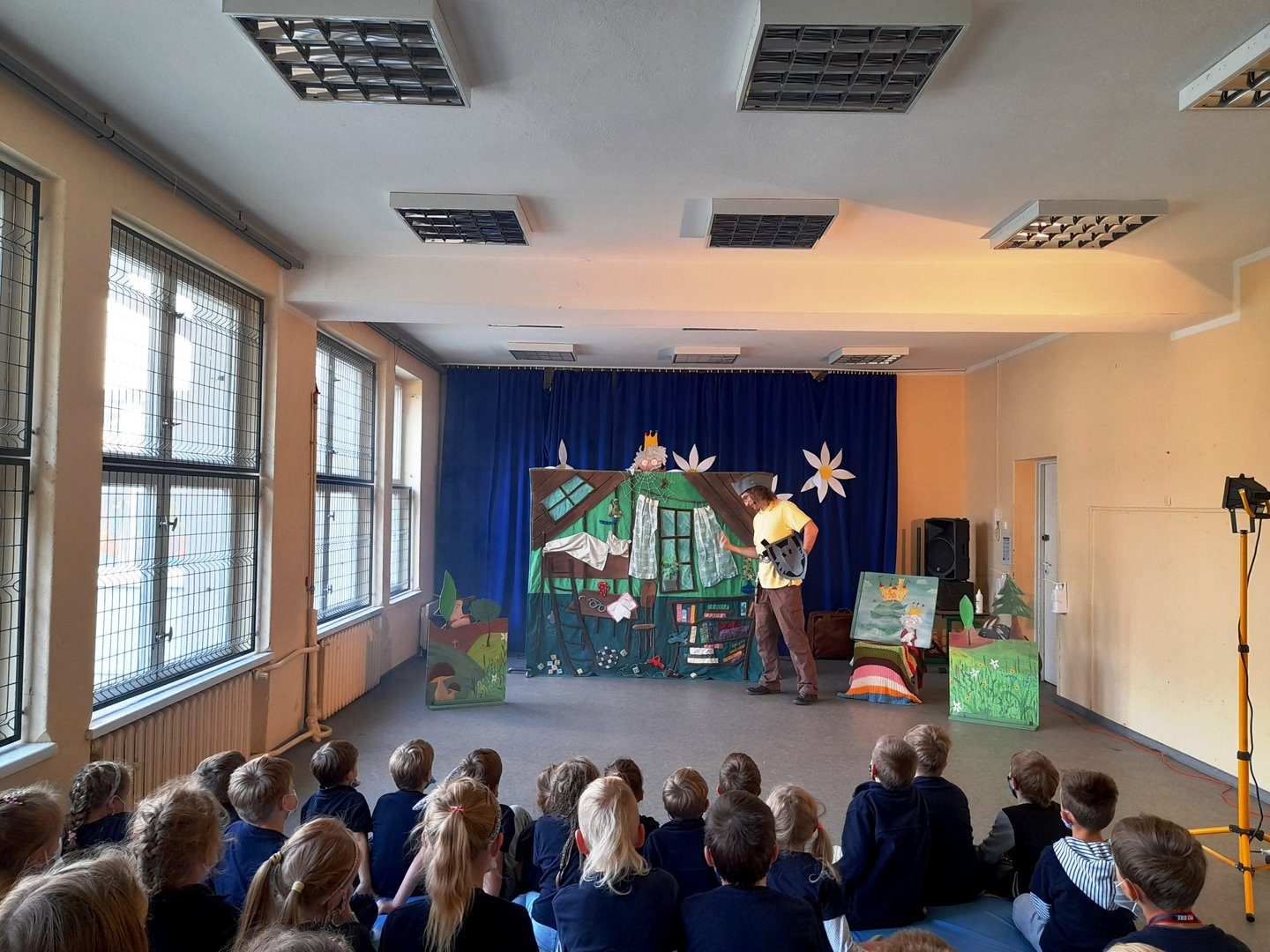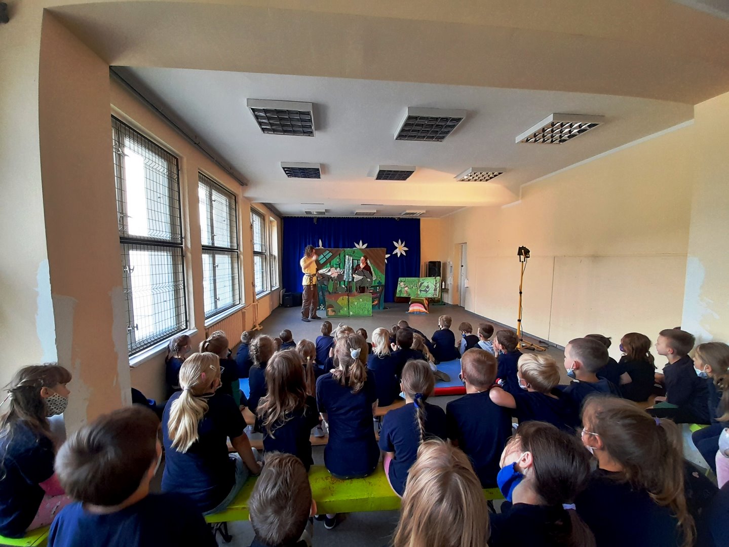 5 października 2021r. gościliśmy Teatr Obieżyświat z przedstawieniem "Czarek w świecie bajek", który tym razem przedstawił bajkę o tematyce proekologicznej.