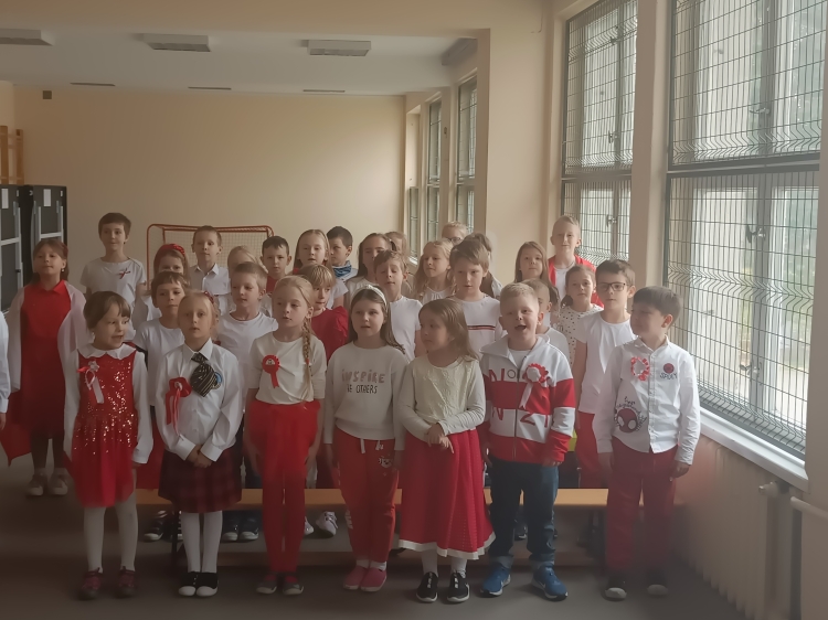Dnia 10.11.2022 roku z okazji Dnia Niepodległości dzieci z oddziału przedszkolnego wystąpiły z piosenką pt. " Płynie Wisła, płynie "