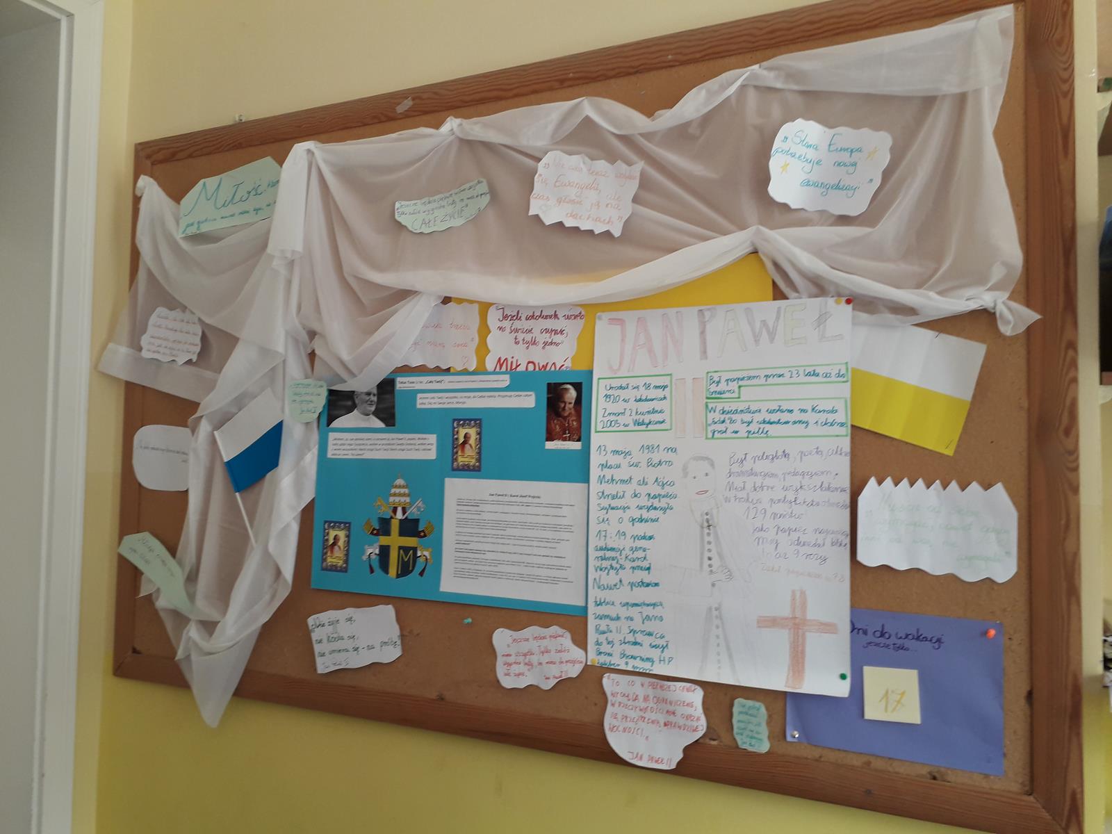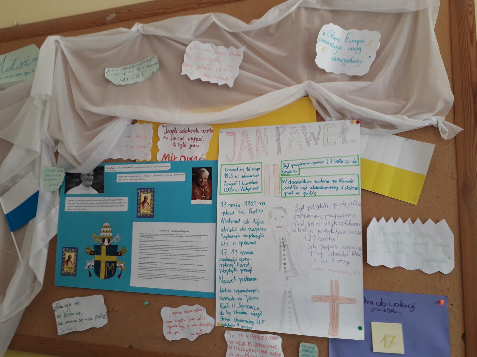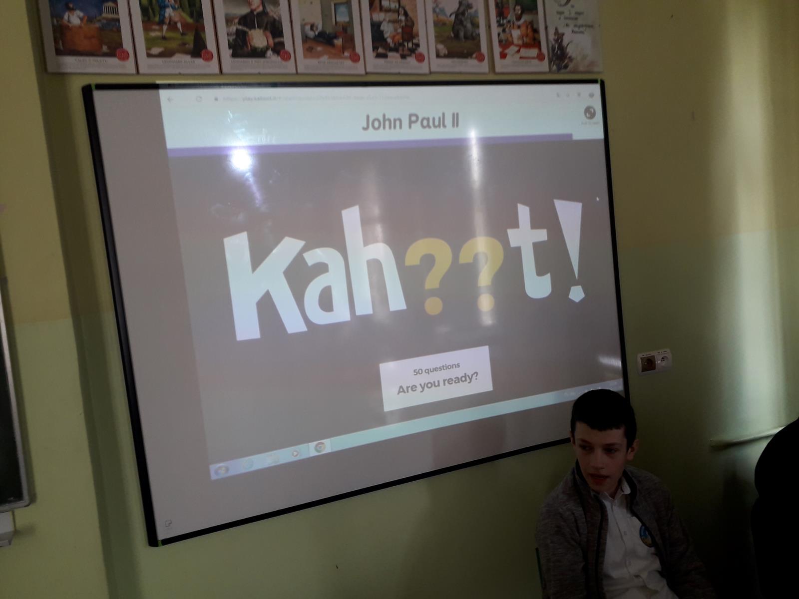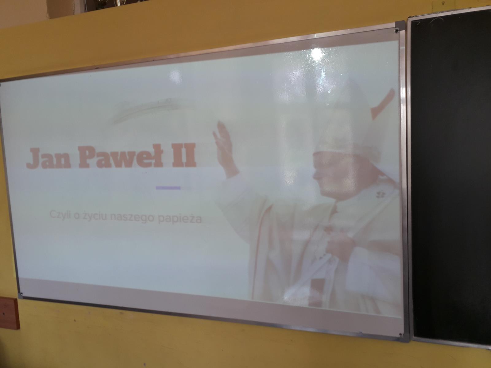Wszystkie klasy miały qiuz wiedzy o Janie Pawle II, przygotowany przez klasę 3B gim, a w klasach 7-8 SP i 3 gim była również gra planszowa, przygotowana przez klasę 3A gim.
