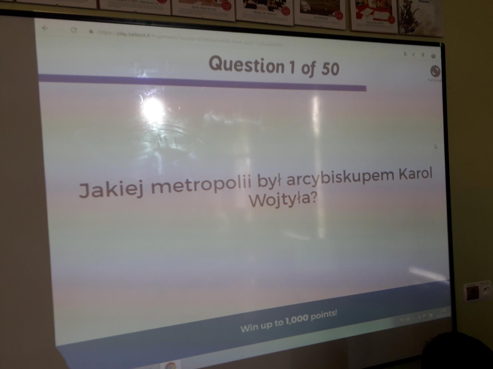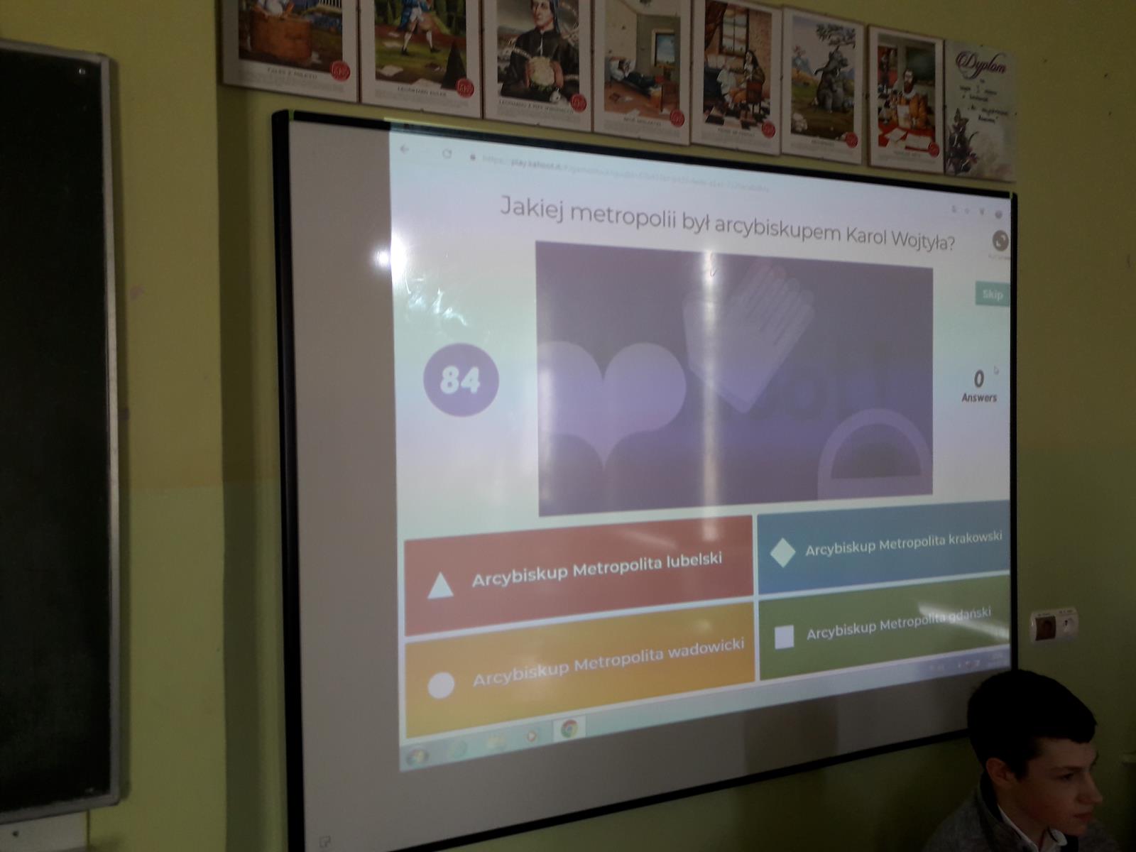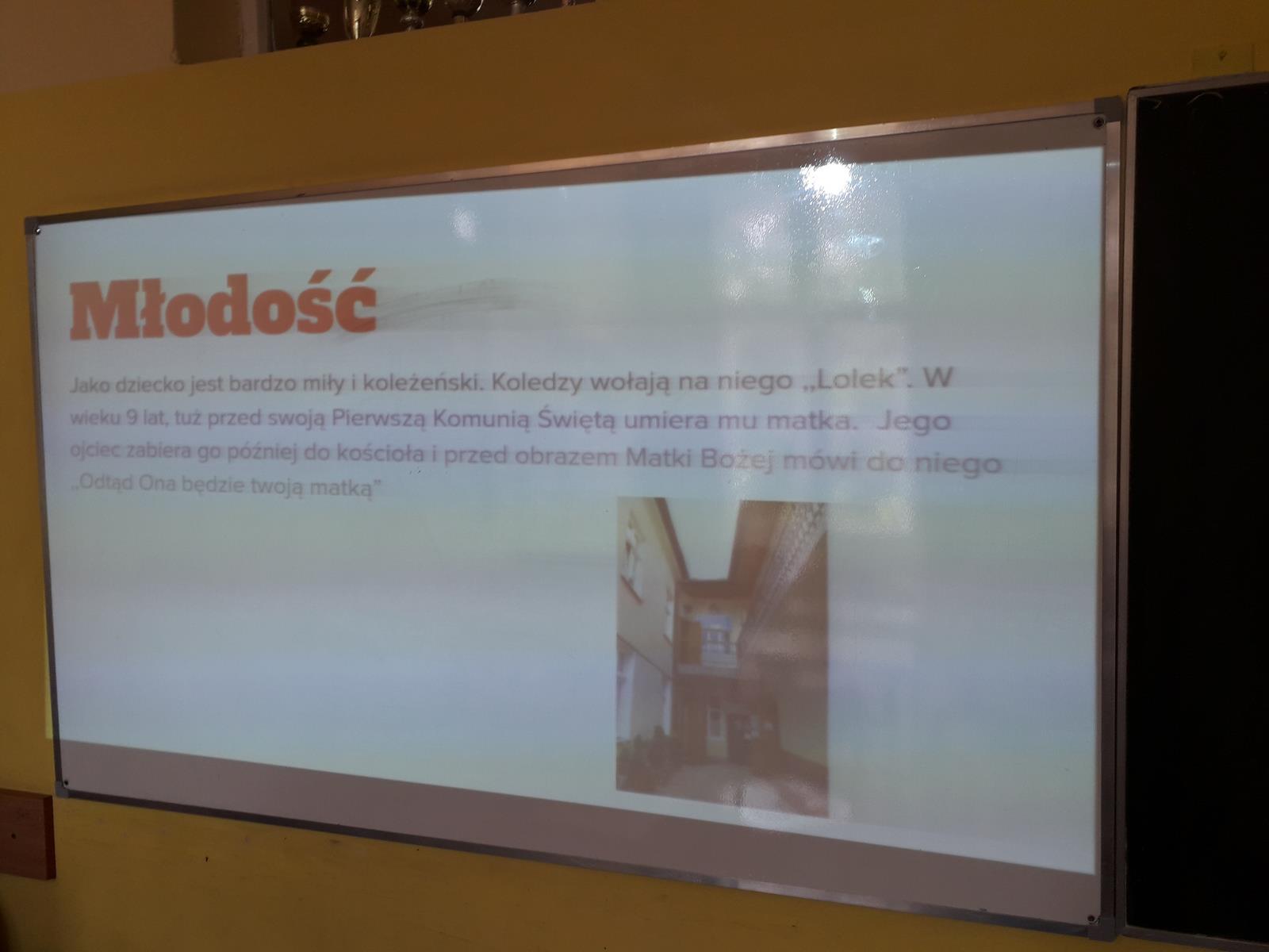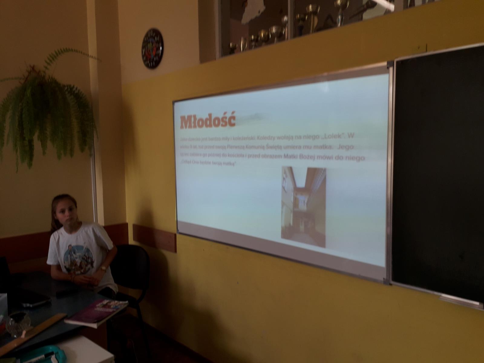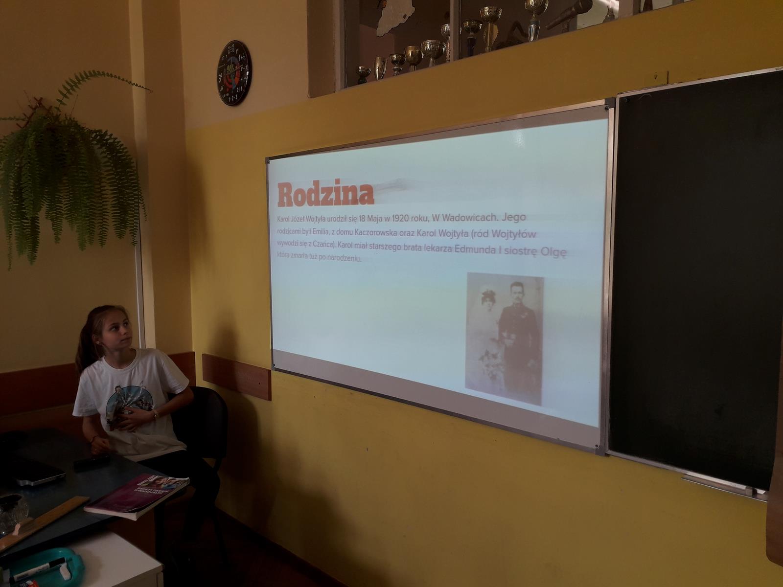 Wszystkie klasy miały qiuz wiedzy o Janie Pawle II, przygotowany przez klasę 3B gim, a w klasach 7-8 SP i 3 gim była również gra planszowa, przygotowana przez klasę 3A gim.