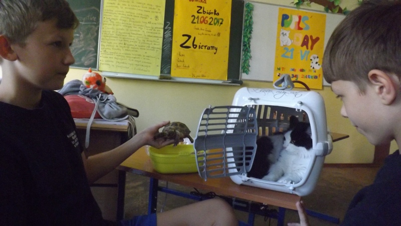 Naszą szkołę odwiedziły w tym dniu kotki, pieski, żółw i gryzonie.
