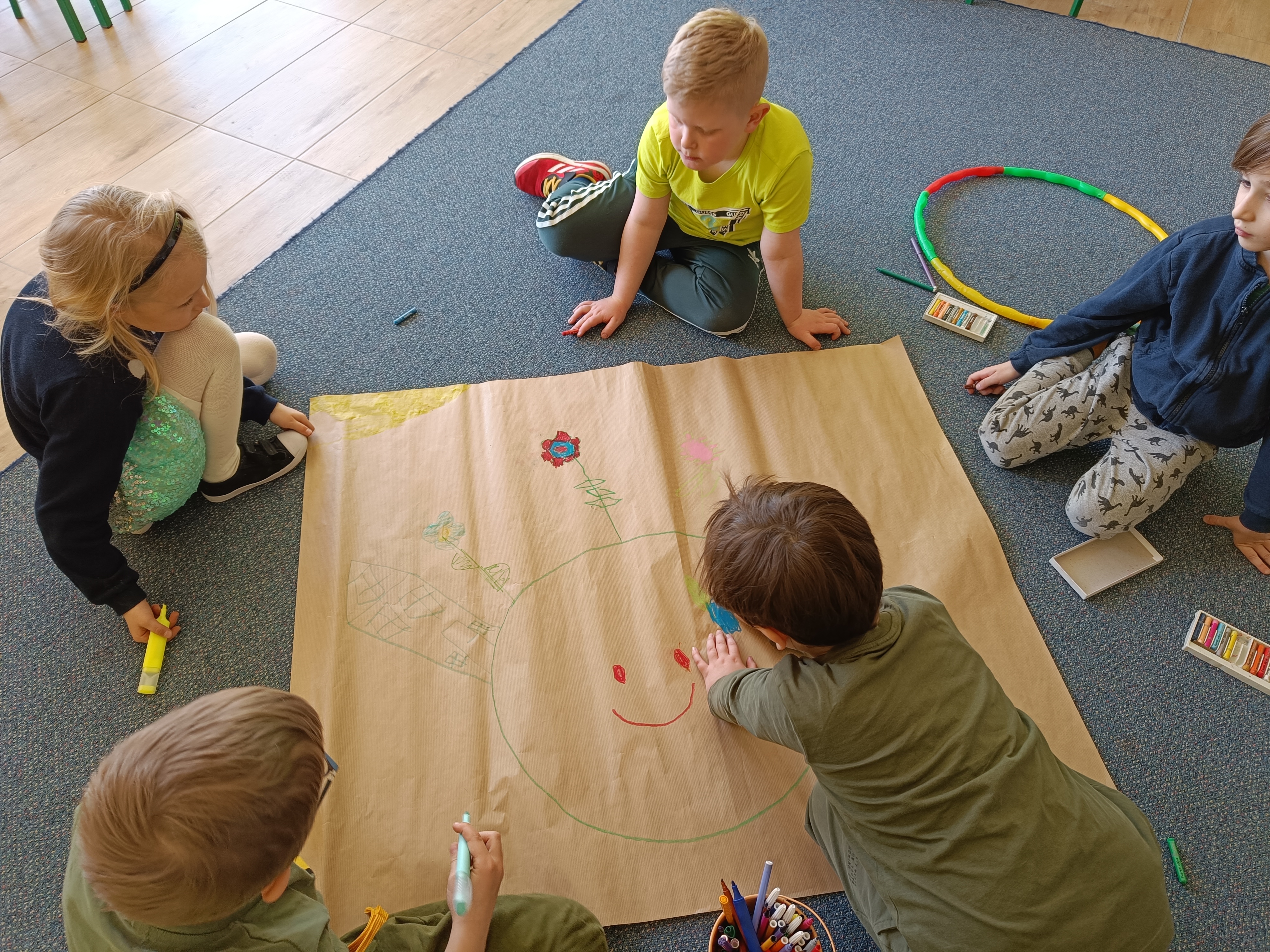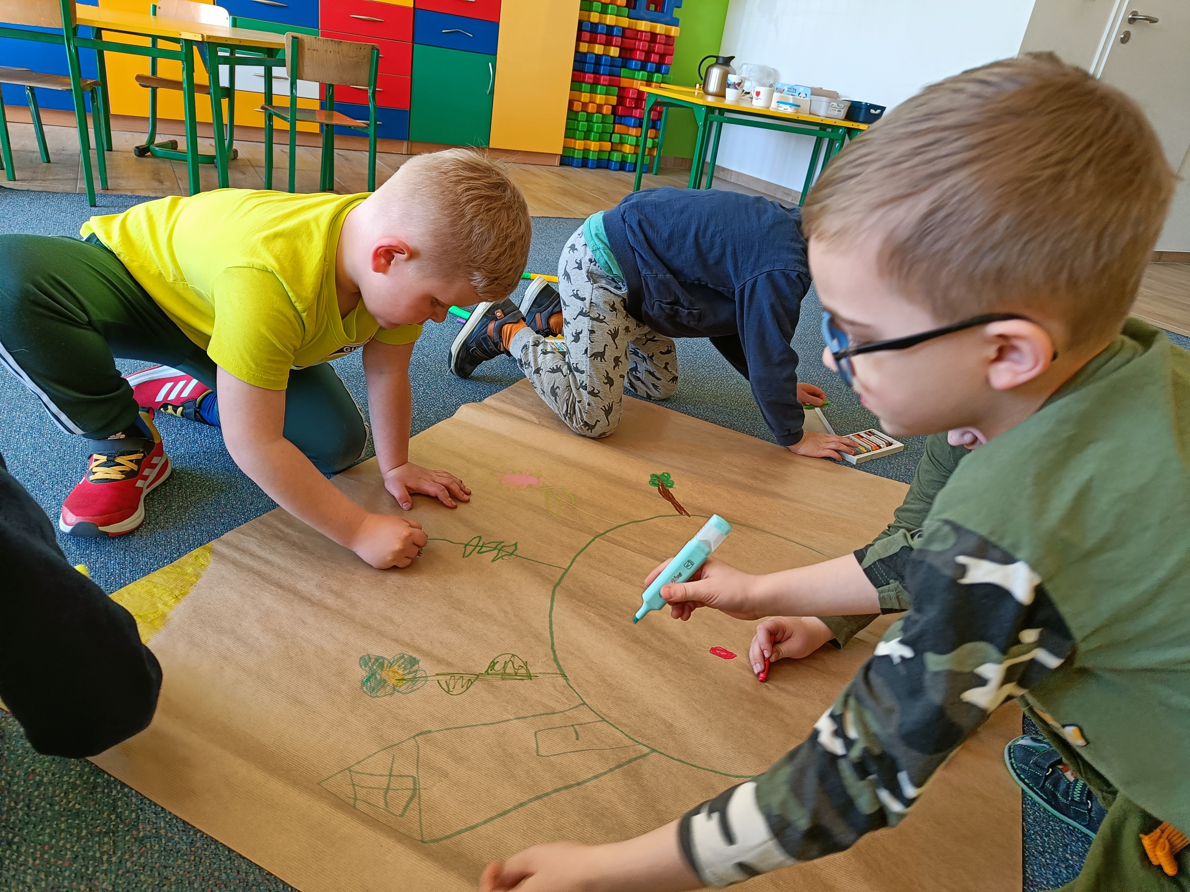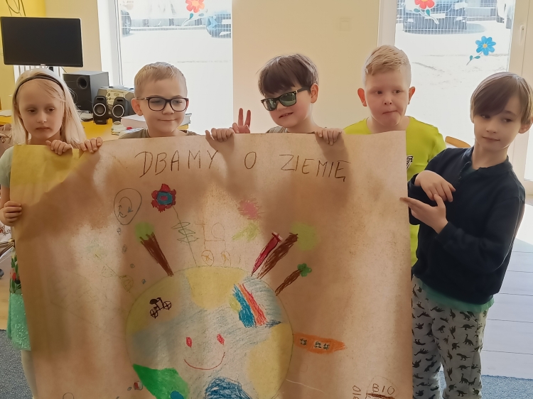 Dzisiaj obchodziliśmy Dzień Ziemi i z tej okazji rozmawialiśmy o tym, że Ziemia jest naszą planetą i jednocześnie naszym domem, więc musimy o nią dbać jak najlepiej potrafimy np. poprzez segregację śmieci i recykling.
