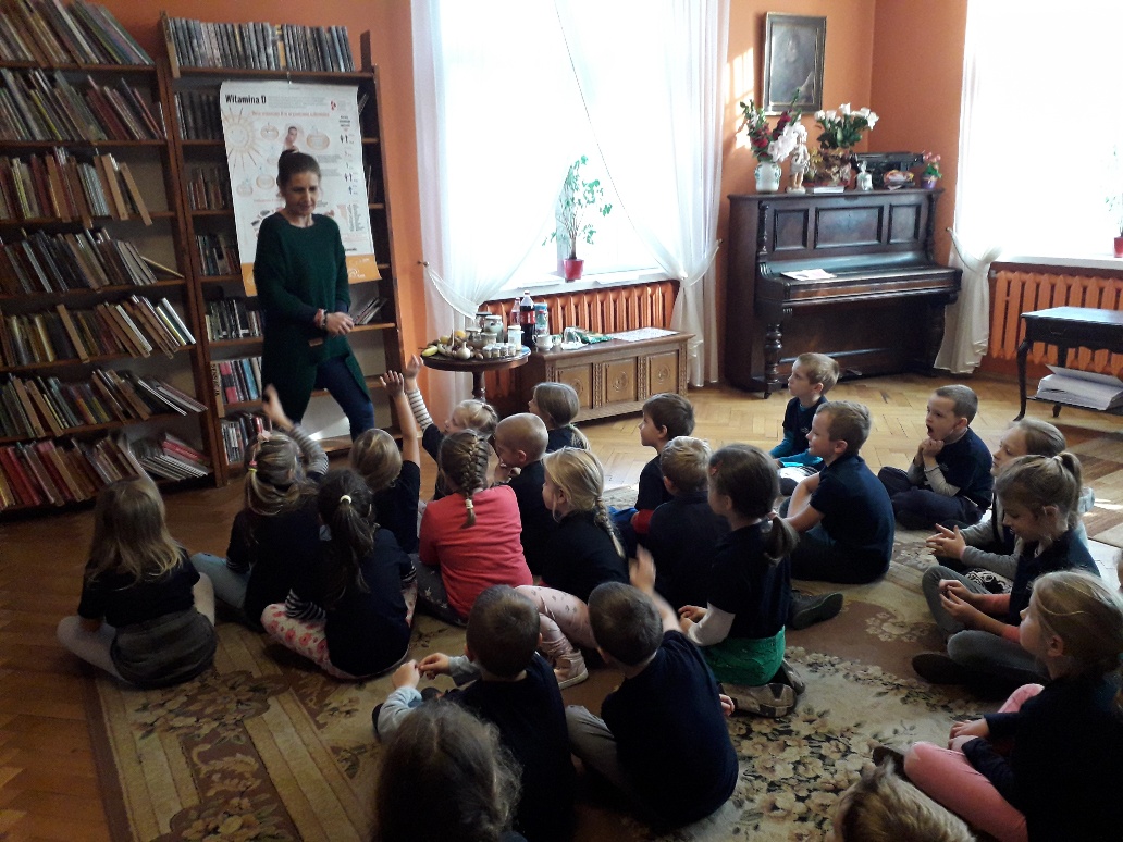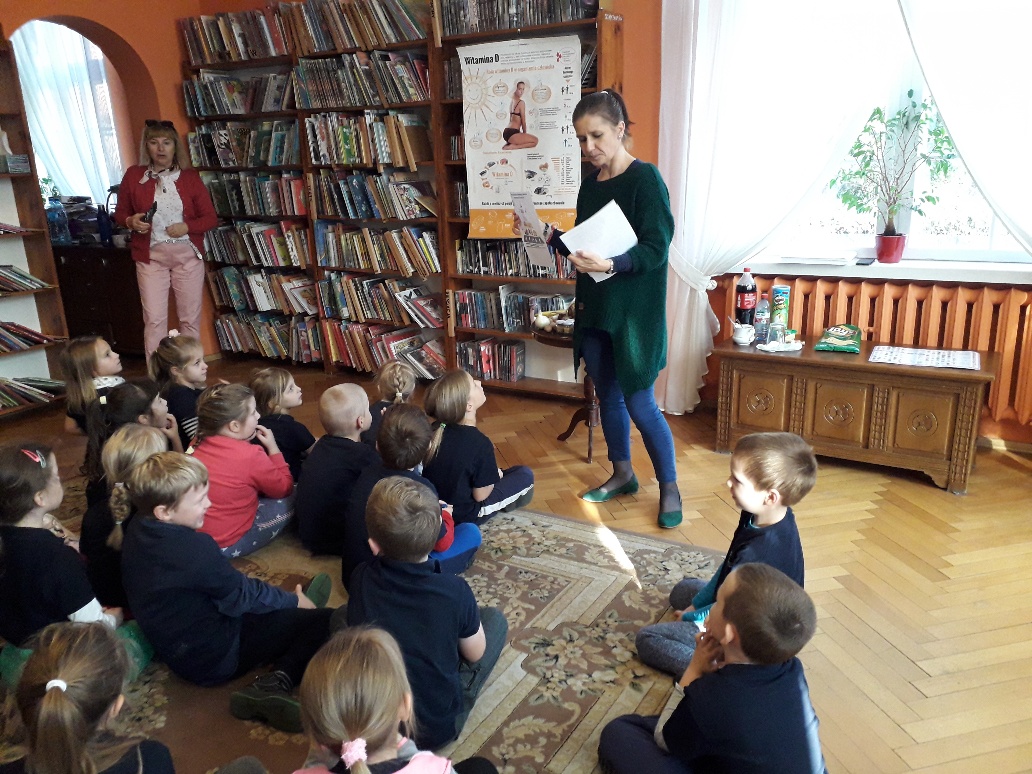 24 października uczniowie klasy 0 i 1 zostali zaproszeni do Powiatowej i Miejskiej Biblioteki Publicznej w Pruszczu Gdańskim na wasztaty edukacyjne na temat "Wiem co jem, bo chcę być zdrowy. Zajęcia prowadziła Edyta Szordykowska z Fundacji - Zdrowo jem, zdrowo żyję. Zapraszamy do fotorelacji.