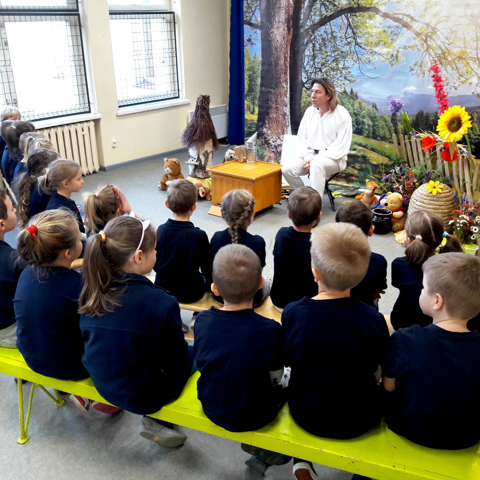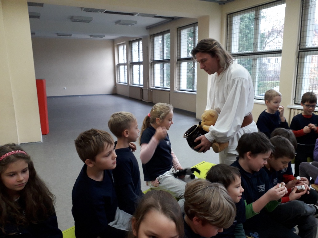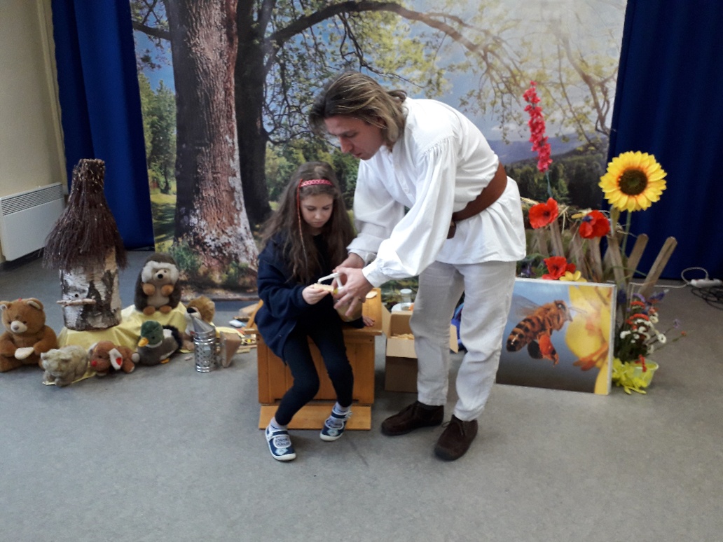 Dzień 26 listopada 2018r., w naszej szkole w klasach 0-III, nawiązywał do Światowego Dnia Pluszowego Misia, dlatego też dzieci przyniosły swoje pluszowe małe i duże misie. Odnosząc się do Kubusia Puchatka, amatora miodu i „małego co nieco”, odbyły się warsztaty edukacyjne pt. „Fascynujący świat pszczół” organizowane przez pasiekę „Boża Iskierka”. Zajęcia były autorskim projektem Mistrza Pszczelarstwa Pana Aleksandra Rębacza. Uczniowie poznali zwyczaje pszczół, drogę od pyłku do miodu, degustowały miód i pyłek kwiatowy oraz wykonały świeczkę z wosku pszczelego.