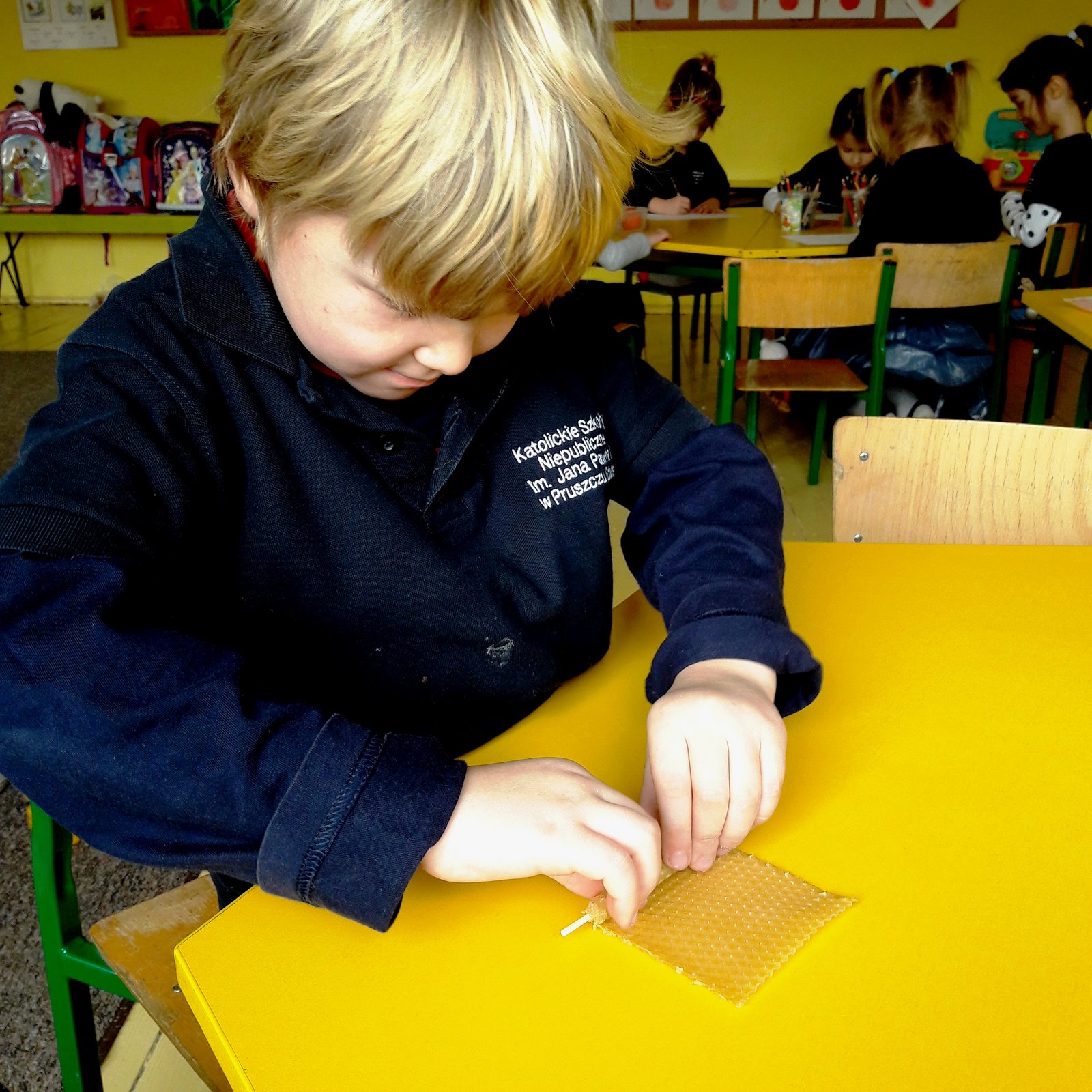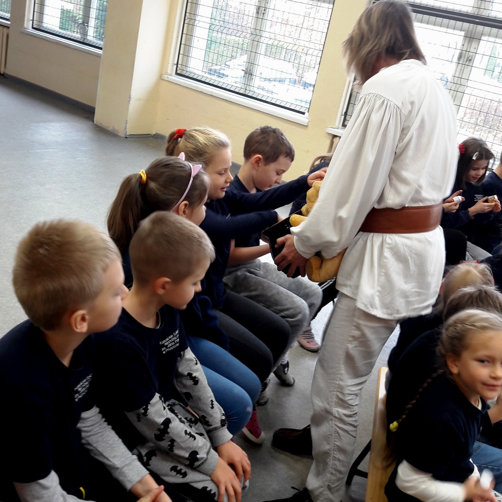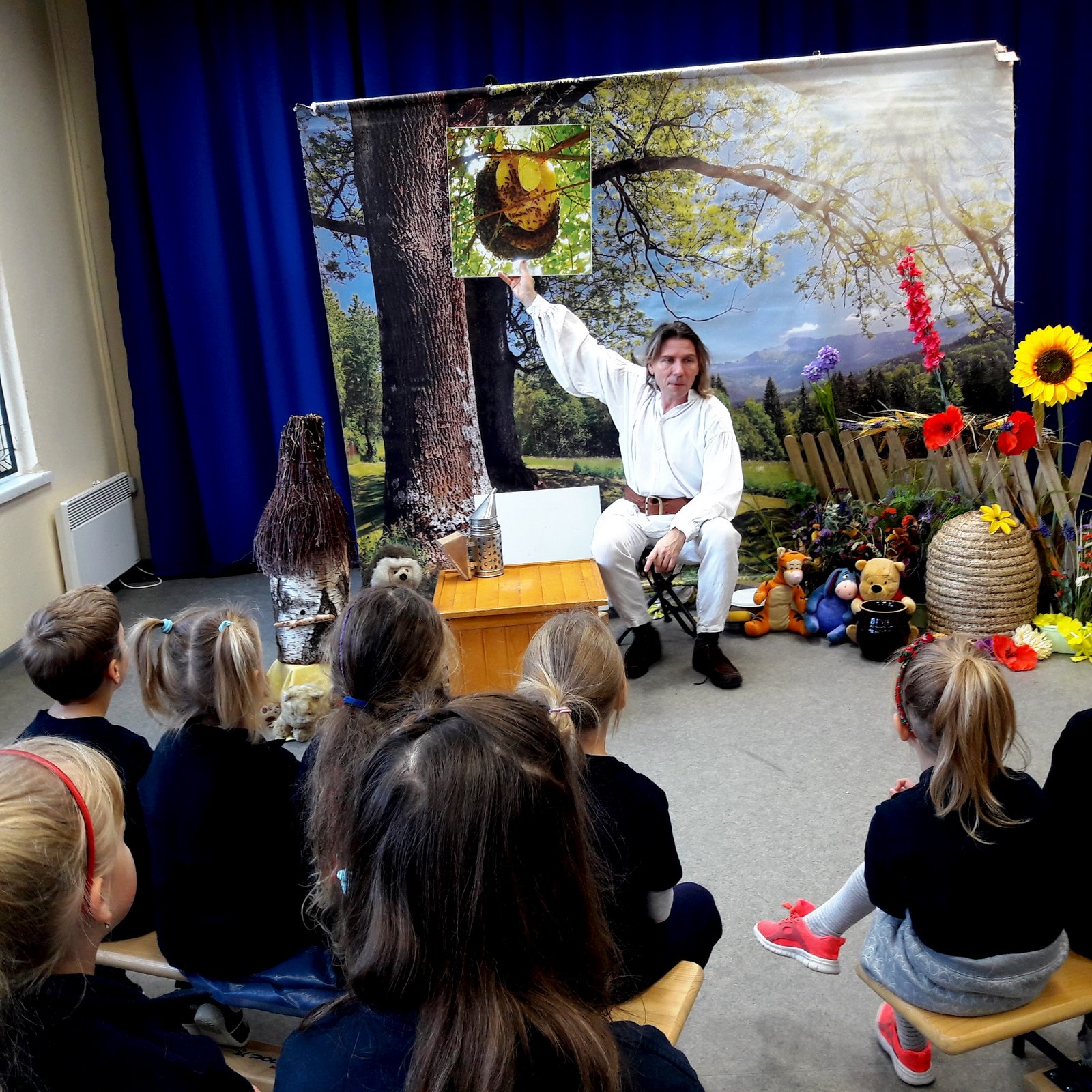 Dzień 26 listopada 2018r., w naszej szkole w klasach 0-III, nawiązywał do Światowego Dnia Pluszowego Misia, dlatego też dzieci przyniosły swoje pluszowe małe i duże misie. Odnosząc się do Kubusia Puchatka, amatora miodu i „małego co nieco”, odbyły się warsztaty edukacyjne pt. „Fascynujący świat pszczół” organizowane przez pasiekę „Boża Iskierka”. Zajęcia były autorskim projektem Mistrza Pszczelarstwa Pana Aleksandra Rębacza. Uczniowie poznali zwyczaje pszczół, drogę od pyłku do miodu, degustowały miód i pyłek kwiatowy oraz wykonały świeczkę z wosku pszczelego.