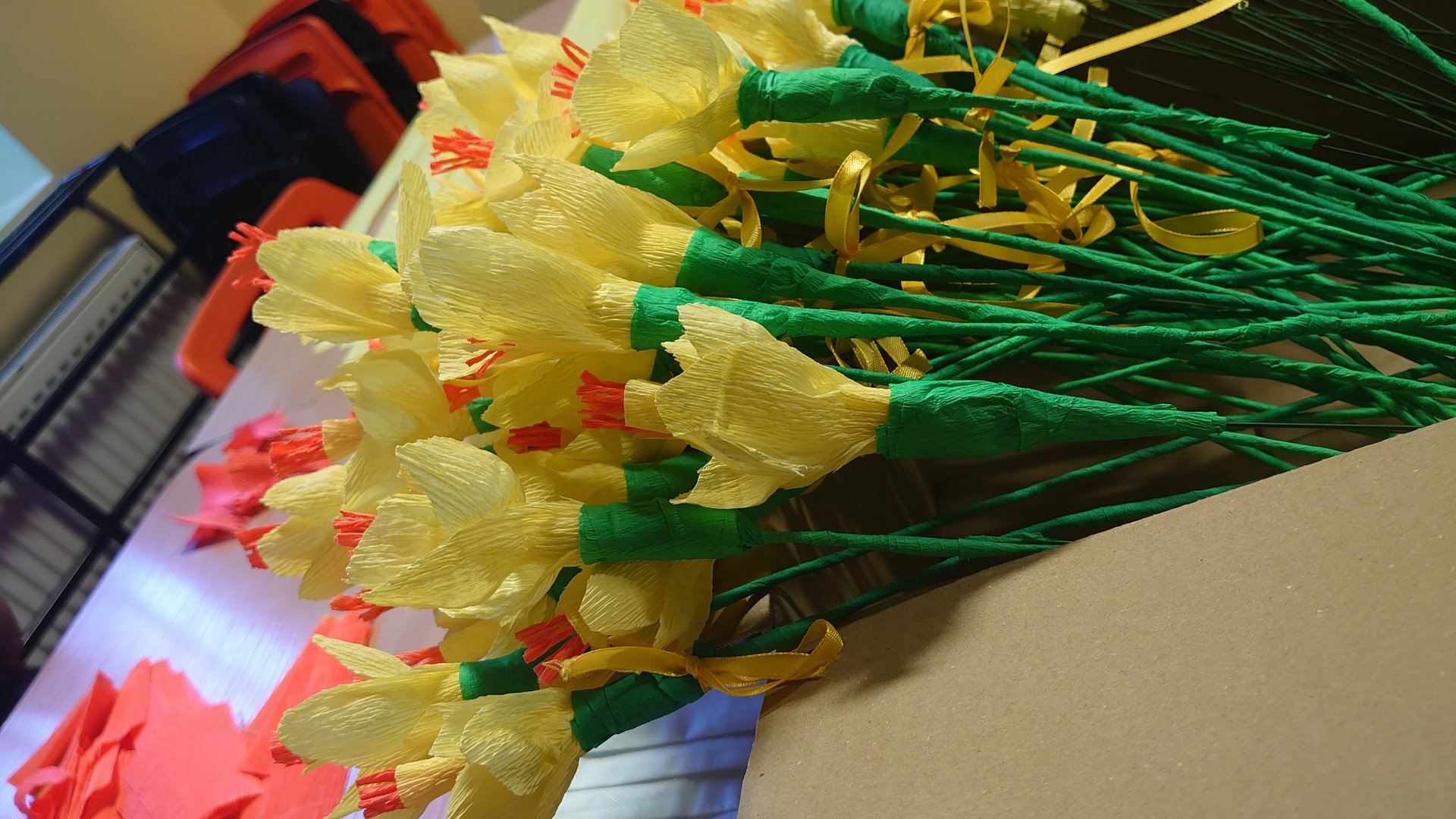 Na załączonych zdjęciach nasze kwitnące nieśmiało żonkile w szkolnym ogródku, oraz przygotowane papierowe żonkile wykonane przez naszych uczniów.