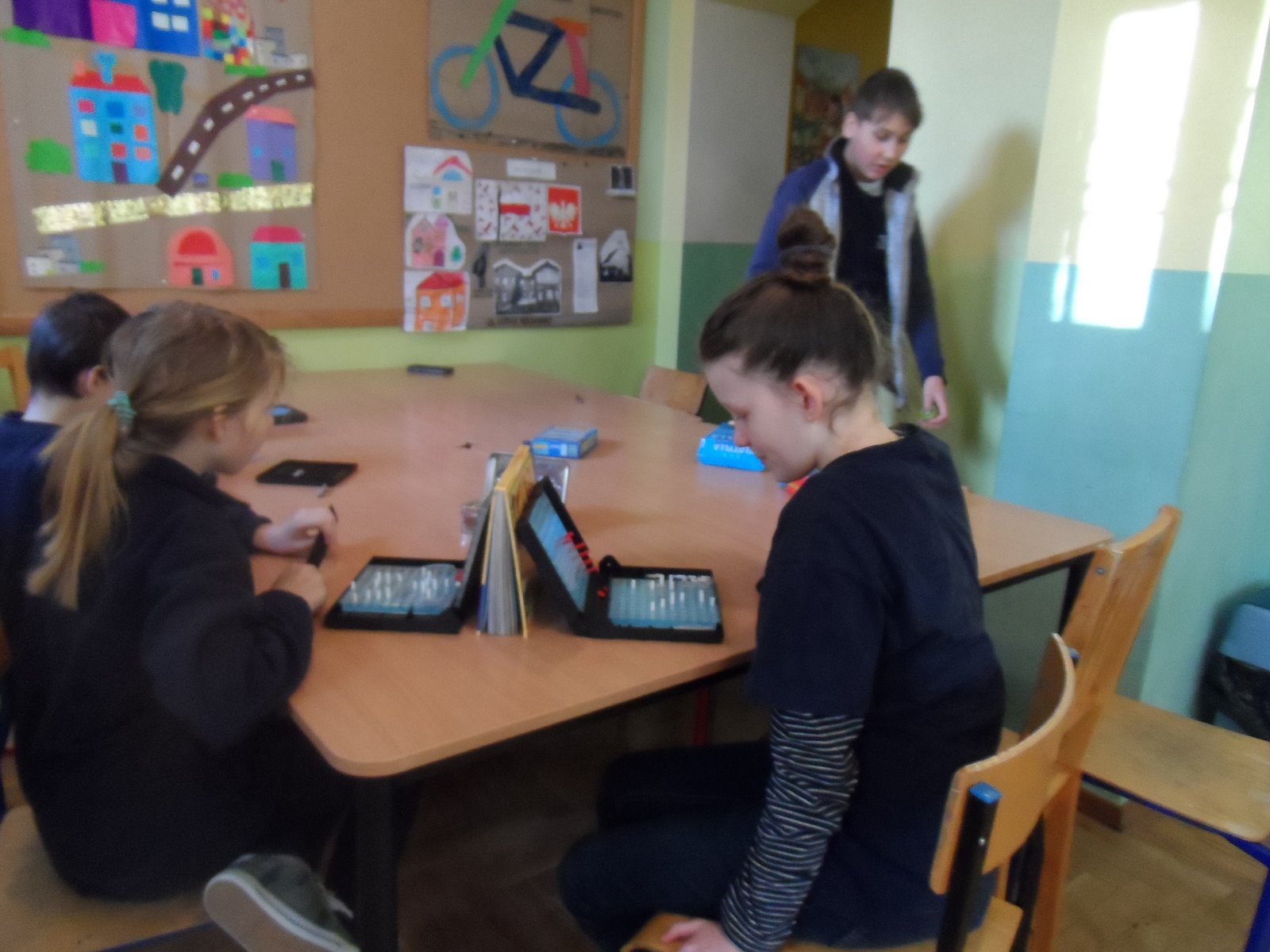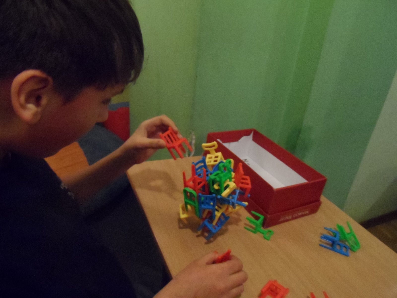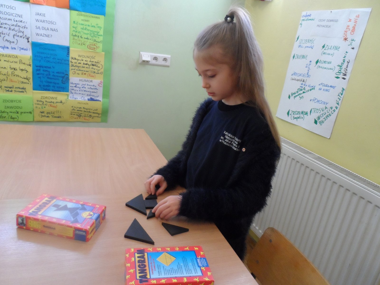 O zaletach gier planszowych nie trzeba nikogo przekonywać. Gry pomagają w przyswajaniu reguł, także w życiu codziennym, uczą współpracy, komunikowania się, uwalniają od stresu itp. Uczniowie najchętniej grają w warcaby i statki. TANGRAM ćwiczy koncentrację, pomysłowość, pamięć spostrzeżeniowo-wzrokową. Na świetlicy dostepne są dwie nowe gry MISTAKOS i HALMA. MISTAKOS - to ustawianie konstrukcji z krzesełek. Janek z klasy VI wykonał konstrukcję ze wszystkich elementów. Gra w szachy - Janek z klasy IV może pochwalić się znajomością tej gry.
