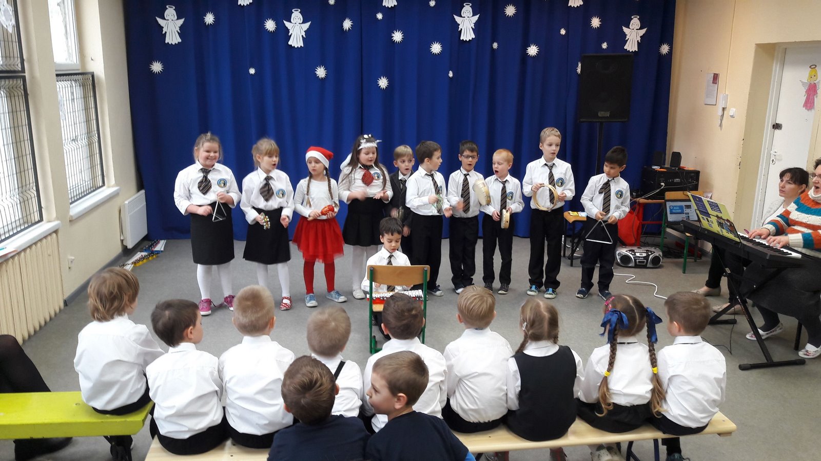 W czwartek 14 grudnia 2017r. sala gimnastyczna w naszej szkole rozbrzmiewała bożonarodzeniowymi kolędami i pastorałkami. Na tegoroczny Szkolny Konkurs Kolęd i Pastorałek zgłosili się wykonawcy z klas edukacji wczesnoszkolnej i klasy „0” w trzech kategoriach. Byli to soliści, zespoły wokalne i zespoły wokalno-instrumentalne.
