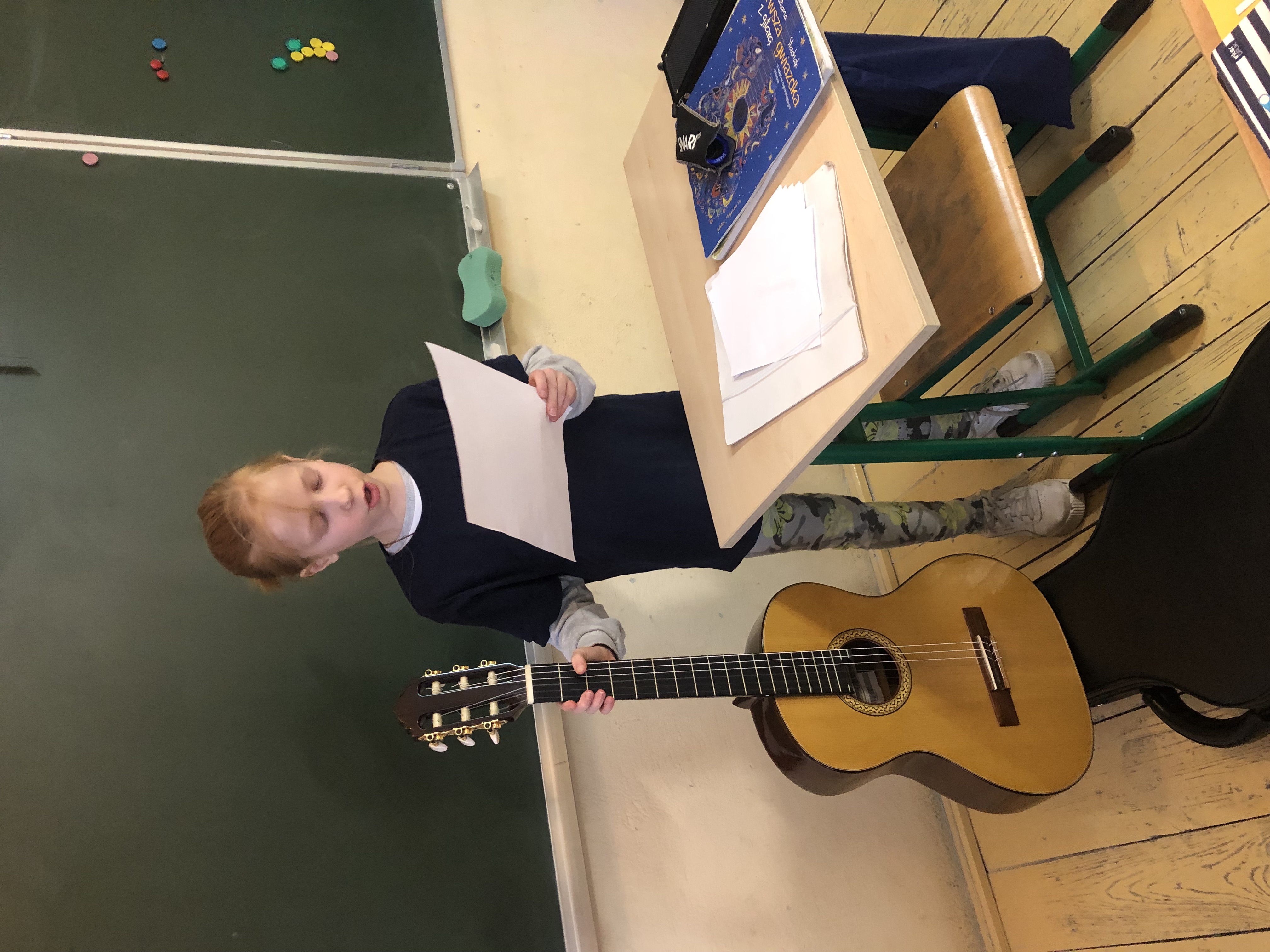 21 grudnia mieliśmy przyjemność uczetstniczyć w lekcji przygotowanej przez uczennicę klasy 3 Hiacyntkę. Opowiedziała nam o swoim ulubionym instrumencie-gitarze. Zapraszamy do obejrzenia zdjęć.