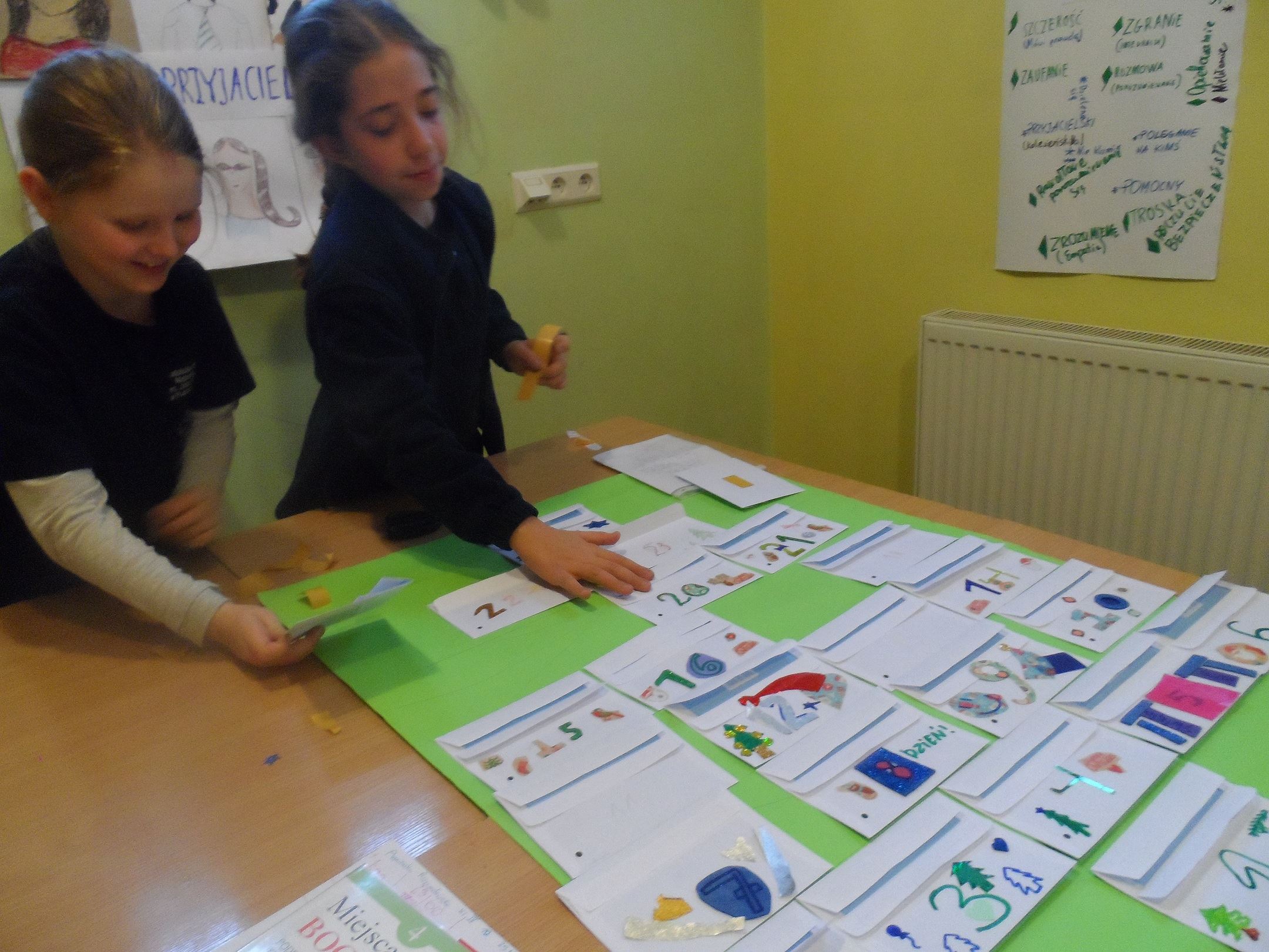 Tak powstaje Kalendarz adwentowy w naszej świetlicy. Kalendarz adwentowy - to specjalny kalendarz służący do odliczania dni od pierwszego dnia Adwentu do Wigilii Bożego Narodzenia. Codziennnie będzie do wykonania jakieś zadanie, czasami będzie też słodki poczęstunek.
