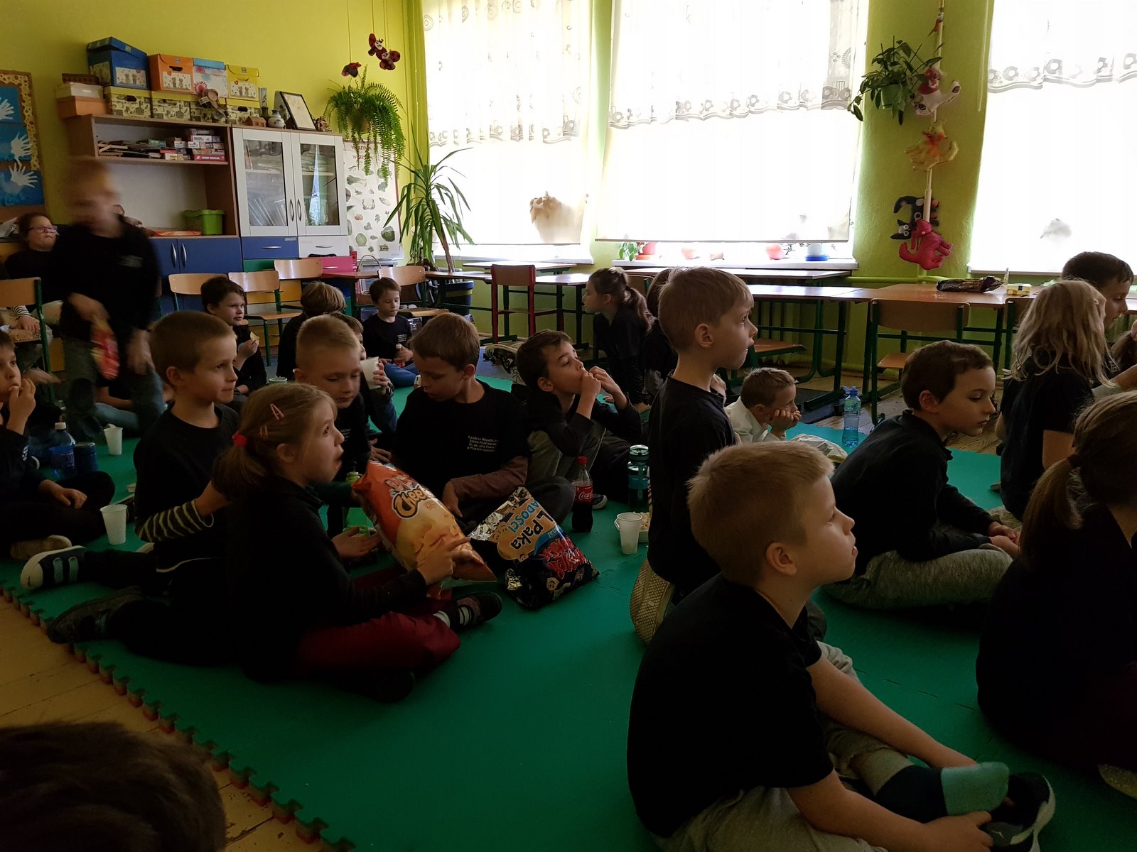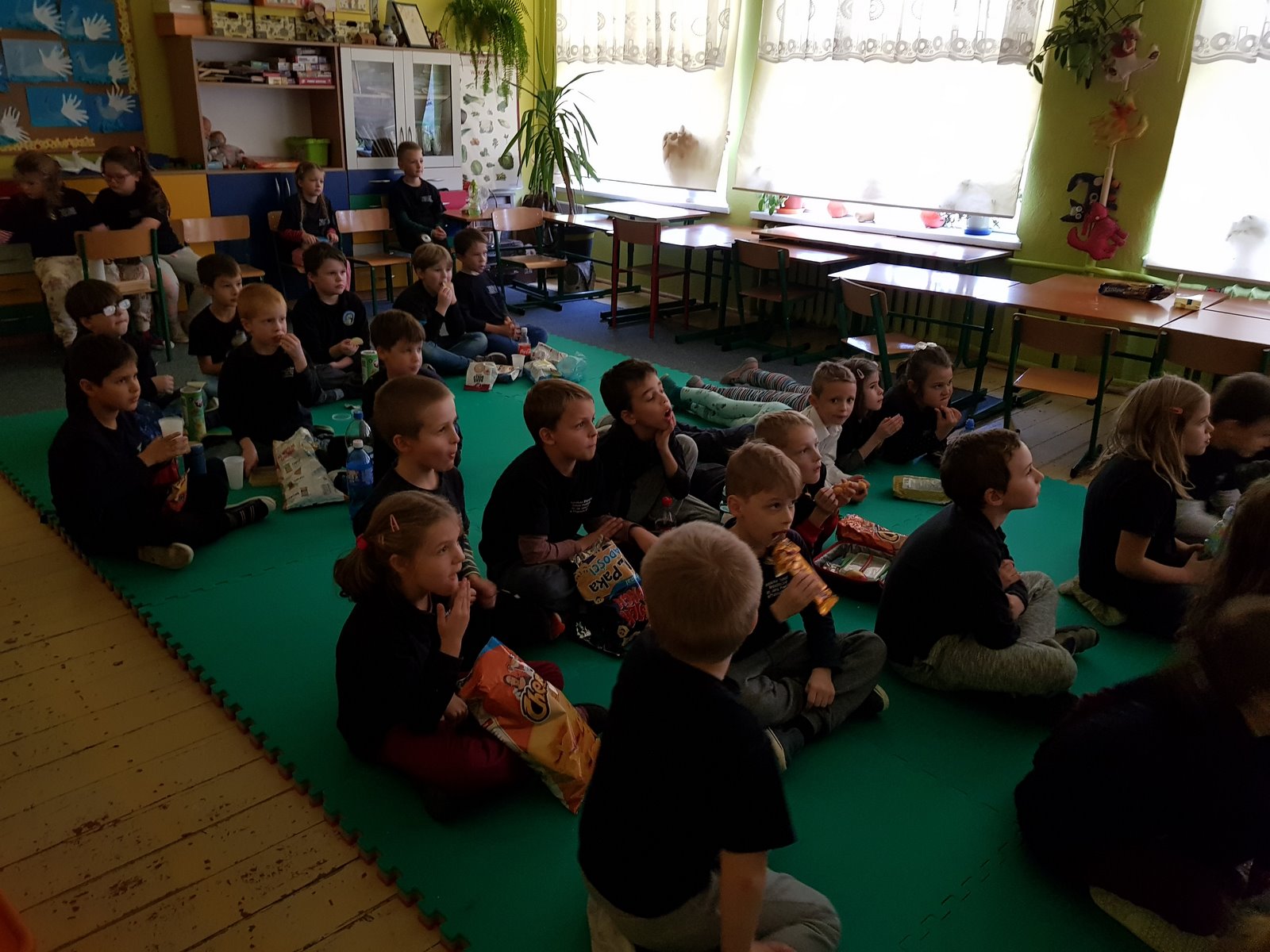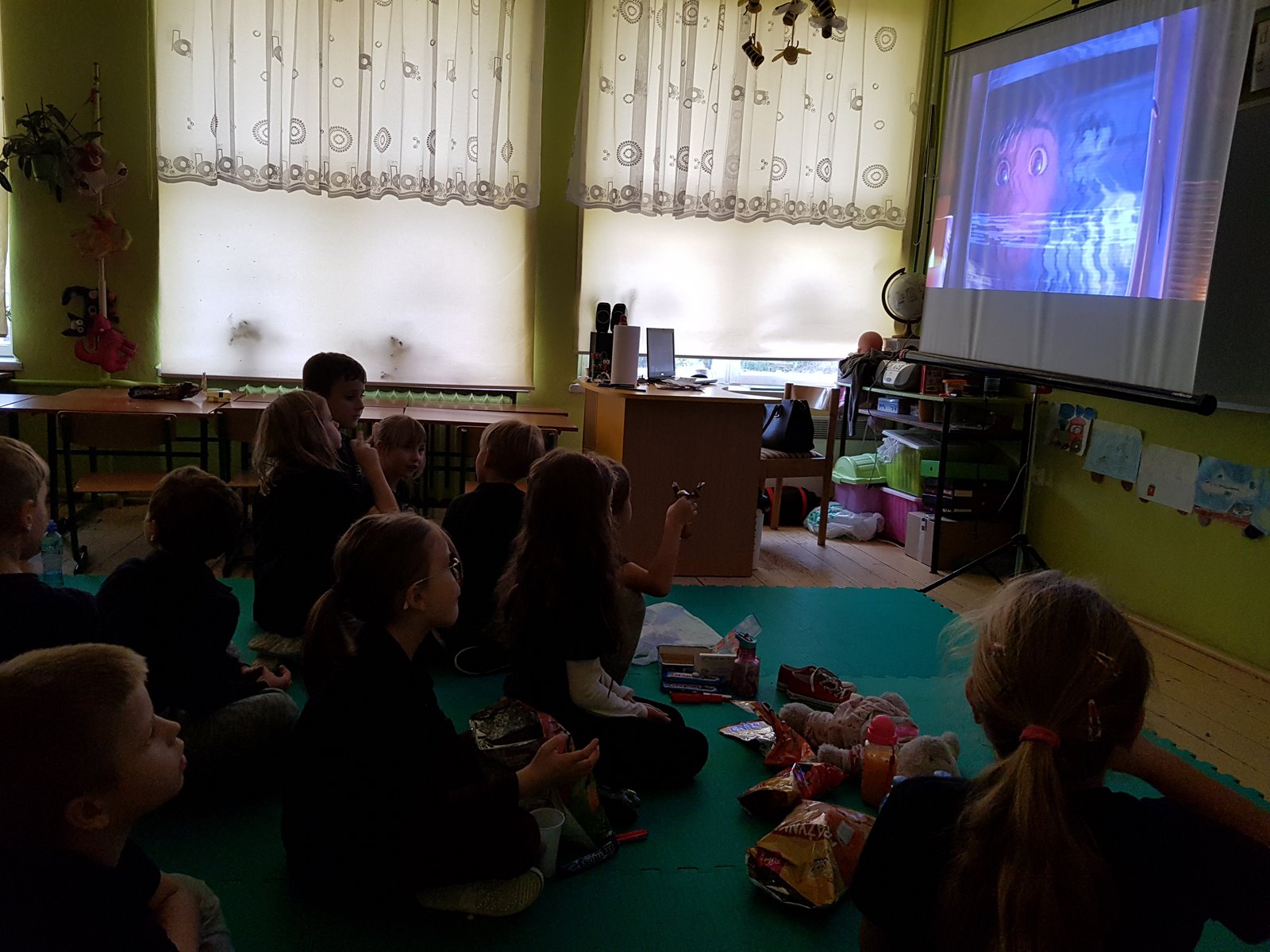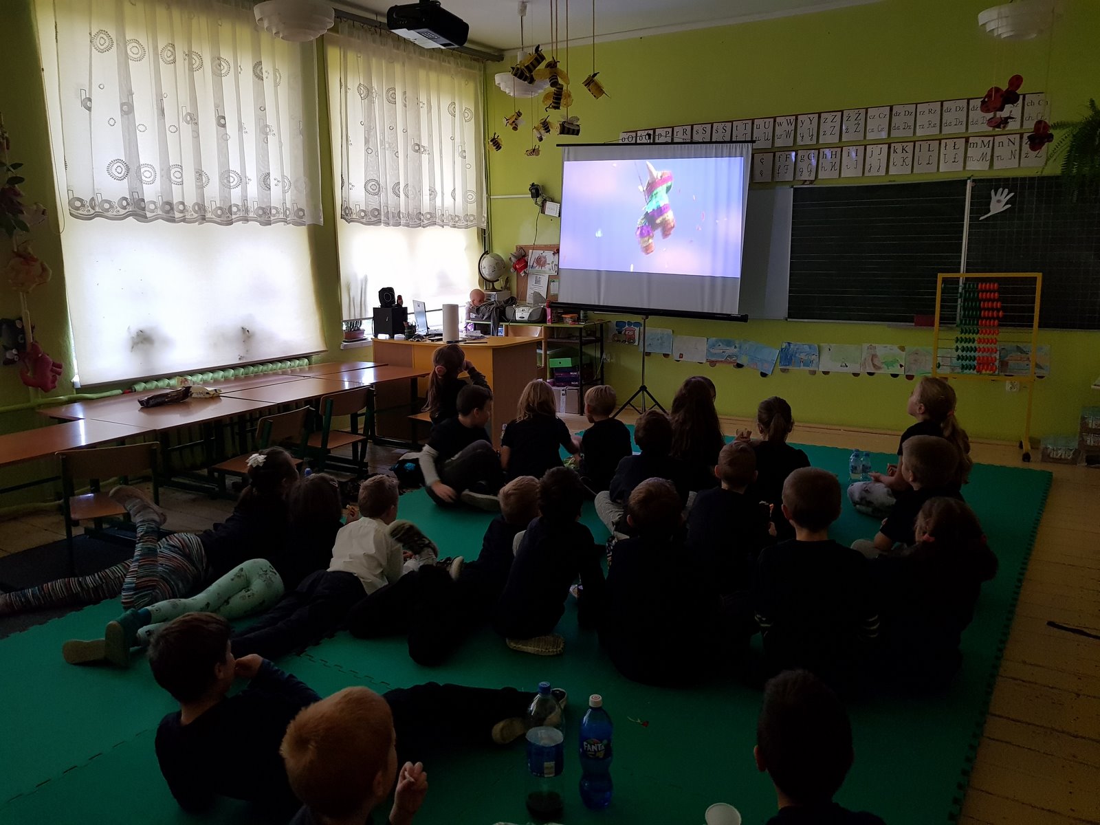 29 października podczas zajęć świetlicowych uczniowie klas I-III wzięli udział w długo wyczekiwanej akcji jaką jest " kino bambino". Wydarzenie to przyciąga prawdziwych kinomaniaków i miłośników dobrej zabawy. By wejść na wcześniej przygotowaną salę kinową, dzieci zostały poproszone o wykonanie własnych biletów. Kiedy wybiła punkt 14 magicznym przyciskiem 'play' została włączona bajka "COCO". Piękna bajka o sile miłości do rodziny i o tym jak ważna jest pamięć o tych co już odeszli. Było dużo uśmiechu, radości ale i wzruszenia. Na końcu odbyła się krótka rozmowa, podczas której dzieci wymieniały się swoimi odczuciami odnośnie bajki. Dziękuję moim świetliczakom za piękne bileciki i za przygotowanie przed seansem sali i wysprzątanie jej po całej akcji.