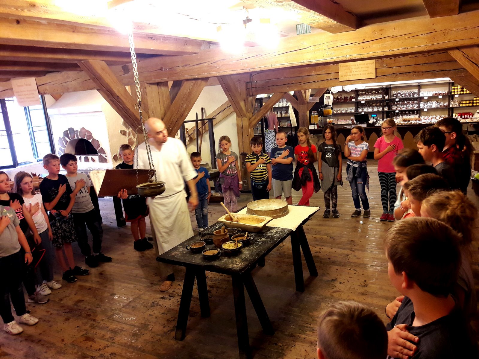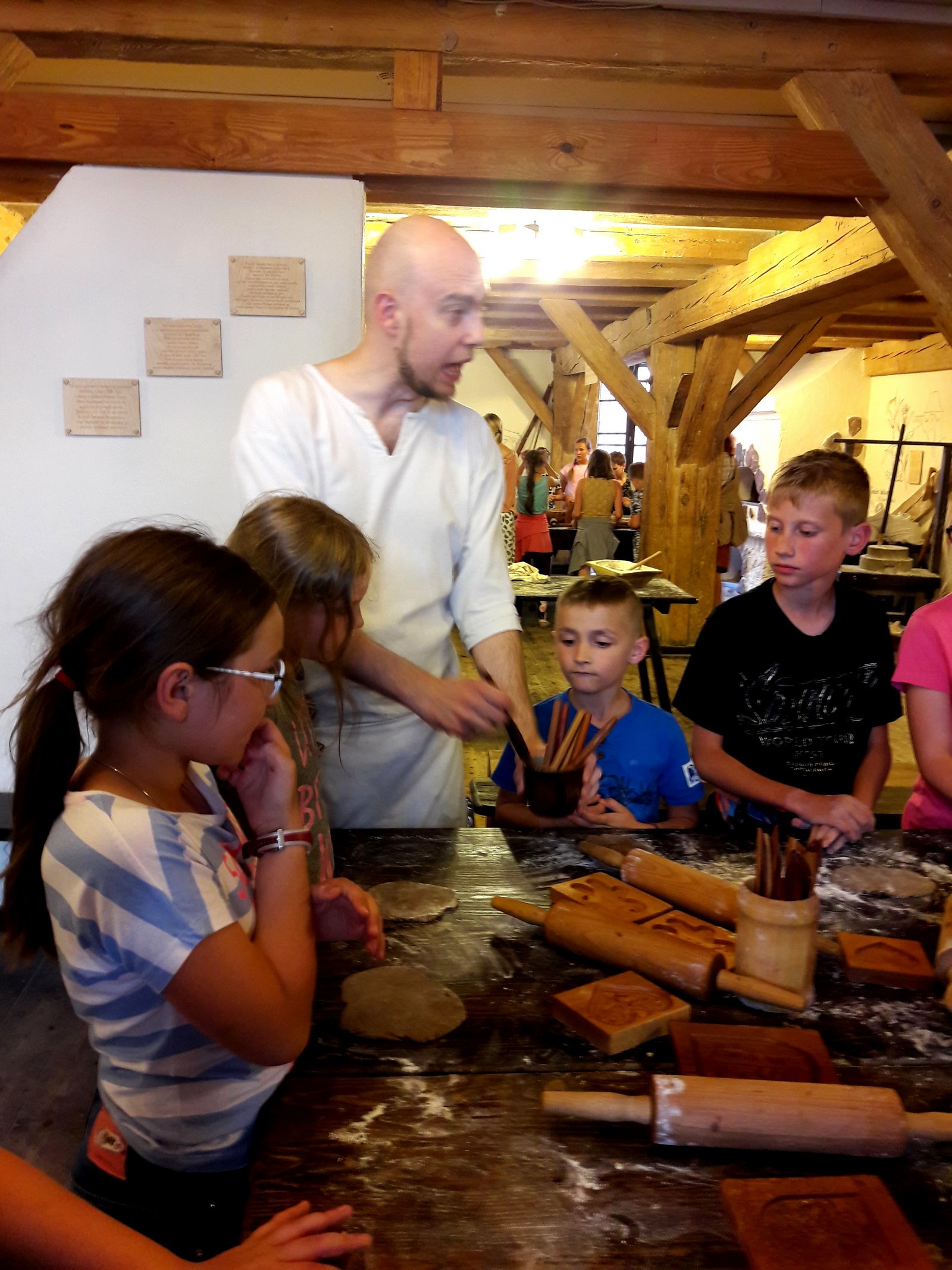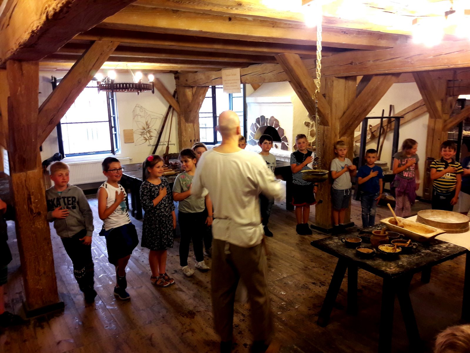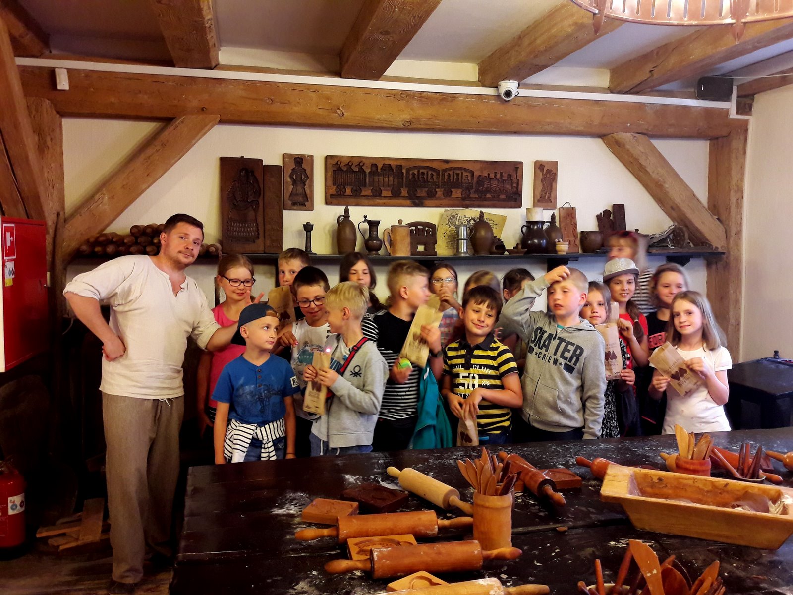 W pierwszym dniu udaliśmy się do Planetarium na seans pt. „Cudowna podróż” oraz do Teatru Baj na spektakl musicalowy „Jaś i Małgosia”, gdzie spotkaliśmy najsłynniejsze postacie baśni Braci Grimm. Zwiedziliśmy ruiny zamku krzyżackiego, a na zakończenie dnia udaliśmy się do Żywego Muzeum Piernika, gdzie poznaliśmy historię toruńskiego piernikarstwa oraz wypiekliśmy własny piernik dekoracyjny. Dla niektórych własny piernik stał się najpiękniejszą pamiątką, a dla niektórych najsmaczniejsząJ. Po trudach dnia, uczniowie znaleźli czas na integrację klasową urządzając w jednym z pokoi spotkanie koszyczkowe. Było dużo smakołyków i zabawy. Z radością oczekiwaliśmy na następny dzień.