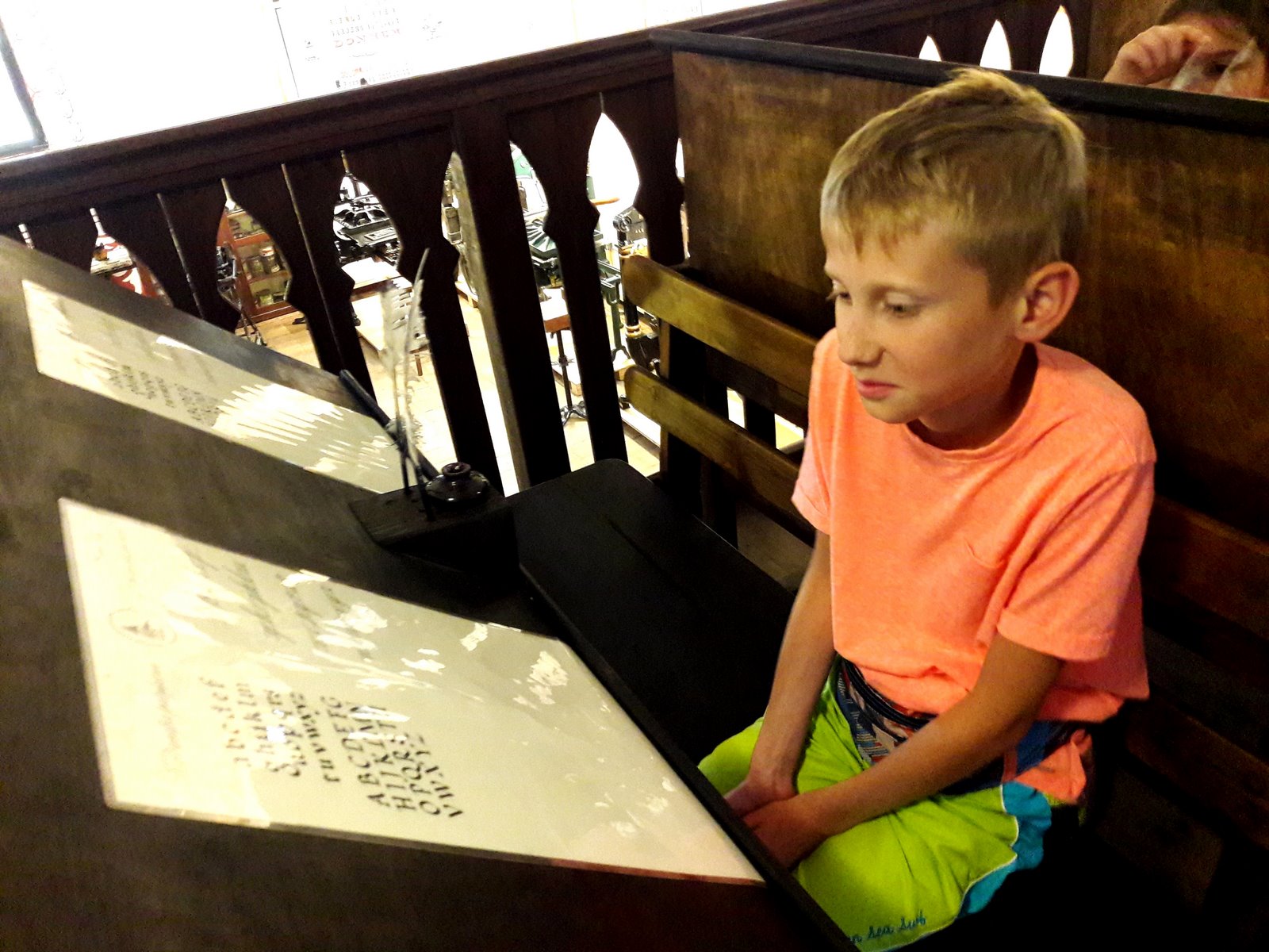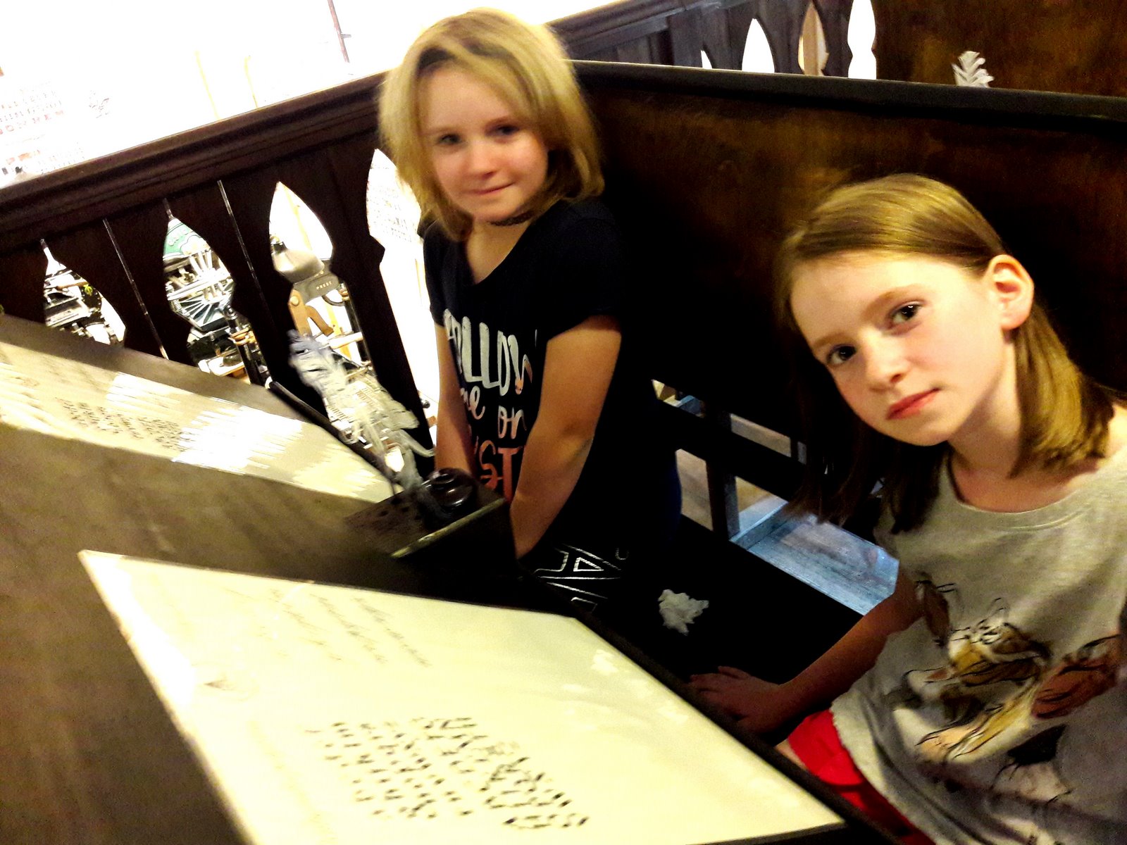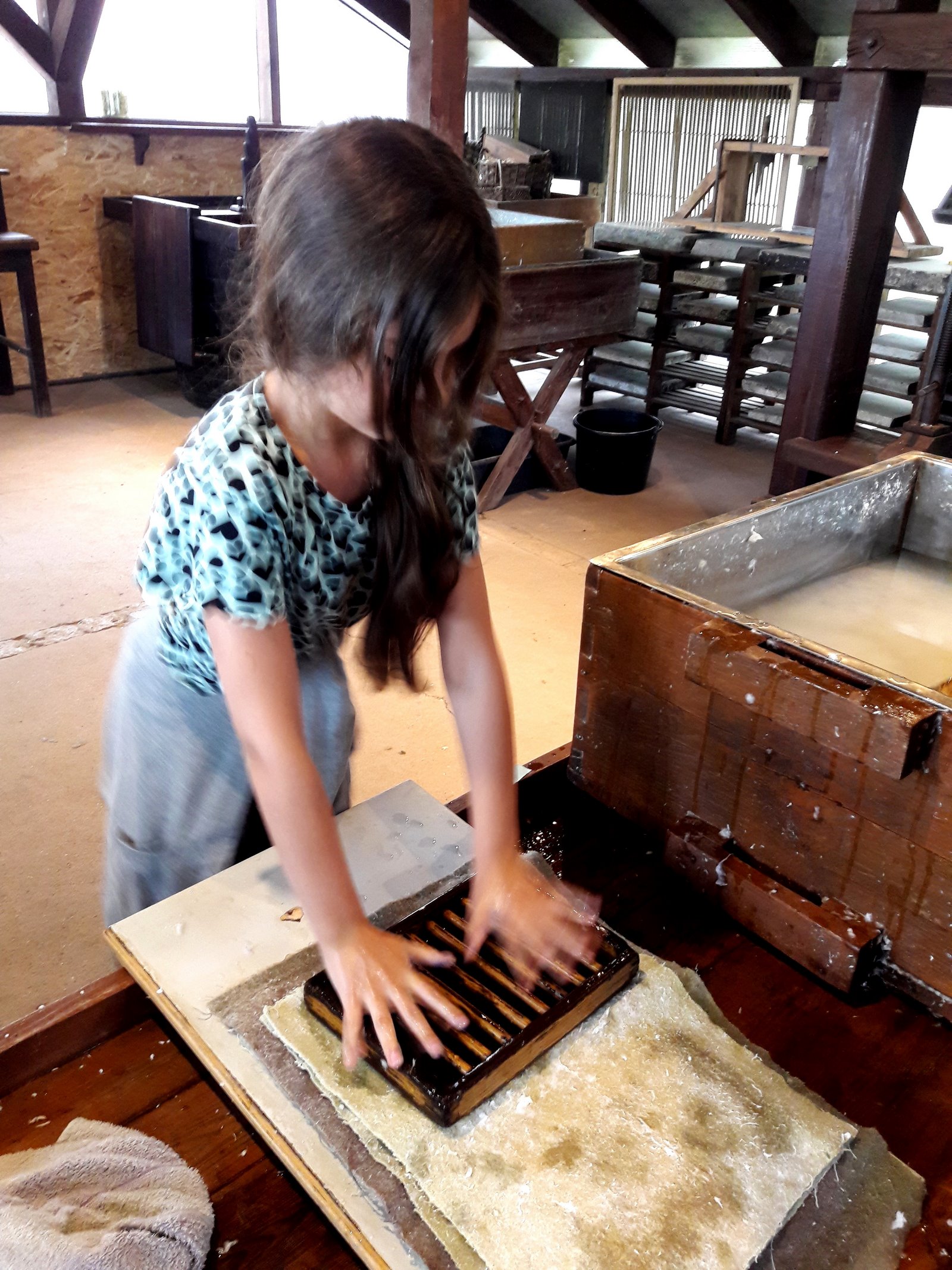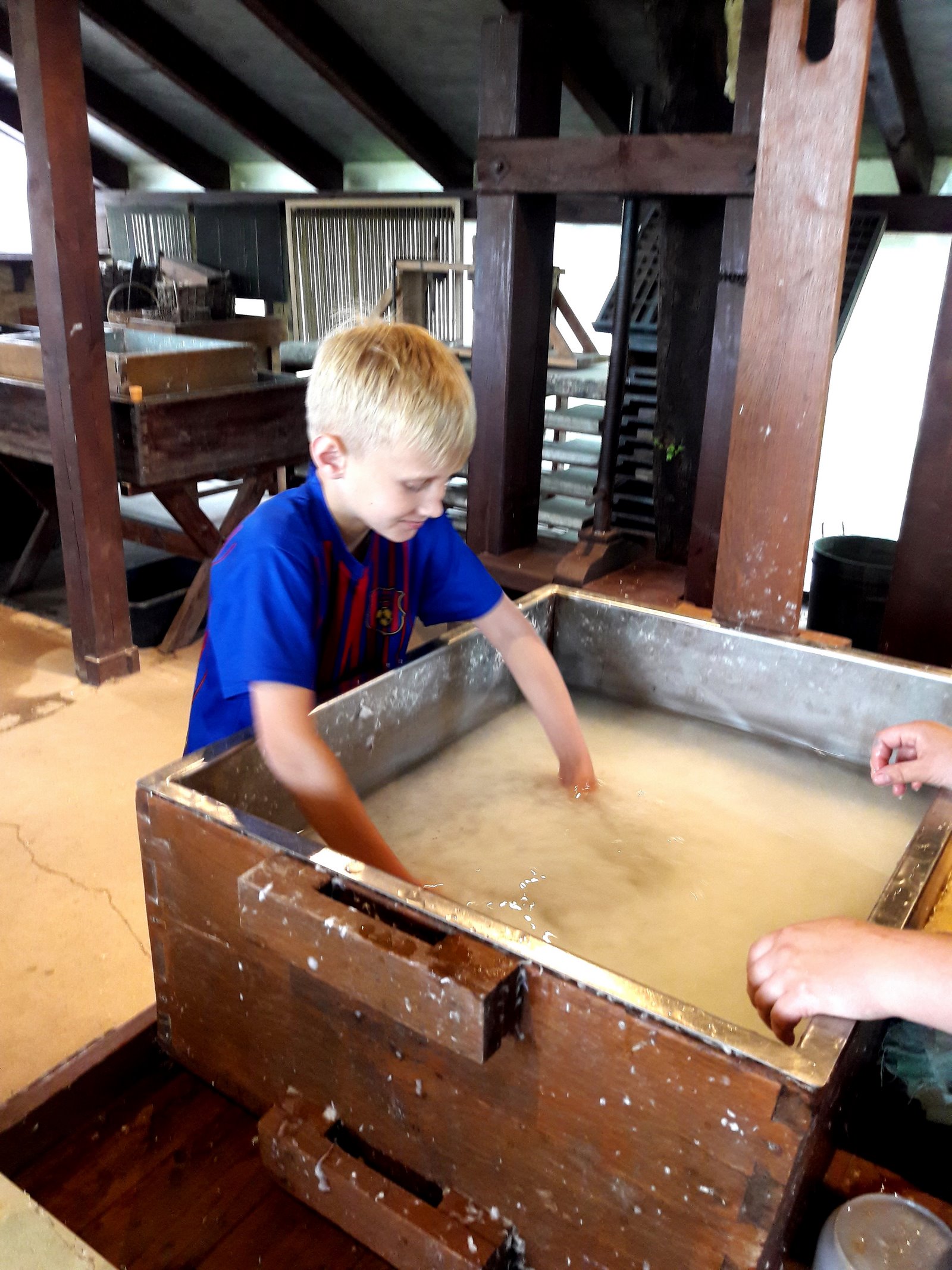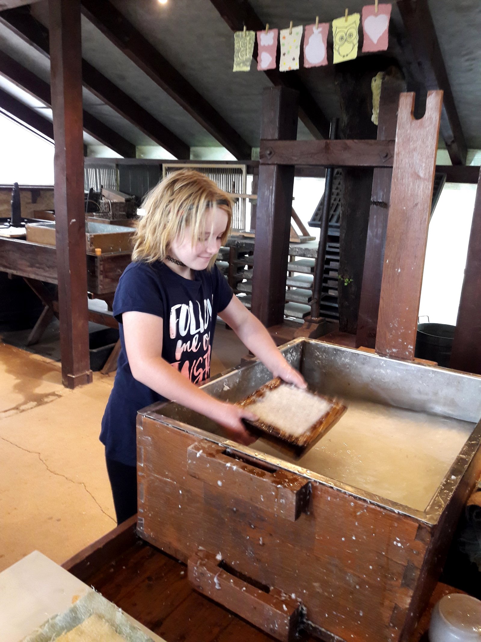 Po obiedzie udaliśmy się do Muzeum Piśmiennictwa i Drukarstwa w Grębocinie na interaktywne warsztaty, gdzie zapoznaliśmy się z historią materiałów piśmienniczych: papieru i pergaminu. Samodzielnie próbowaliśmy kaligrafii gęsim piórem oraz ręcznie czerpaliśmy kartkę papieru. Każdy uczestnik otrzymał certyfikat uczestnictwa na wydrukowanej XIX - wiecznej prasie drukarskiej.