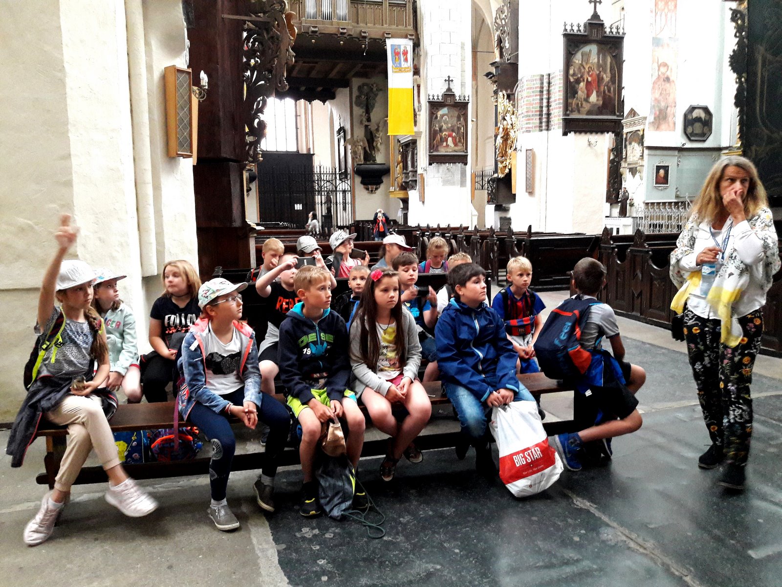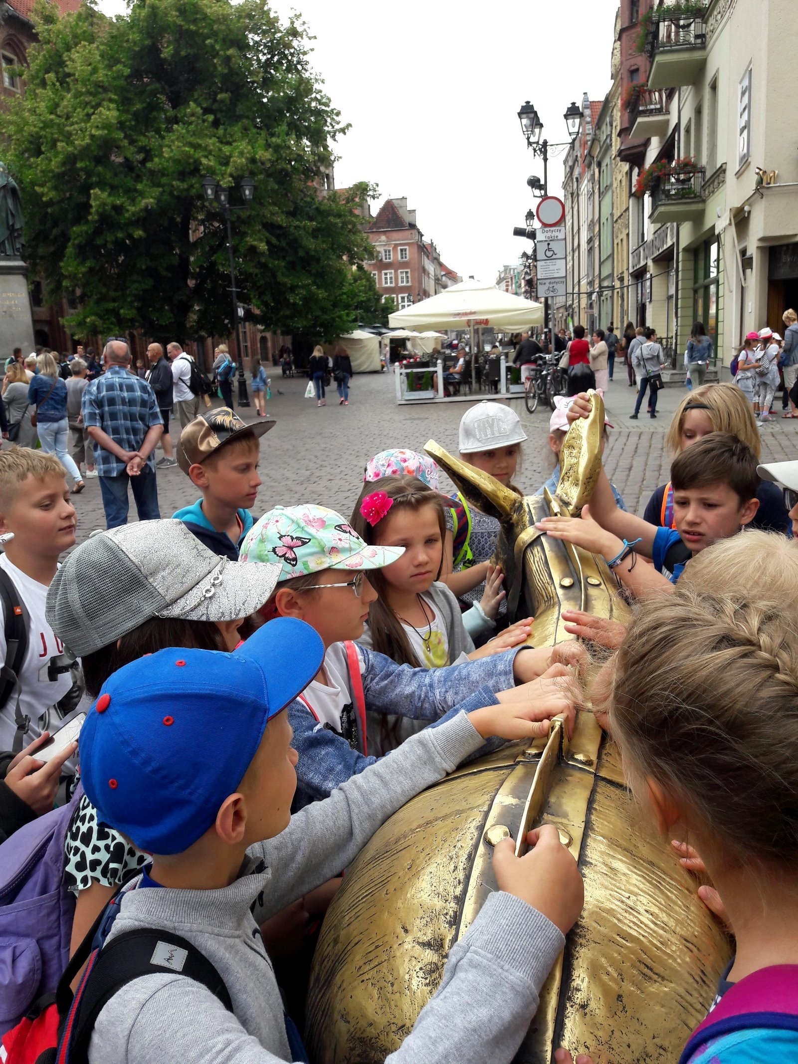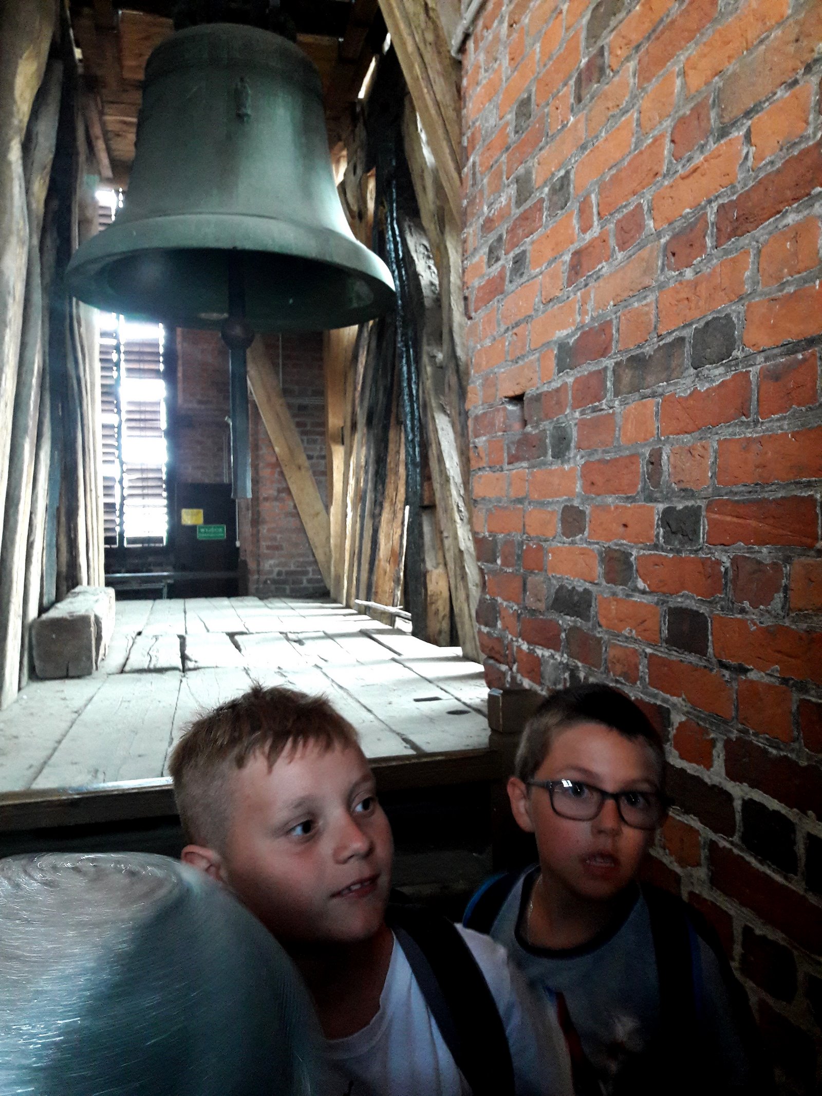 Drugi dzień zaczęliśmy od zwiedzania Torunia z przewodniczką, która w sposób pasjonujący zapoznała nas z tajemnicami średniowiecznej metropolii. Poznaliśmy najważniejsze zabytki Starego Miasta, w tym gotycki Ratusz, najstarszy toruński kościół - Katedrę św. Janów (oczywiście z wejściem na wieżę) z największym polskim dzwonem średniowiecznym Tuba Dei, słynną Krzywą Wieżę, franciszkański Kościół Marii Panny, perełkę baroku – Kamienicę Pod Gwiazdą, jak również inne zabytki, takie jak Dwór Artusa, Pałac Eskenów, Pałac Dąbskich, XIII-wieczne mury miejskie i wieże oraz średniowieczne spichlerze. Poznaliśmy również zaskakujące historie niesławnego toruńskiego osiołka, Flisaka i żab, osamotnionego pieska Filusia, a także blaszanego kota spoglądającego z dachu jednej ze staromiejskich kamienic…