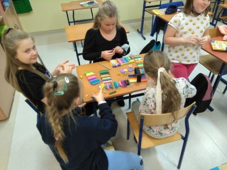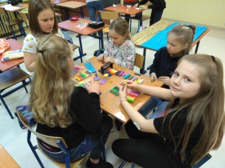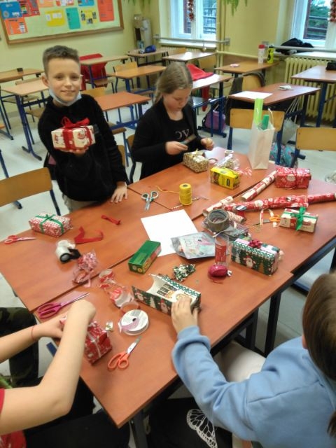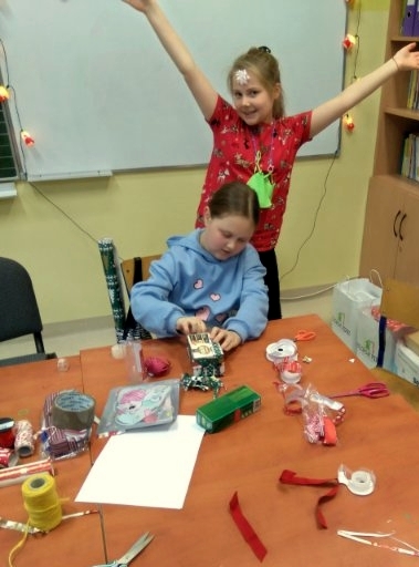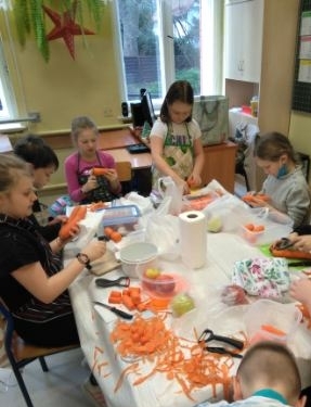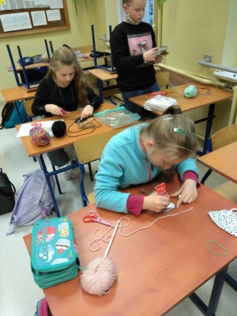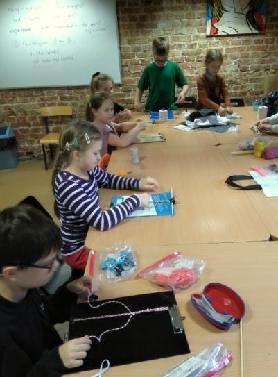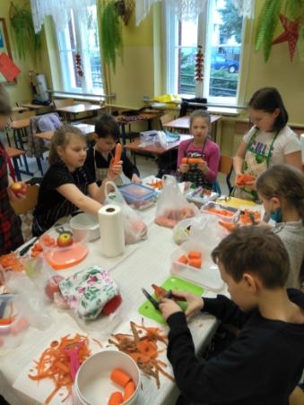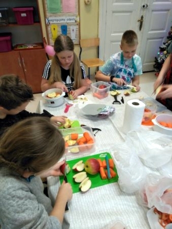 W pierwszym semestrze uczniowie klasy czwartej uczestniczyli w zajęciach koła manulanego noszącego nazwę MISZ - MASZ. Jak sama nazwa wskazuje uczniowie pracowali własnymi rękami, spod których wychodziły istne mieszane cuda i cudeńka :) Były to np. plecione łańcuszki i breloczki do kluczy, włóczkowe miśki oraz śnieżki i pieski origami. Nie zabrakło również wspólnego dzieła, jakim było stworzenie makiety letniej plaży wykonywanej... podczas najzimniejszego listopadowego dnia :) A skoro kalendarz wskazywał, że nadchodzi Boże Narodzenie uczniowie z dużym zaangażowaniem uczyli się dekoracyjnego pakowania prezentów. Pierwszy semestr prędko dobiegł do mety, więc dla uczczenia wysiłku wznieśliśmy toast własnoręcznie wykonanym sokiem marchwiowo - jabłkowym. Zapraszamy do obejrzenia zdjęć :)