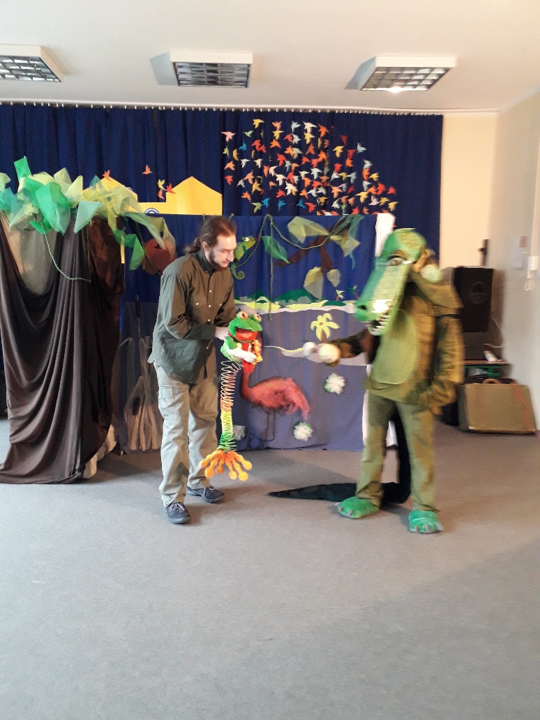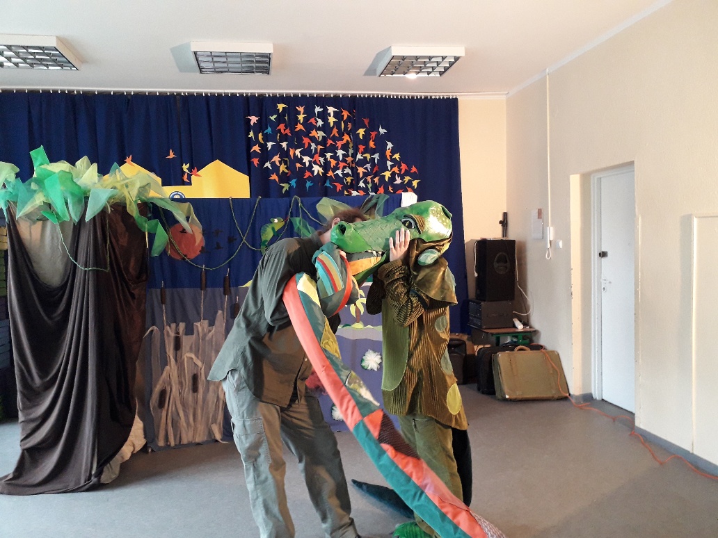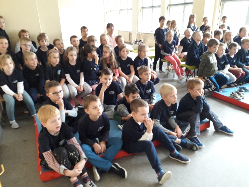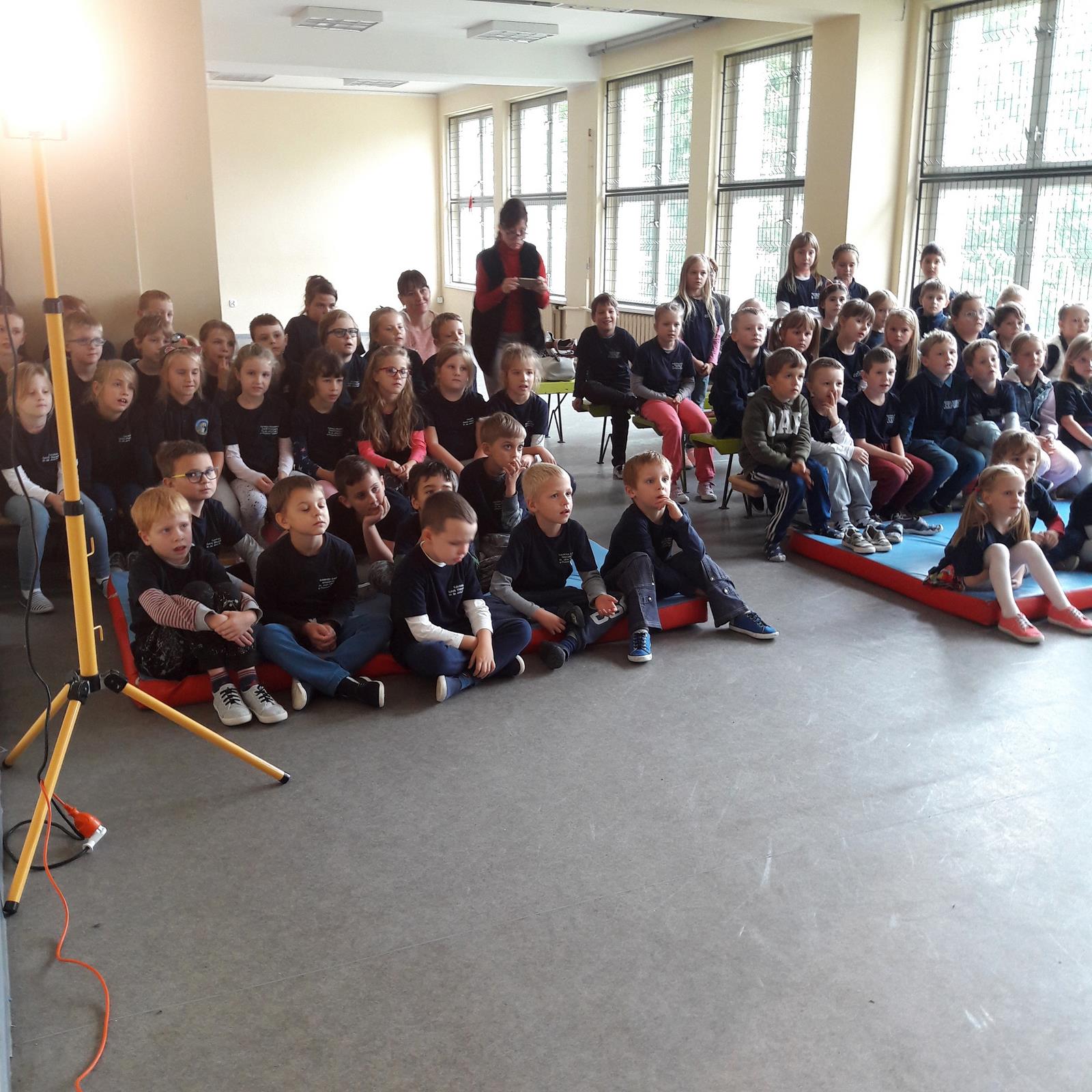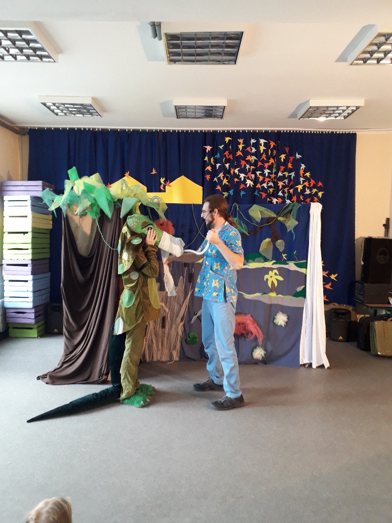 1 października klasy 0-3 odwiedził Teatr Obieżyświat z przedstwieniem "Krokodyle łzy, czyli z wizytą u dentysty". Główny bohater - krokodyl Pako miał problem ze swoimi zębami , jednak nie chciał iść do dentysty, bo bardzo się go bał. Z pomocą przyszli przyjaciele, którzy próbowali wyleczyć jego zęby swoimi sposobami, które niestety okazały się nieskuteczne. Koniecznością była wizyta u dentysty, która jak się okazało wcale nie była taka straszna i pomogła rozwiązać problem zębów. Nasi uczniowie z dużym zainteresowaniem obejrzeli przedstawienie i wiedzą, aby mieć zdrowe ząbki należy odpowiednio o nie dbać i nie trzeba bać się dentysty.