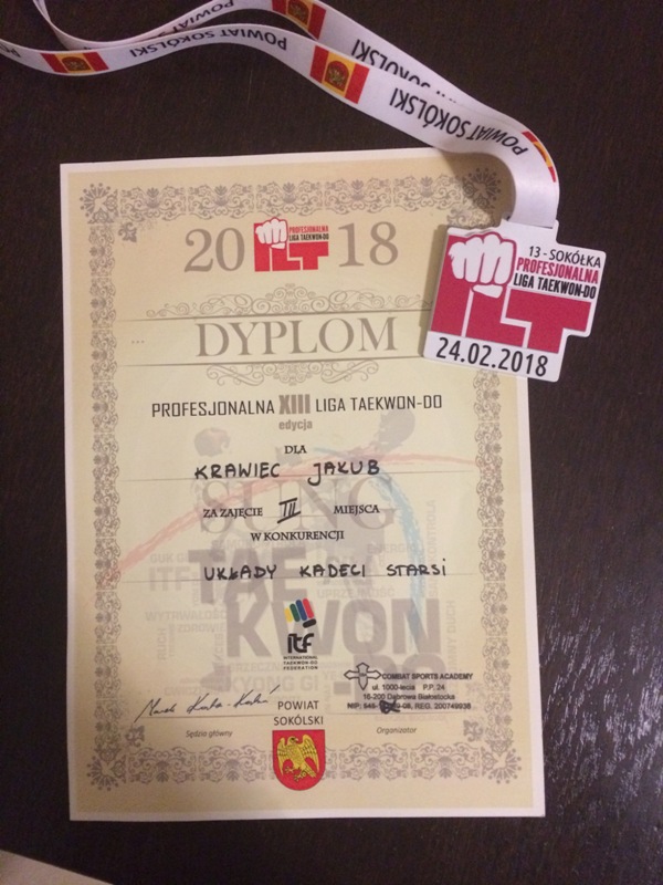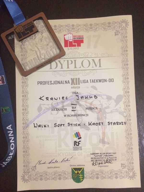 Jakub Krawiec - uczeń klasy IV naszej szkoły - w sobotę 24 lutego 2018 uczestniczył w XIII edycji PROFESJONALNEJ LIGII TAEKWON-DO w Sokółce zdobywajac III miejce w konkurencji Układy Kadeci Starsi . Kuba równiez dnia 3.12.2017 w Jabłonnej zdobył III miejce w konkurencji Walki Soft Stick - Kadet Starszy .