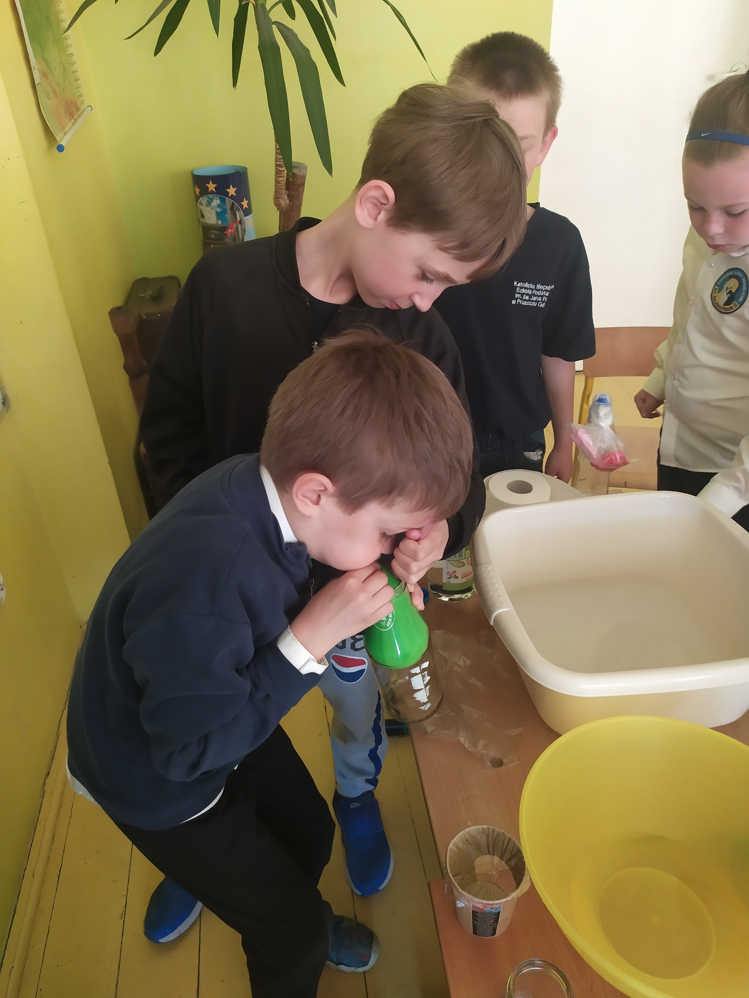 Nasz kolega Czarek przygotował fasynującą lekcję, pełną eksperymentów chemicznych związanych z wodą. Kto wie może w przyszłości zostanie znanym chemikiem.