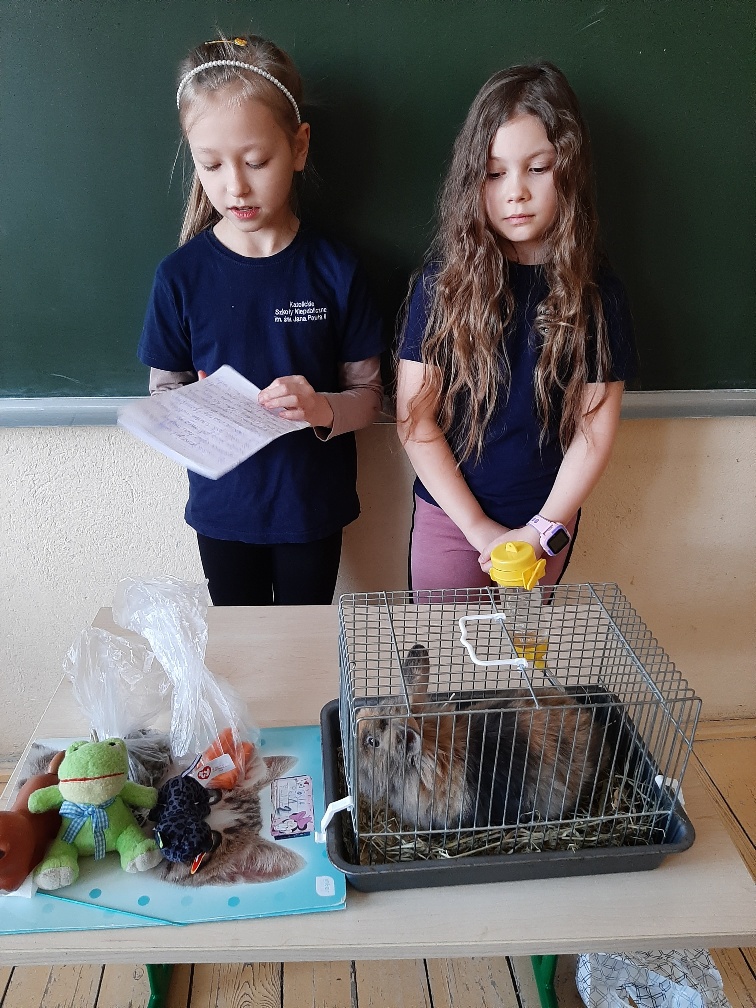 Ciekawą lekcję o swoim króliczku poprowadziła uczennica naszej klasy -Tosia...