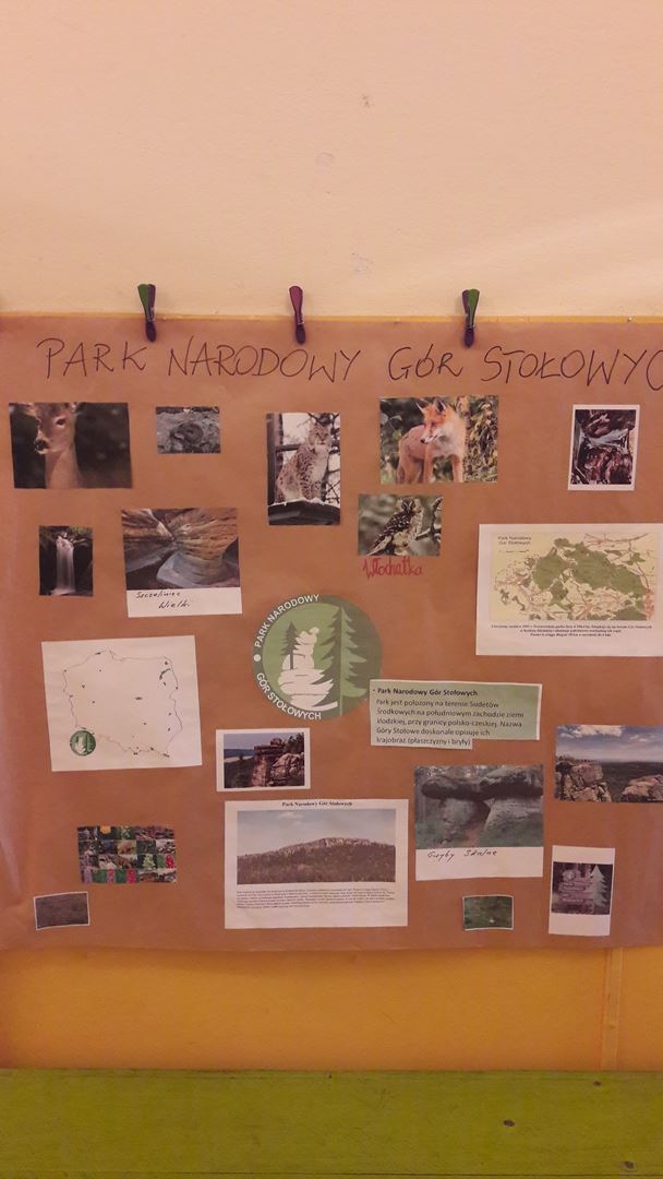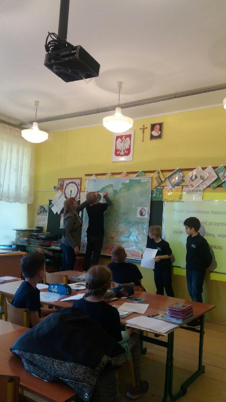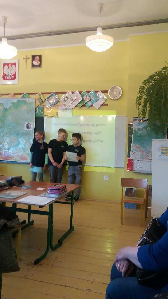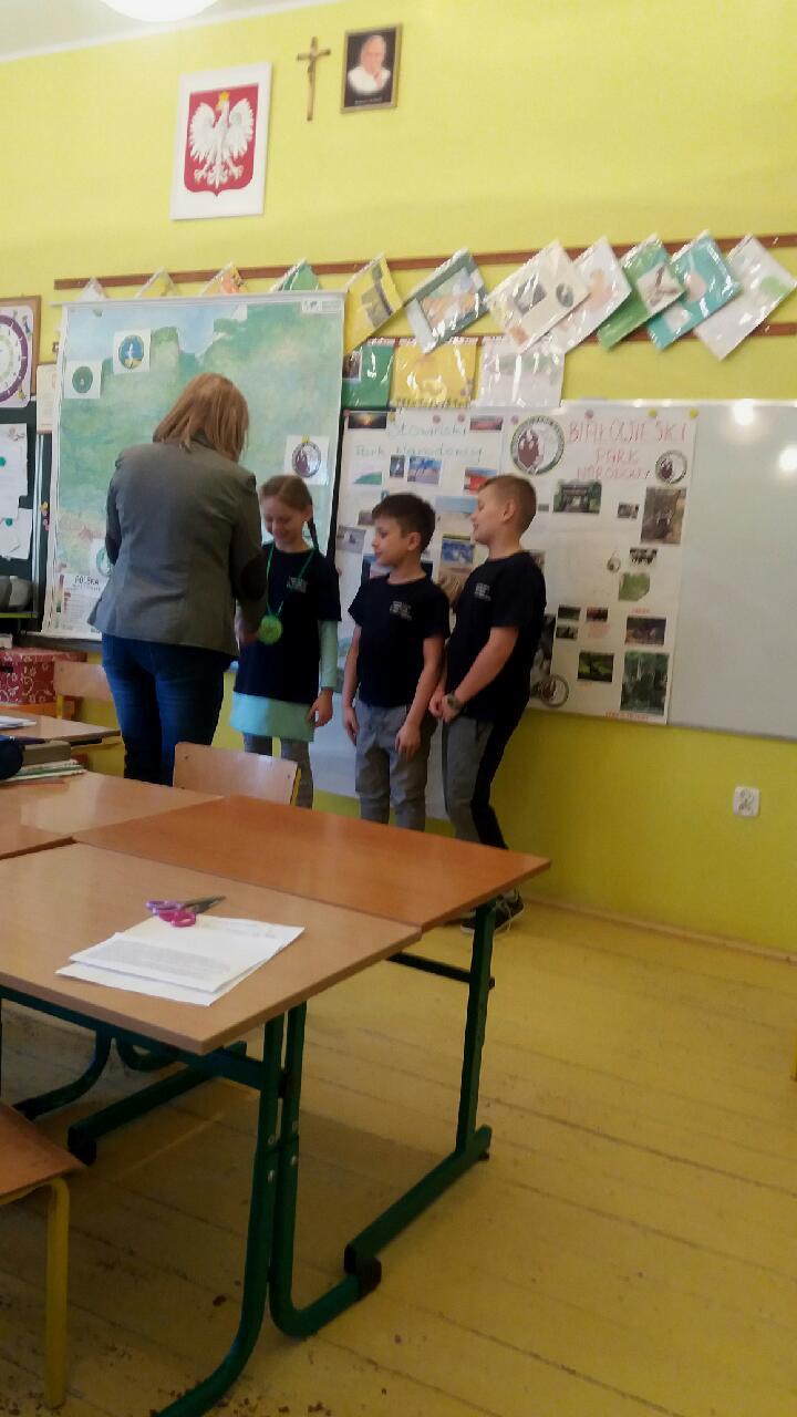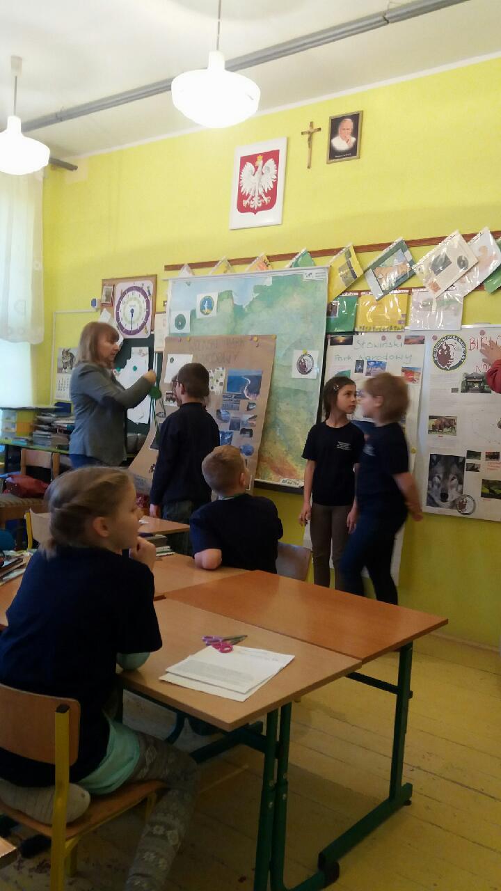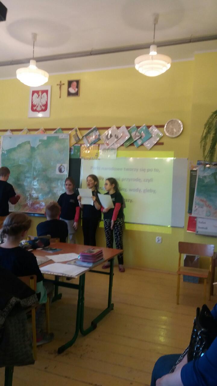 19 marca odbyła się lekcja otwarta dla rodziców. Na lekcji robiliśmy plakaty o parkach narodowych. Byliśmy podzieleni na cztery grupy i każda z nich miała napisać, gdzie się dany park znajduje, jaki ma symbol, czym się wyróżnia, jakie tam znajdują się rośliny i zwierzęta. Na plakacie mieliśmy umieścić wydrukowane zwierzęta z tego parku i mapę. Plakaty wykonywaliśmy razem z rodzicami. Na koniec dostaliśmy medale z napisem „Jestem przyjacielem przyrody”.