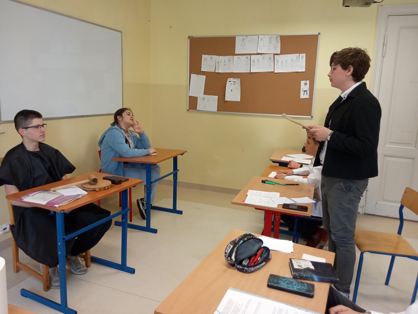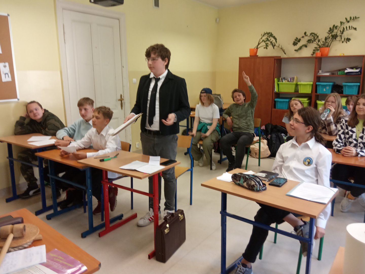 W klasie siódmej na konwersacjach w języku angielskim odbyła się rozprawa sądowa. Podejrzani zostali uniewinnieni przez ławę przysięgłych dzięki świetnej obronie ich prawnika.
