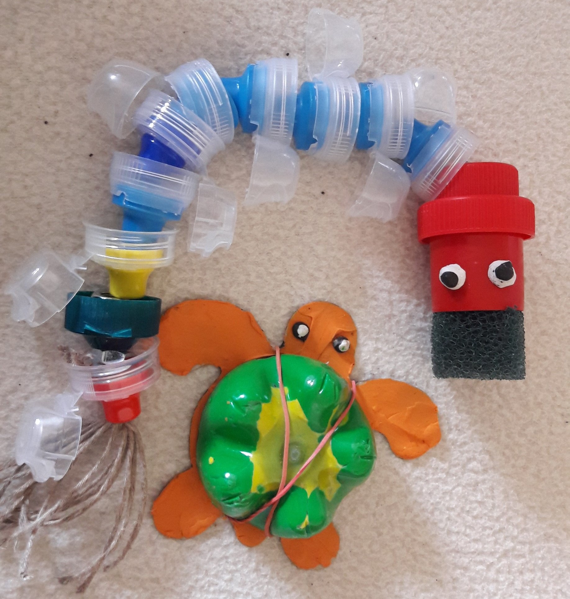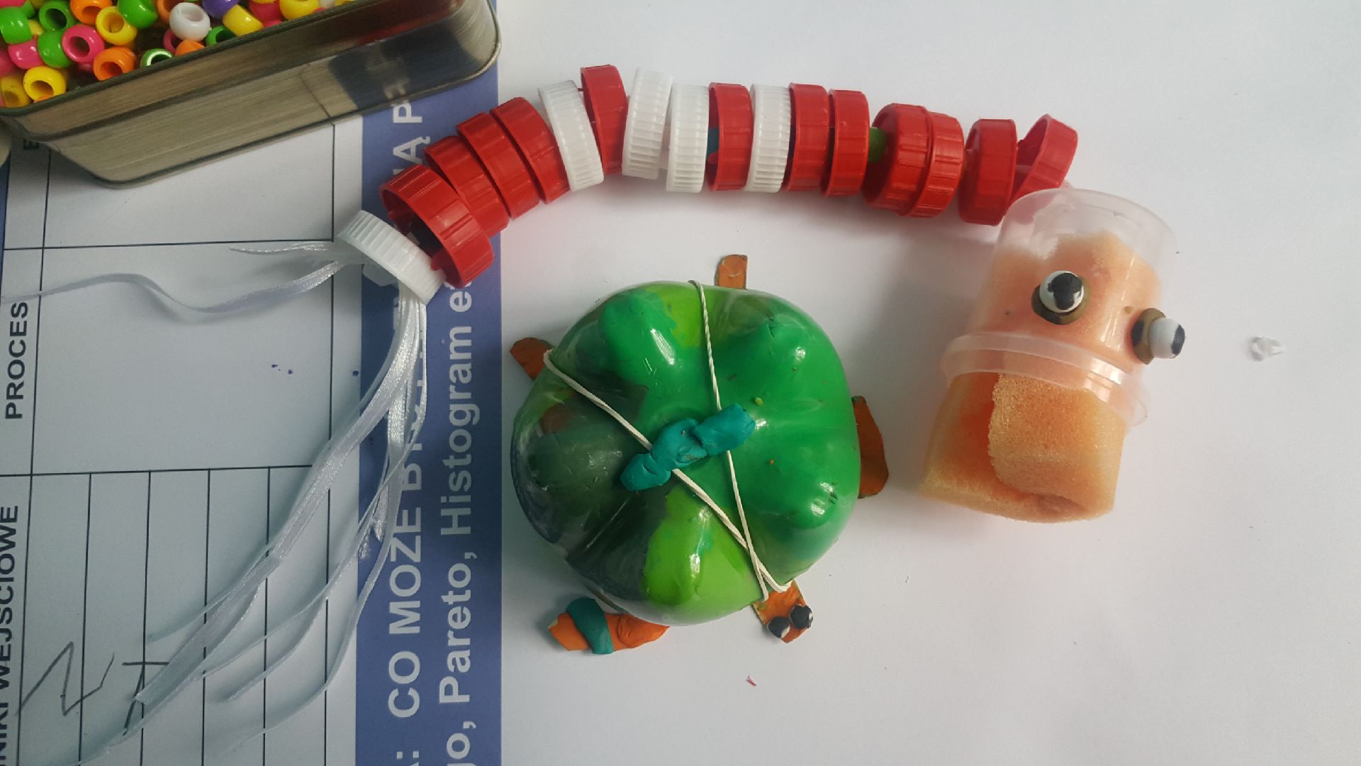 Wykonaliśmy zabawki z odpadów, śmieci czyli rzeczy już niepotrzebnych. Zrobiliśmy z nich żółwia i węża. To nie tylko lekcja ekologii, ale też świetna zabawa.