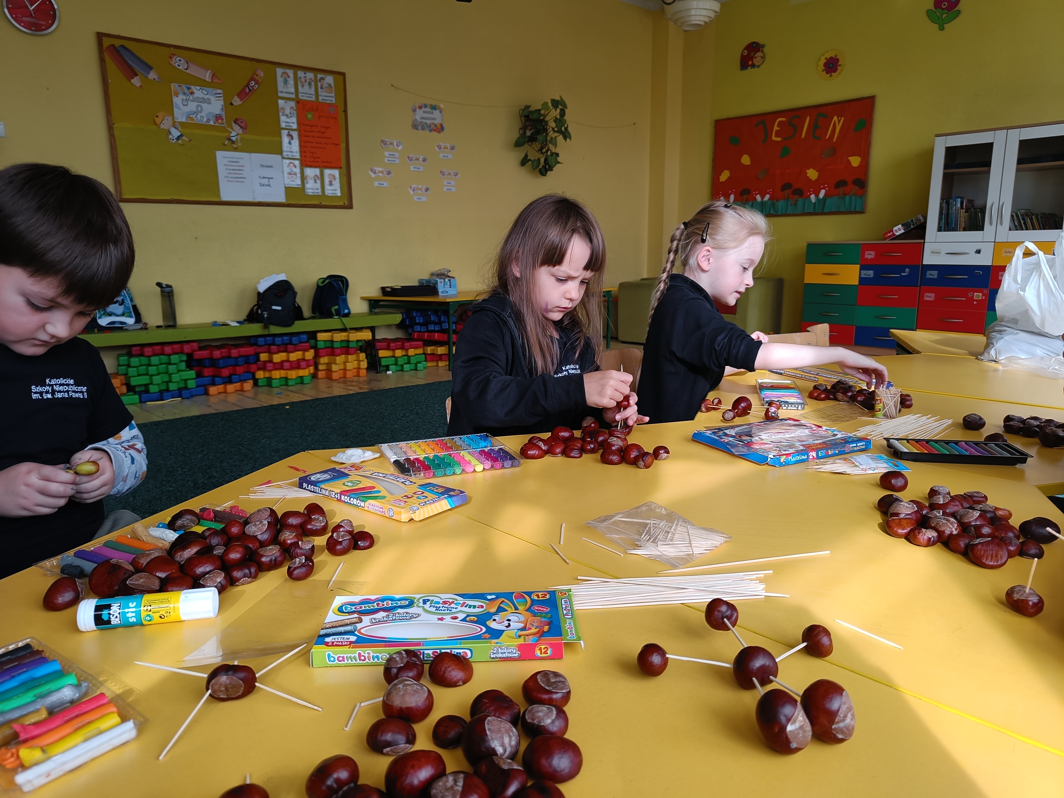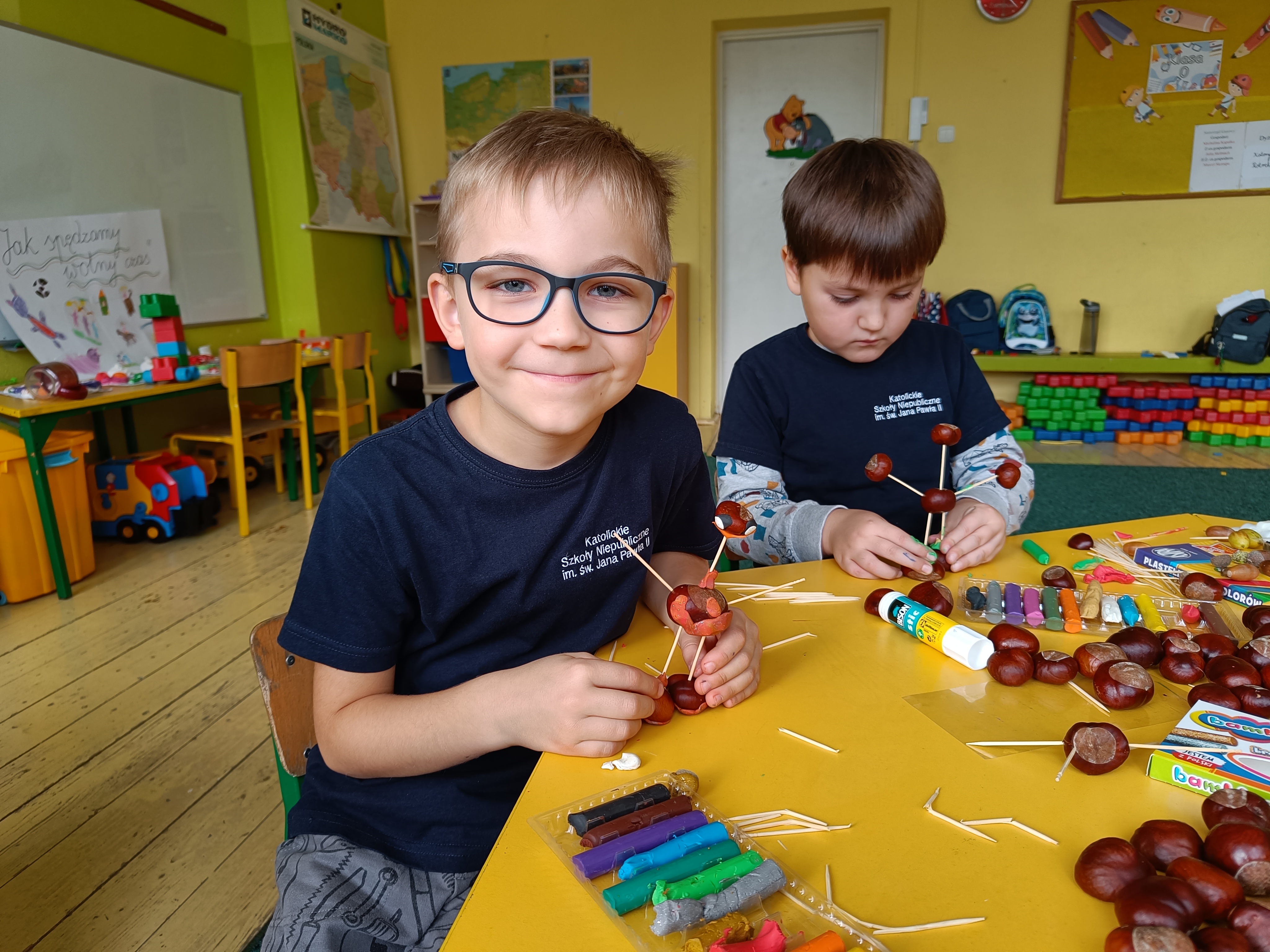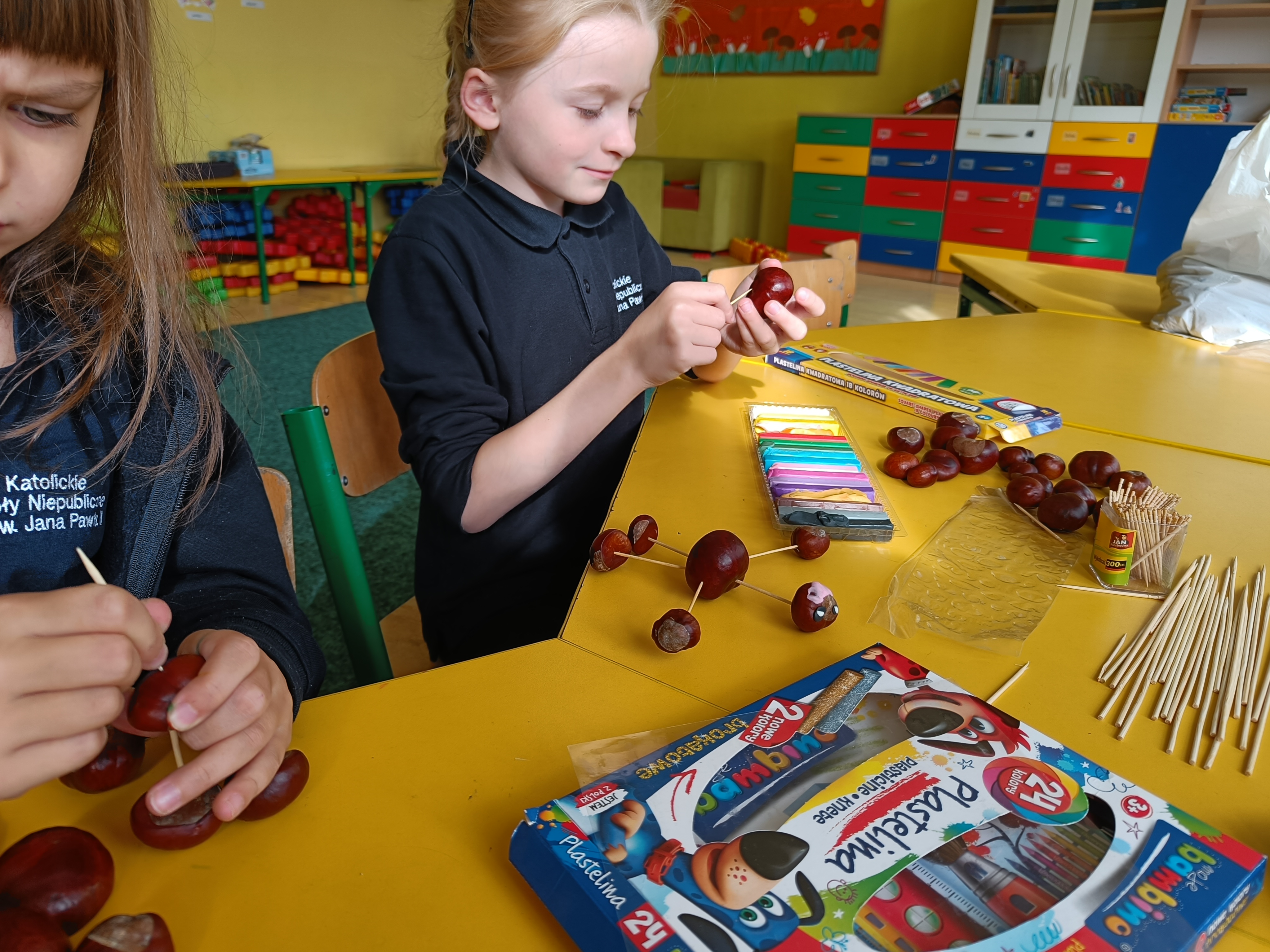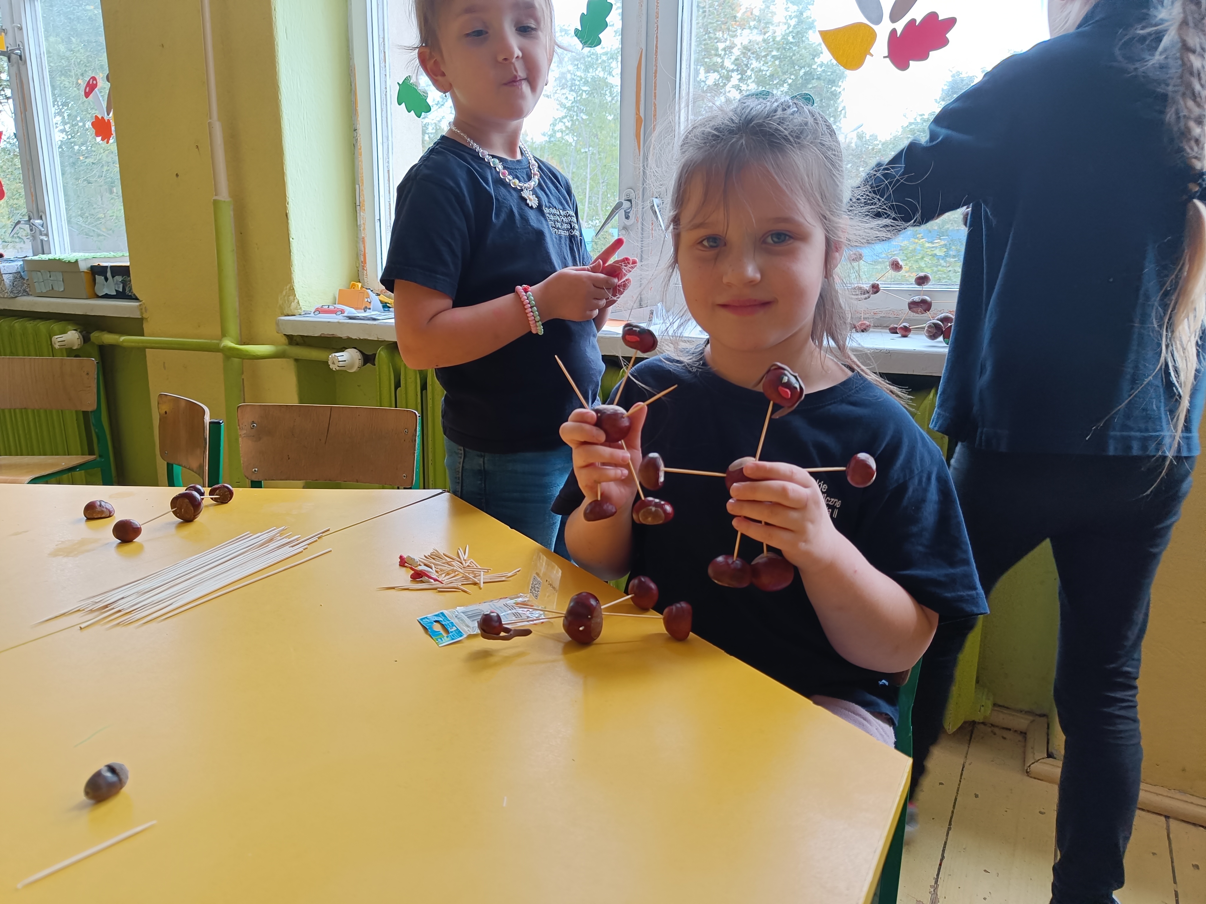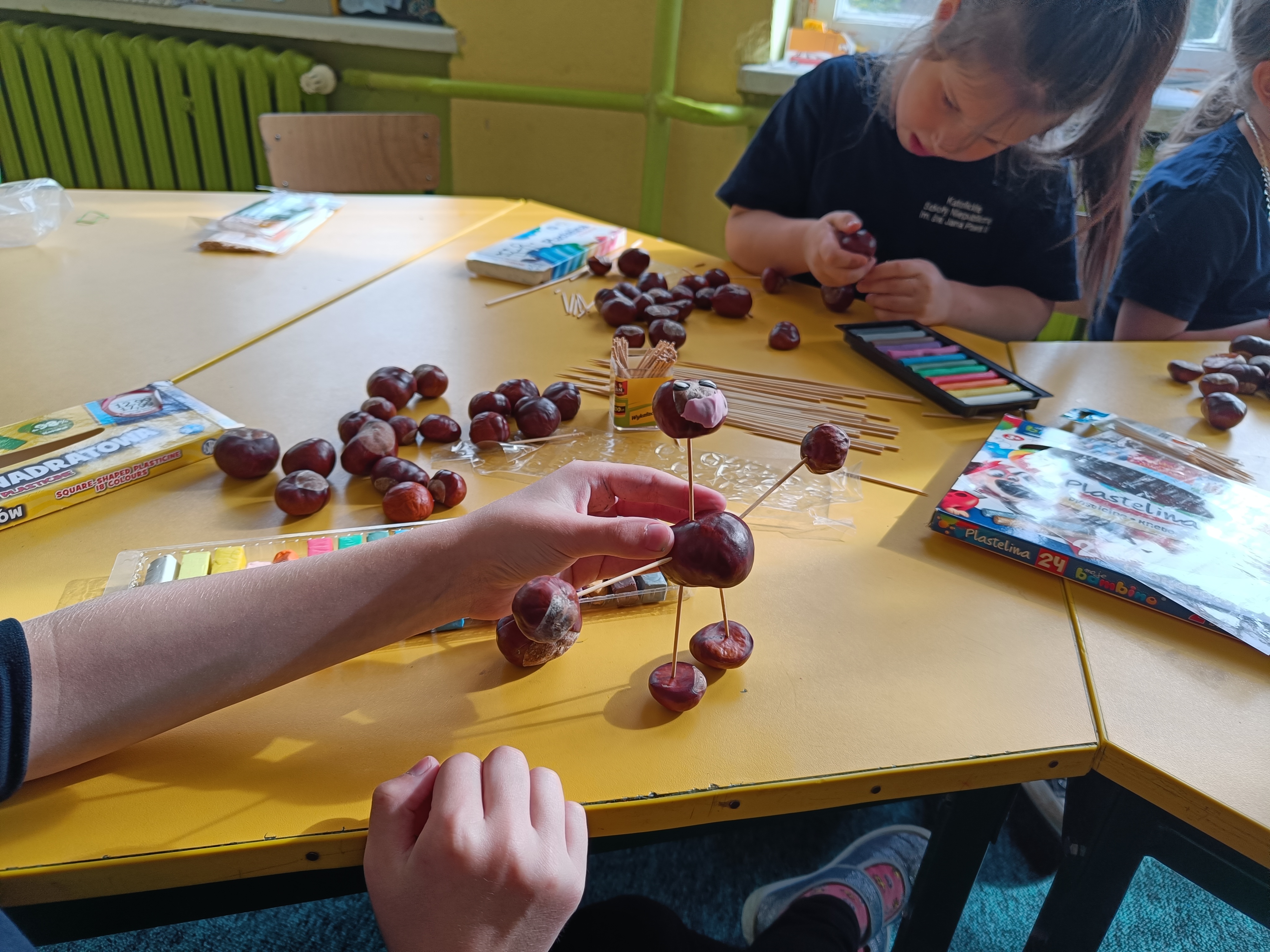 Dzisiaj zrobiliśmy różne ludziki z kasztanków, wykałaczek i plasteliny :)