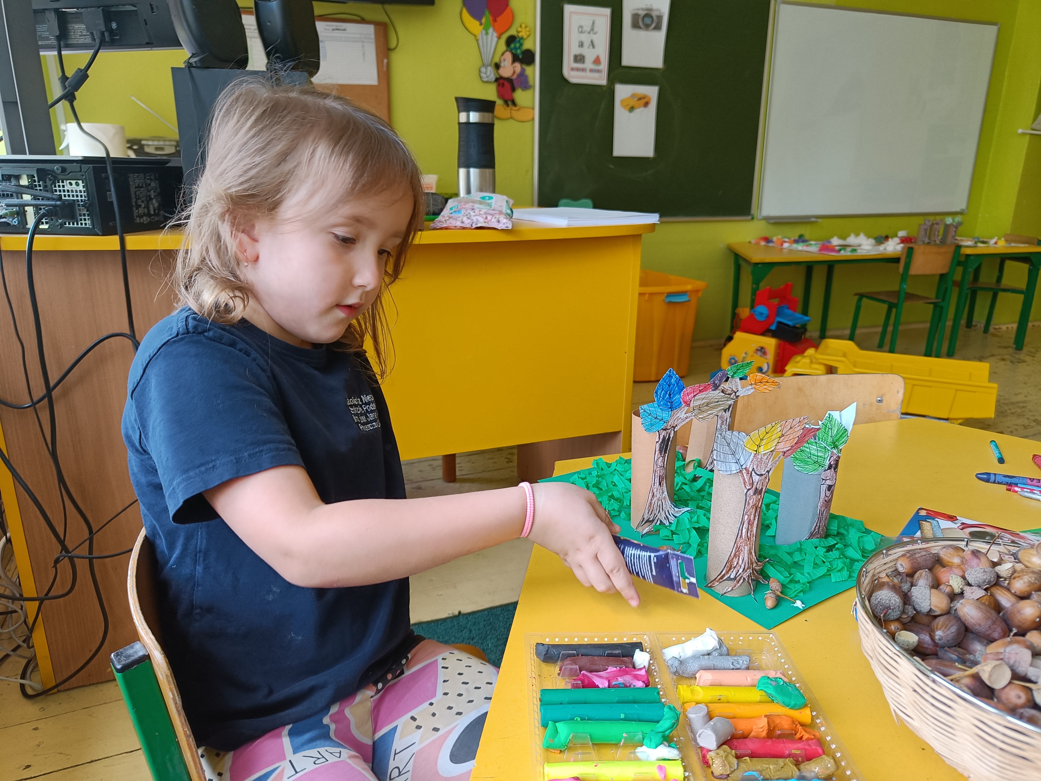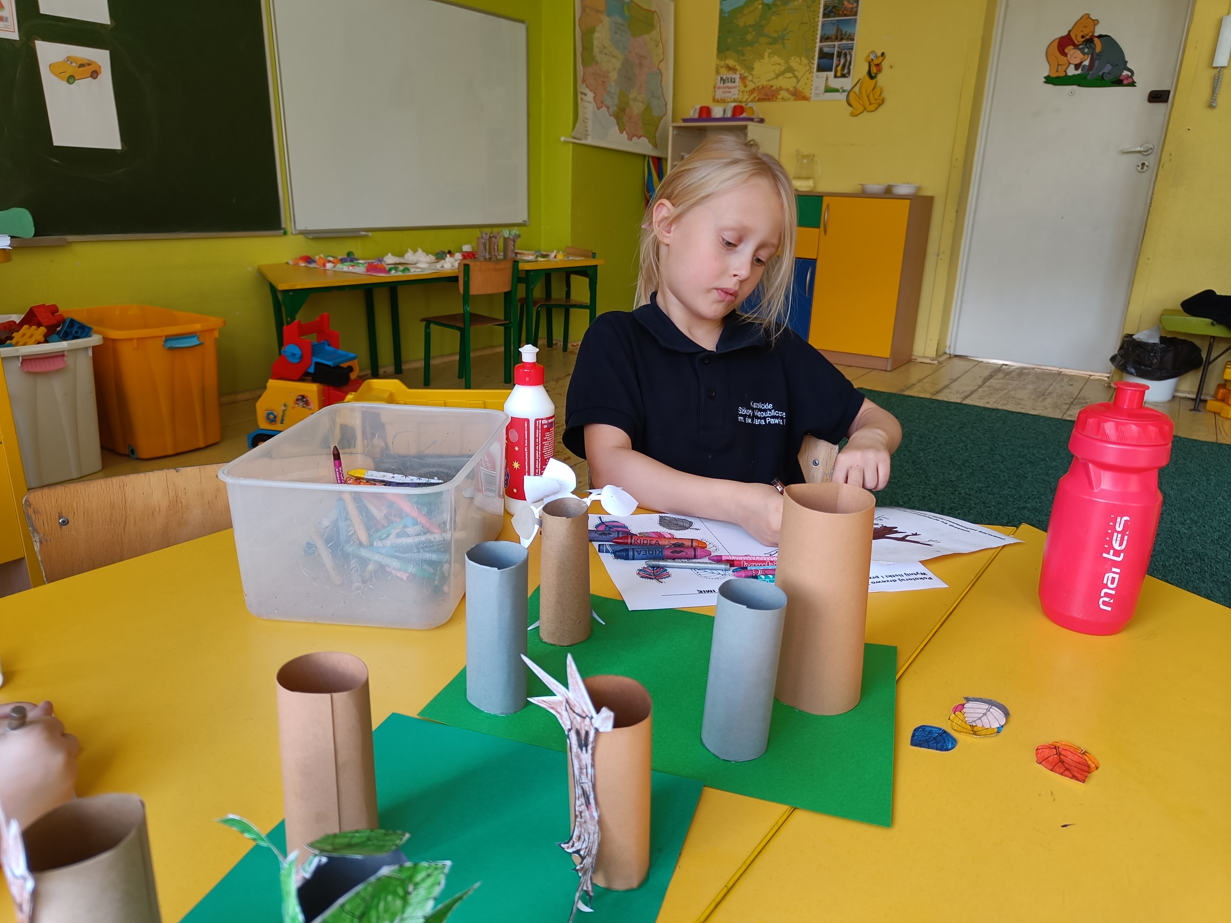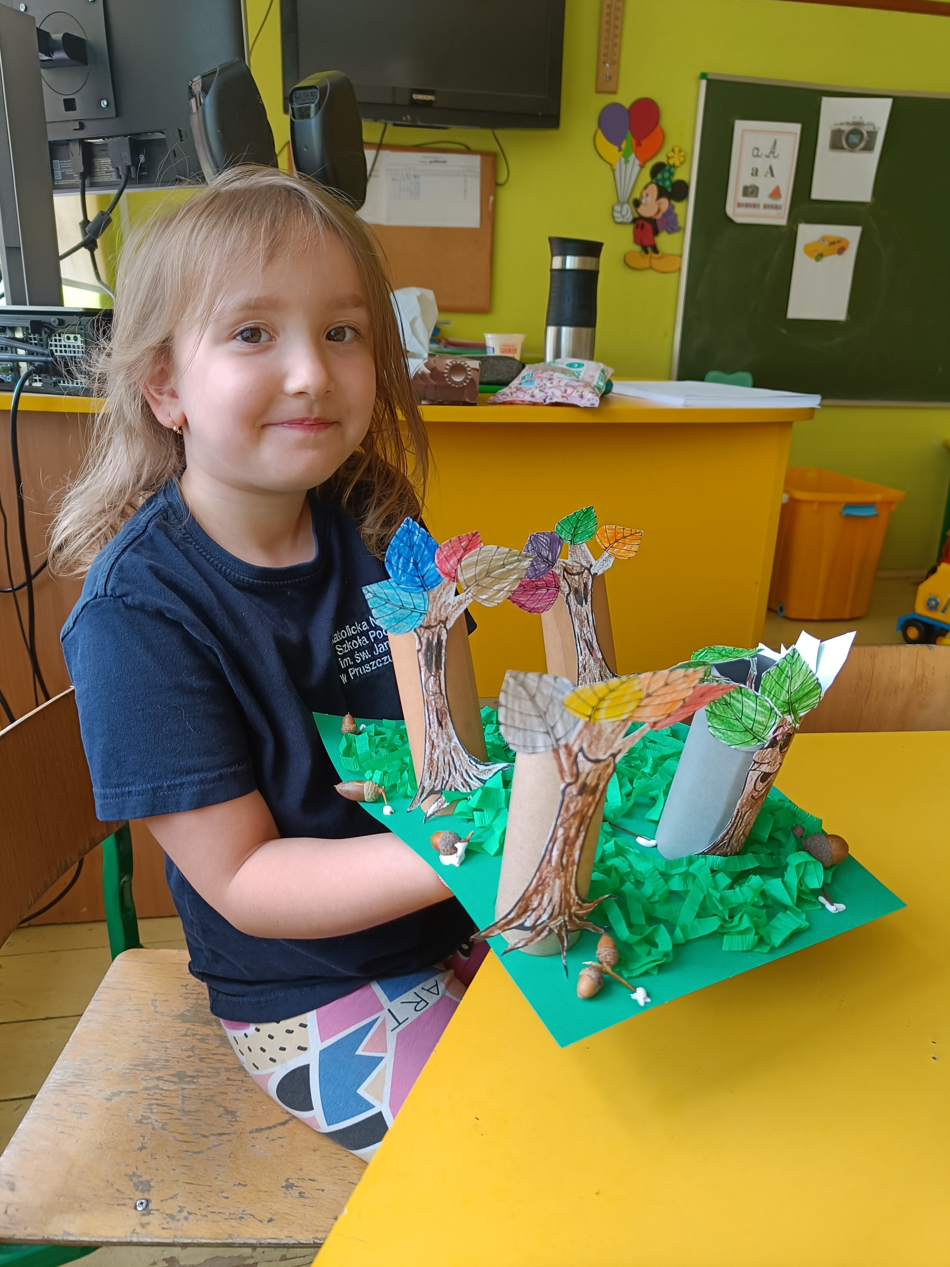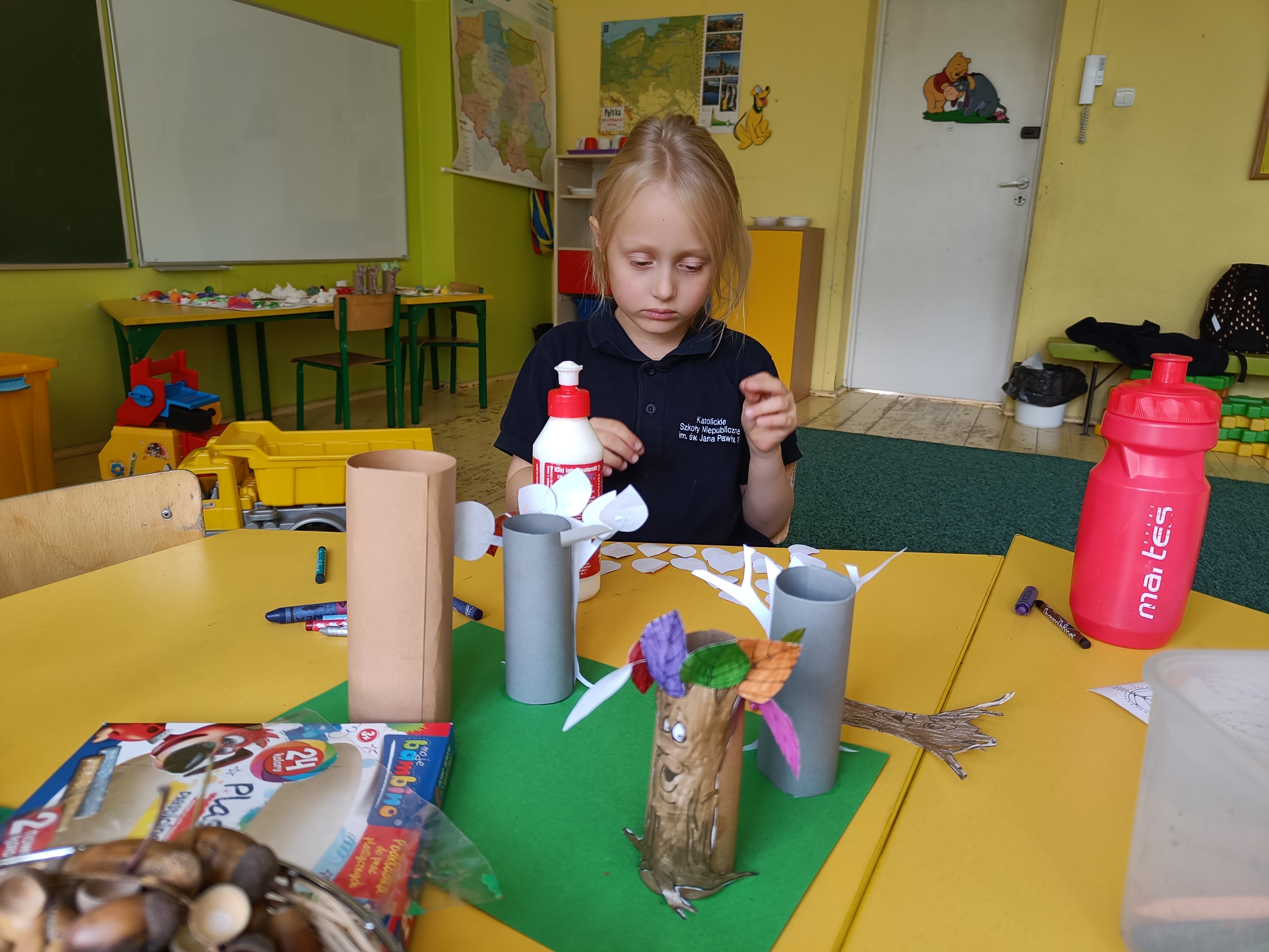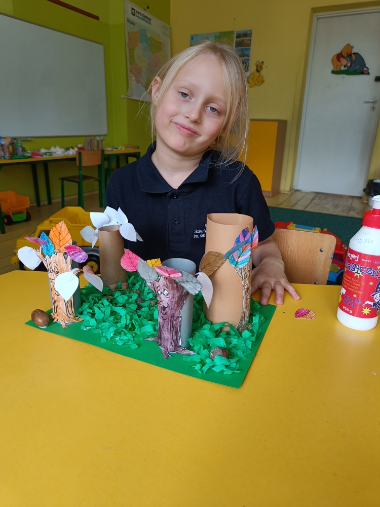 Zrobiliśmy swoje własne parki z rolek papieru powstały drzewa a z pociętej krepy trawa.