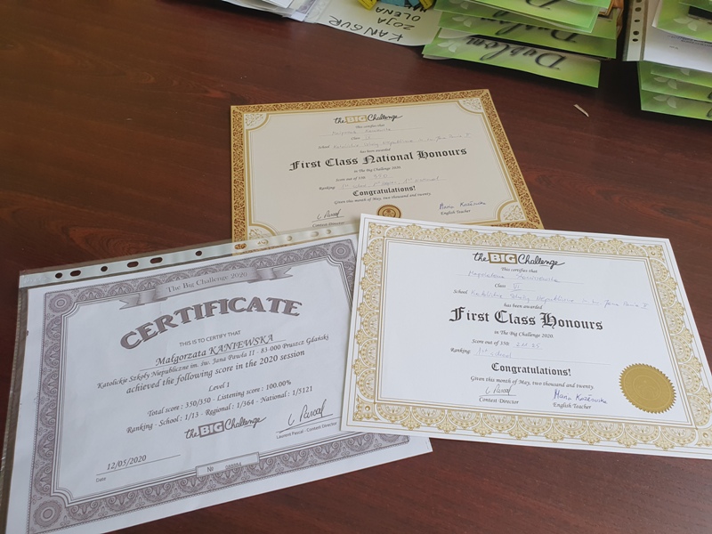 Wraz ze świadectwami rozdamy również wiele dyplomów za osiągnięcia w różnych konkursach, do najważniejszych należą: