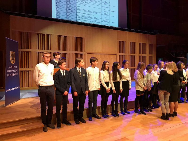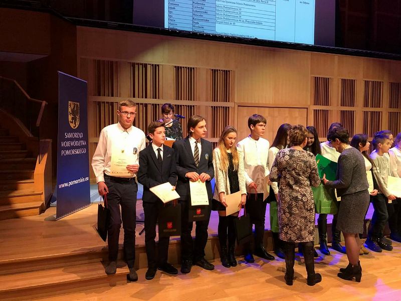 18 grudnia 2017 r. Marszałek Województwa Pomorskiego, Mieczysław Struk, wręczył stypendia w ramach projektu pn. "Pomorski program pomocy stypendialnej 2015/2016 i 2016/2017" współfinansowane ze środków Unii Europejskiej. Stypendia te zdobyli dwaj obecni uczniowie naszej szkoły: Dawid Juszkiewicz (III A gim) i Konrad Ślusarz (III A gim) oraz absolwent gimnazjum: Paweł Rutkowski.