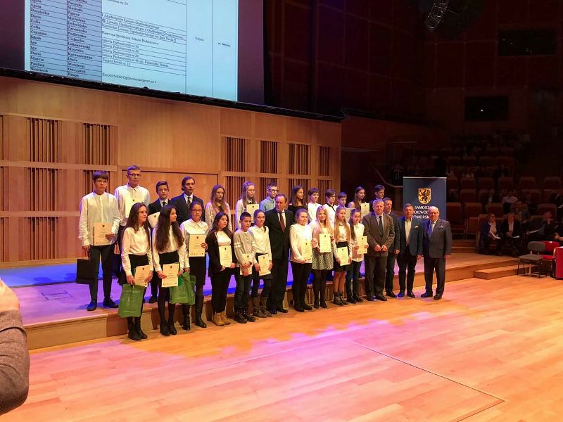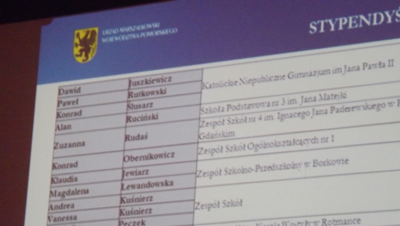 Marszałek przyznał również stypendia w ramach programu wspierania edukacji uzdolnionych dzieci i młodzieży – mieszkańców województwa pomorskiego - finansowane ze środków budżetowych województwa pomorskiego. Wśród stypendystów znalazł się uczeń kl. III A gim - Konrad Ślusarz.