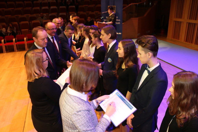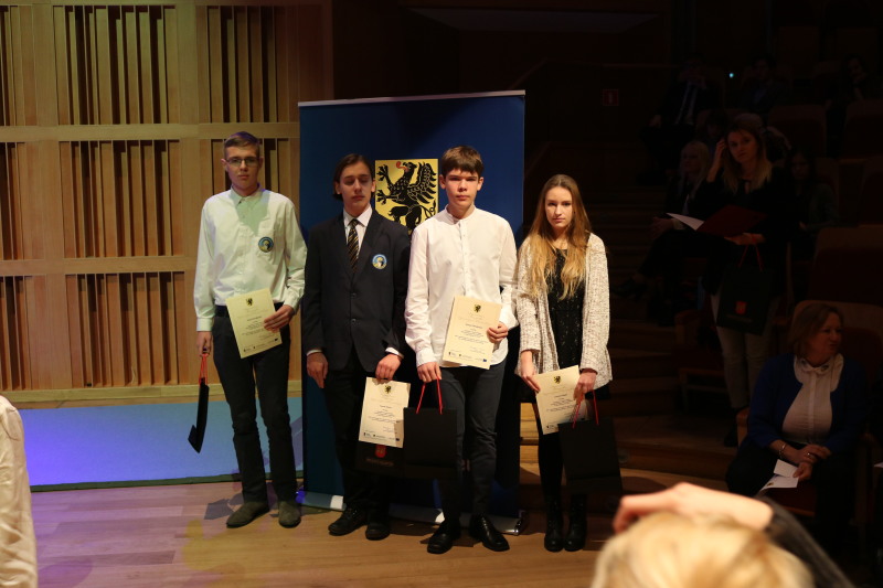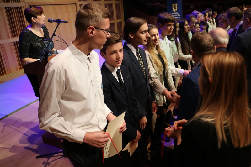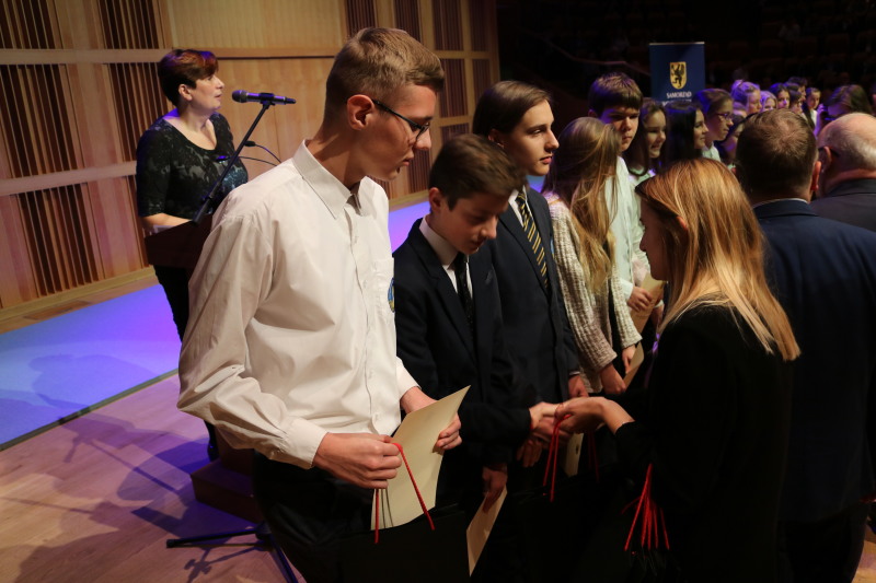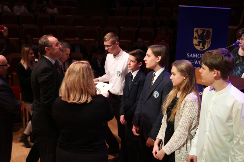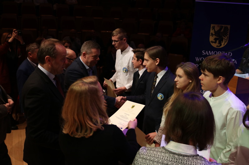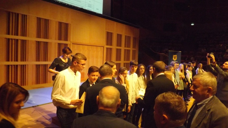 Marszałek wyróżnił również niektórych stypendystów zeszłorocznej edycji programu stypendialnego - tych, którzy w trakcie ubiegłego roku szkolnego osiągnęli szczególnie wysokie wyniki podczas realizacji swoich indywidualnych programów rozwoju edukacyjnego. Wśród wyróżnionych znalazł się Konrad Ślusarz.