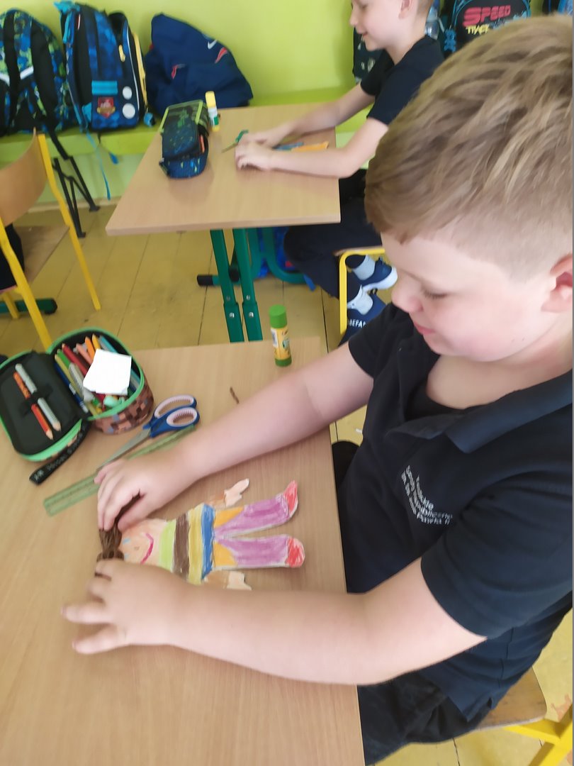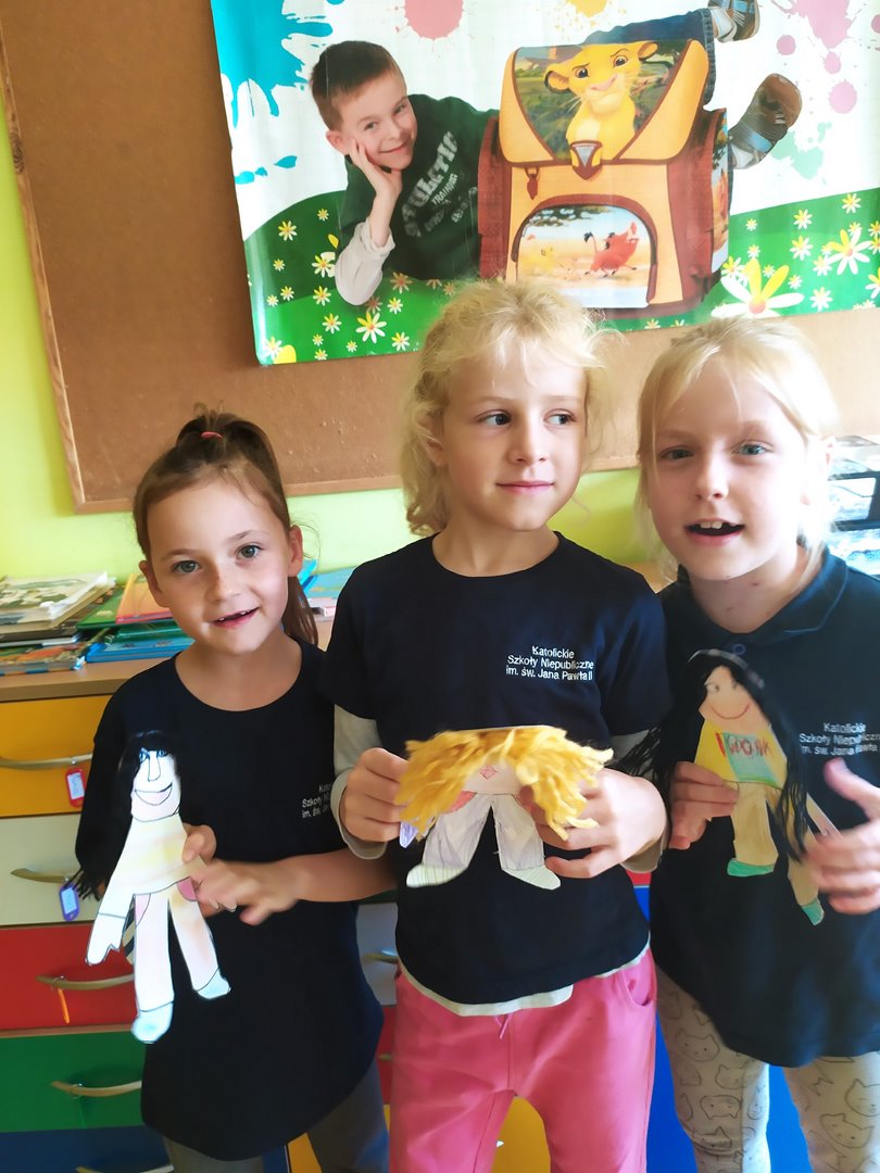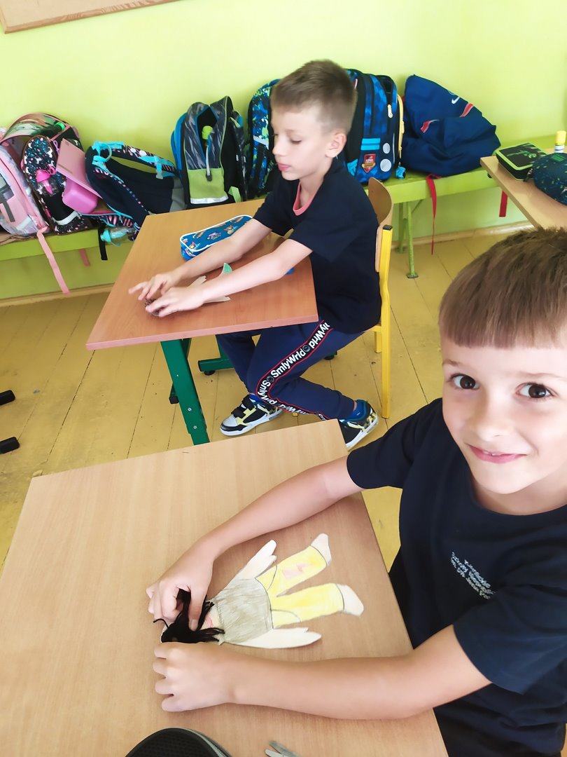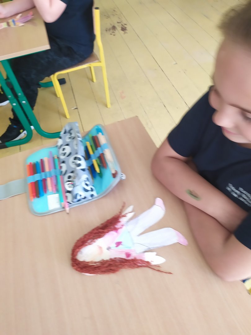 Na dzisiejszych lekcjach wykonaliśmy naszą pierwszą pracę plastyczną - Laleczki na smuteczki. Laleczkom nadaliśmy imiona i pięknie je ozdobiliśmy. Od teraz będą nam towarzyszyć w życiu szkolnym i pomagać w trudnych chwilach. Praca sprawiła nam wiele radości.