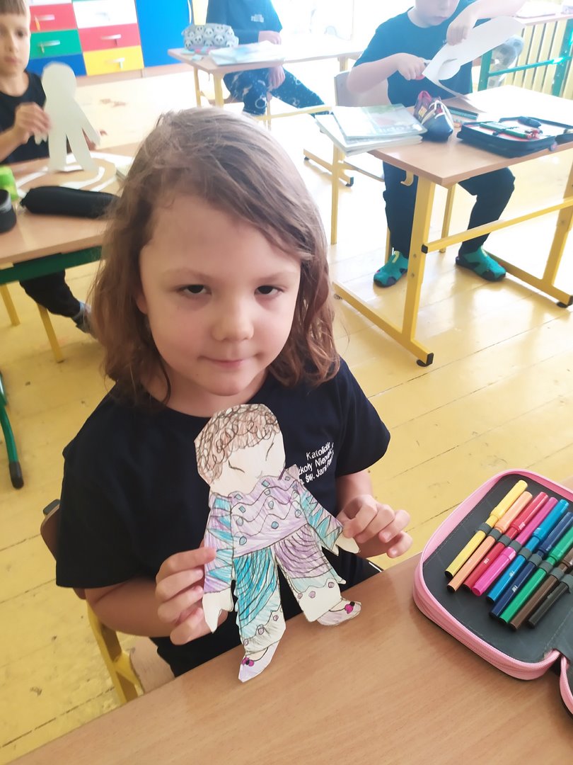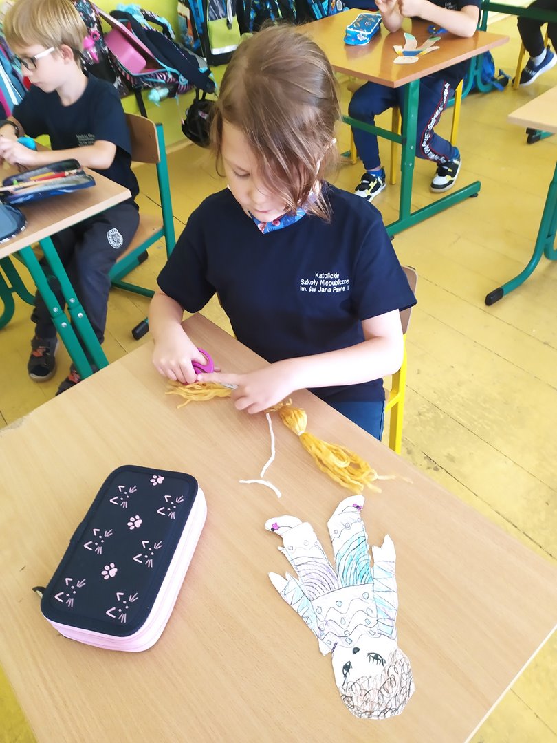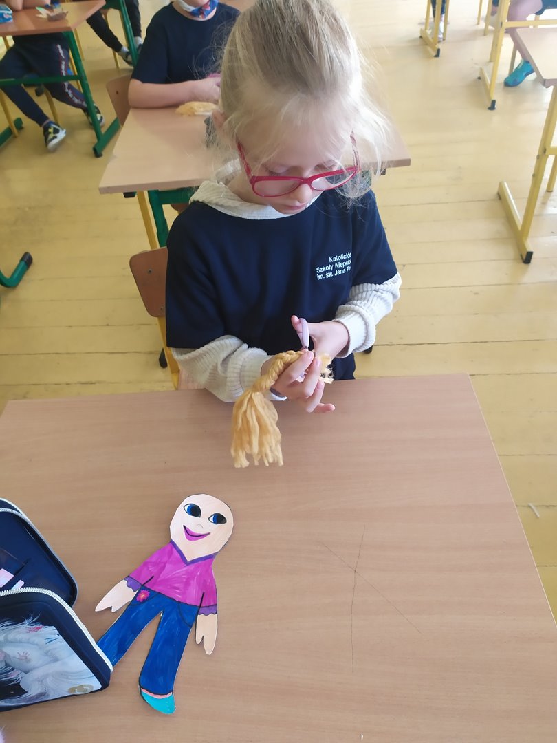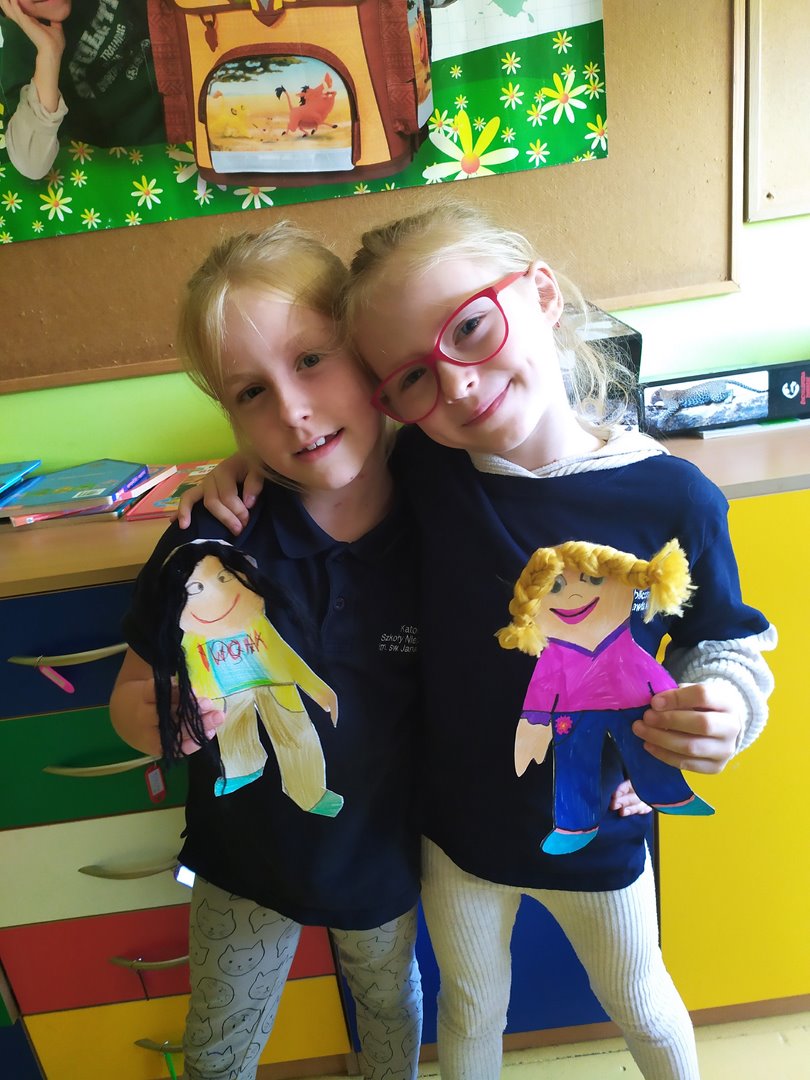Na dzisiejszych lekcjach wykonaliśmy naszą pierwszą pracę plastyczną - Laleczki na smuteczki. Laleczkom nadaliśmy imiona i pięknie je ozdobiliśmy. Od teraz będą nam towarzyszyć w życiu szkolnym i pomagać w trudnych chwilach. Praca sprawiła nam wiele radości.