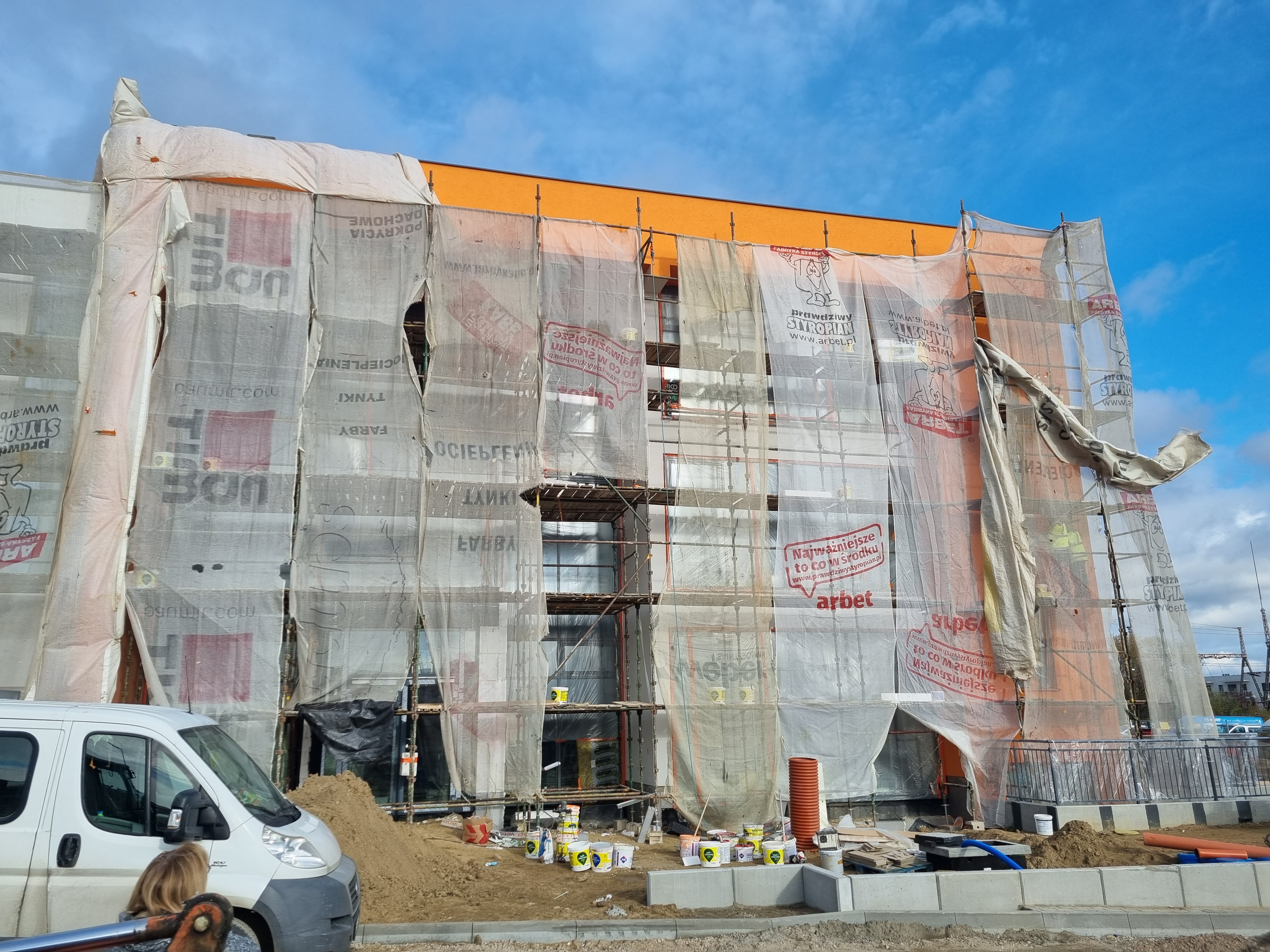 Mamy już piękną wykładzinę na sali gimnastycznej. Kończymy też malowanie budynku szkoły. W środku budynku kończymy montowanie sufitów... coraz ładniej wygląda nasza nowa szkoła :-)