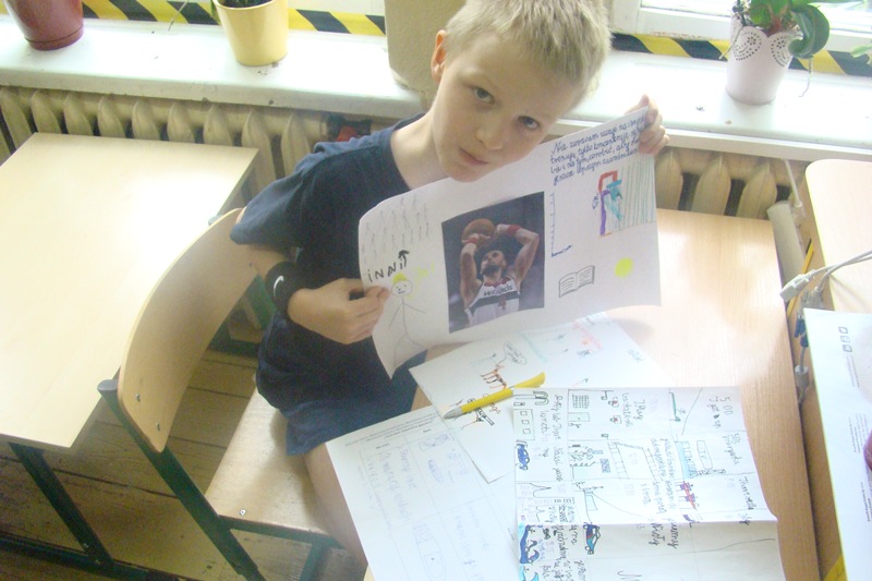 Wiktor bardzo interesuje się sportem, najbardziej koszykówką. Ulubionym jego sportowcem jest Gortat, który był naszą przewodnią postacią podczas tutoriali. Omawialiśmy jego cechy, jako sportowca, jego wypowiedzi oraz życiowe wartości, którymi się w życiu kieruje. On uświadomił nam, że porażki nie są po to, aby pokazać nasze słabe strony, lecz są niezbędne do tego, aby się dalej rozwijać.
