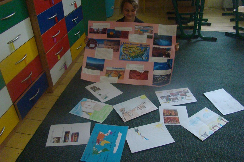 Olenka bardzo lubi "Nelę podróżniczkę", toteż razem z nią podróżowałyśmy trochę po świecie. Podczas naszych tutoriali byłyśmy na Kostaryce, gdzie rosną kakaowce, oglądałyśmy wulkany i piękne wybrzeże. Odwiedziłyśmy Stany Zjednoczone. Byłyśmy w Budapeszcie. Poznawałyśmy tam ciekawe miejsca i zwyczaje. Wiemy, że dzięki Węgrom właśnie, możemy się posługiwać długopisem oraz bawić 'kostką rubika'. Olenka podczas tutoringu poznała również niektóre legend np. 'Pierścień Św. Kingi", "Powstanie Baltonu" czy "Wzgórze Echa" ściśle związane z Budapesztem, a nawet częściowo z Polską.