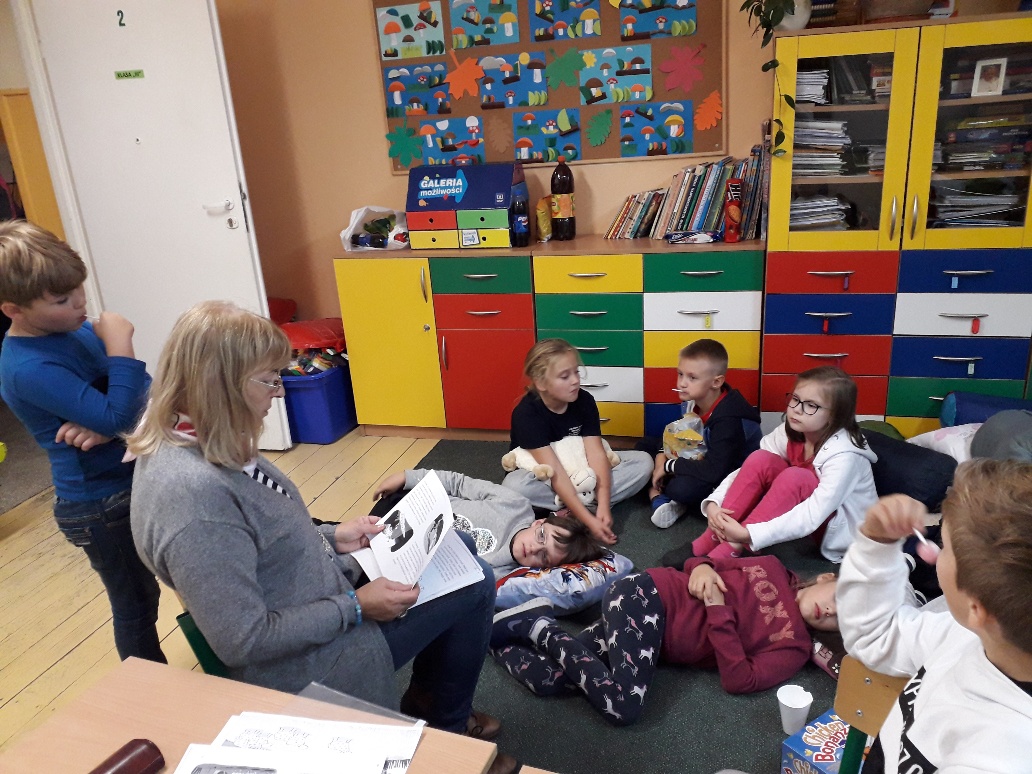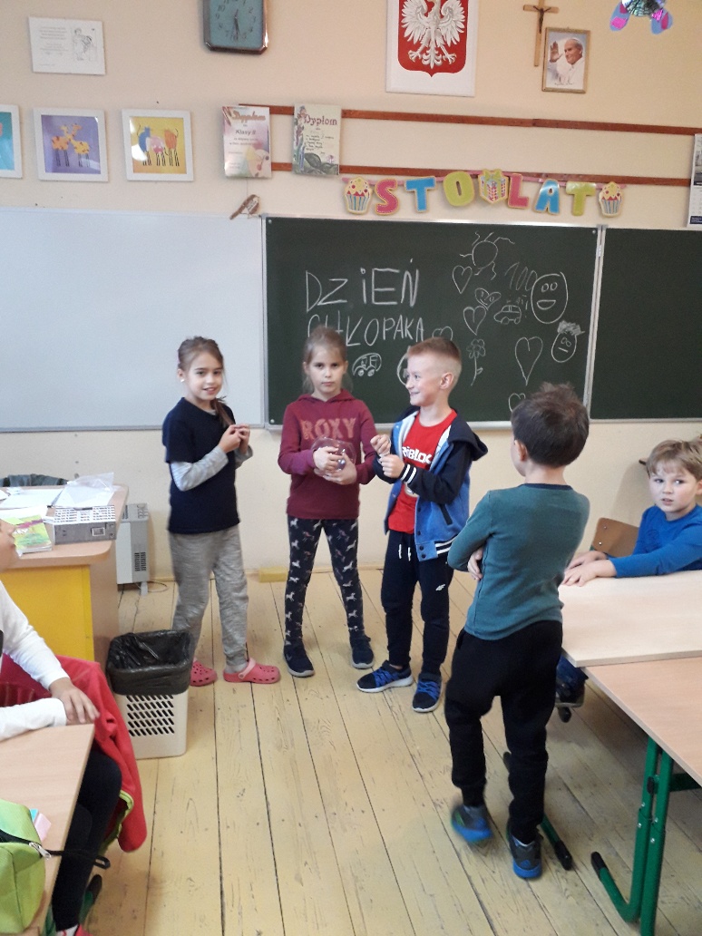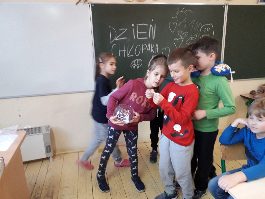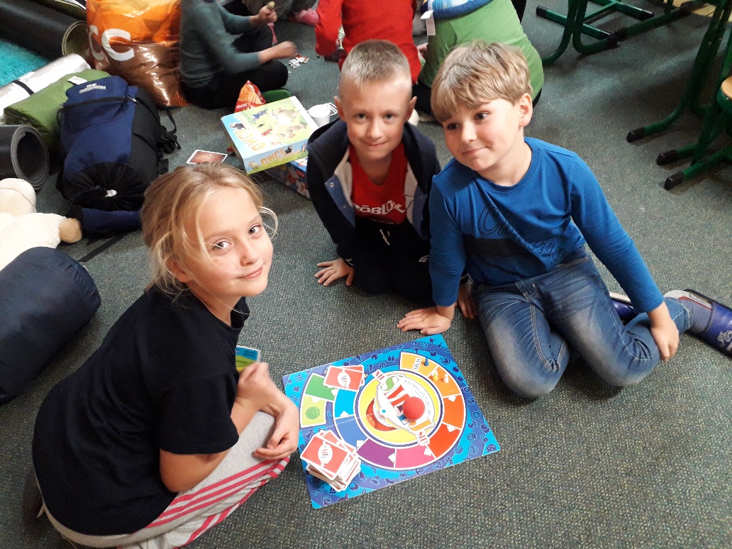 W ostatni piątek było super nocowaliśmy w szkole. Od rana wszyscy czekaliśmy na godzinę 17.00. Oto krótka relacja. Od czego tu zacząć...Najpierw dziewczynki odśpiewały chłopcom "Sto lat" z okazji Dnia Chłopaka,a następnie przygotowały sporo konkursów dla nich. Było bardzo wesoło. Chłopcy z naszej klasy otrzymali również upominki, ale to nie koniec atrakcji.Wieczorem zamówiliśmy pizzę, którą ze smakiem wszyscy zjedli. Odwiedził nas także miły gość. Przyszła do nas Pani Grażynka i przeczytała nam fragment książki z Maratonu Czytelniczego. Potem graliśmy w gry stolikowe i zrobiliśmy piękne wiewiórki. Zapraszamy do obejrzenia zdjęć...
