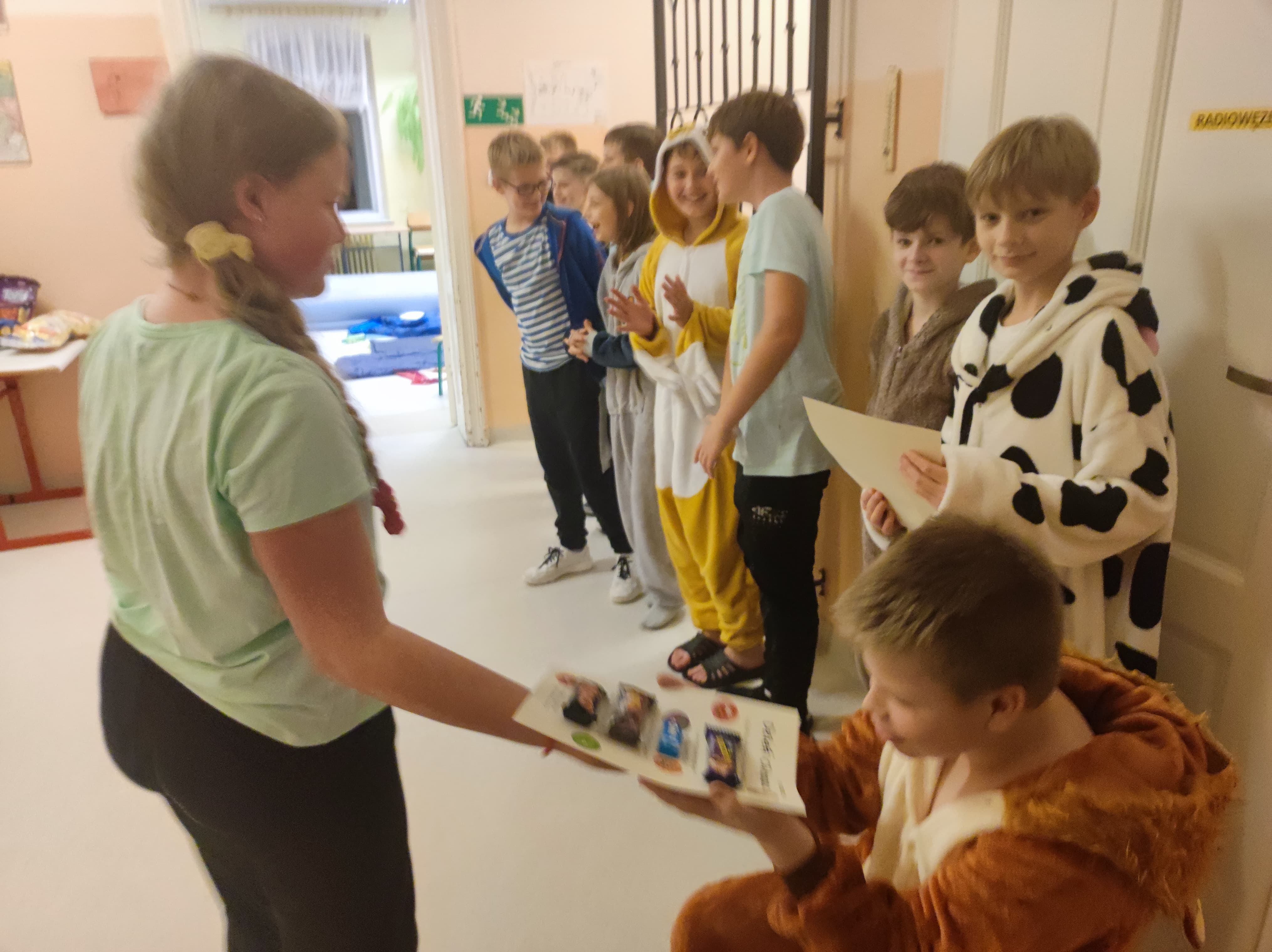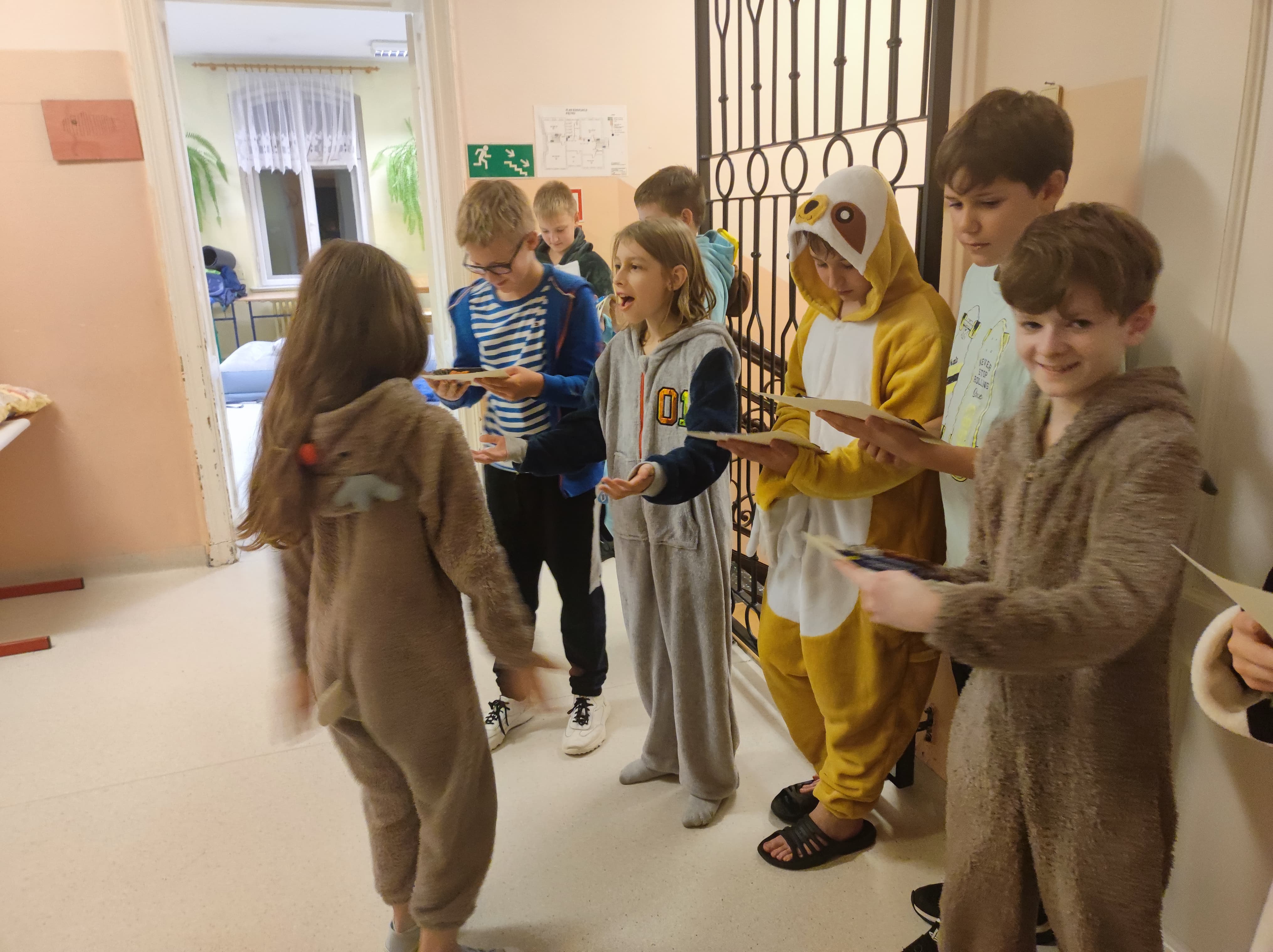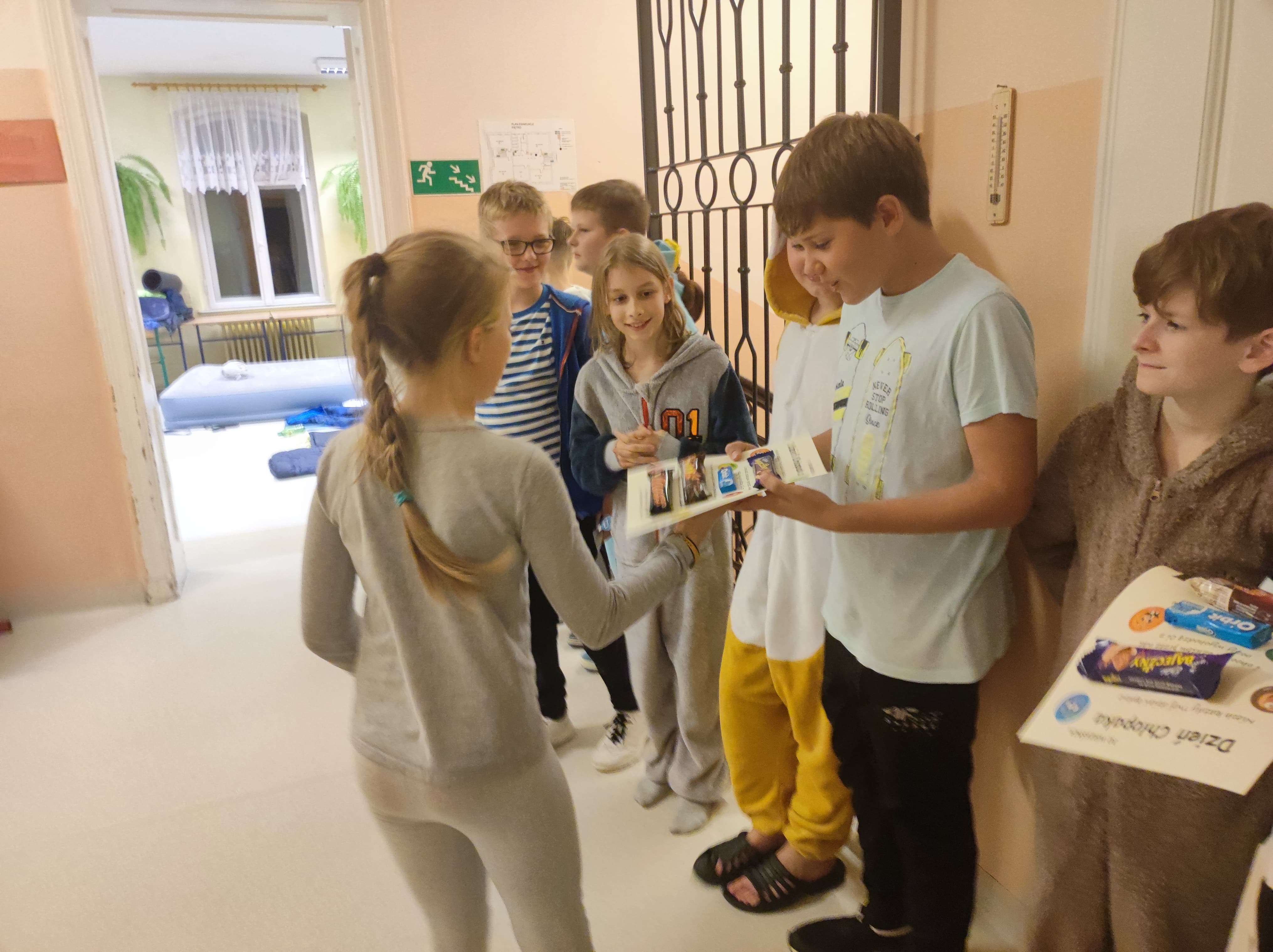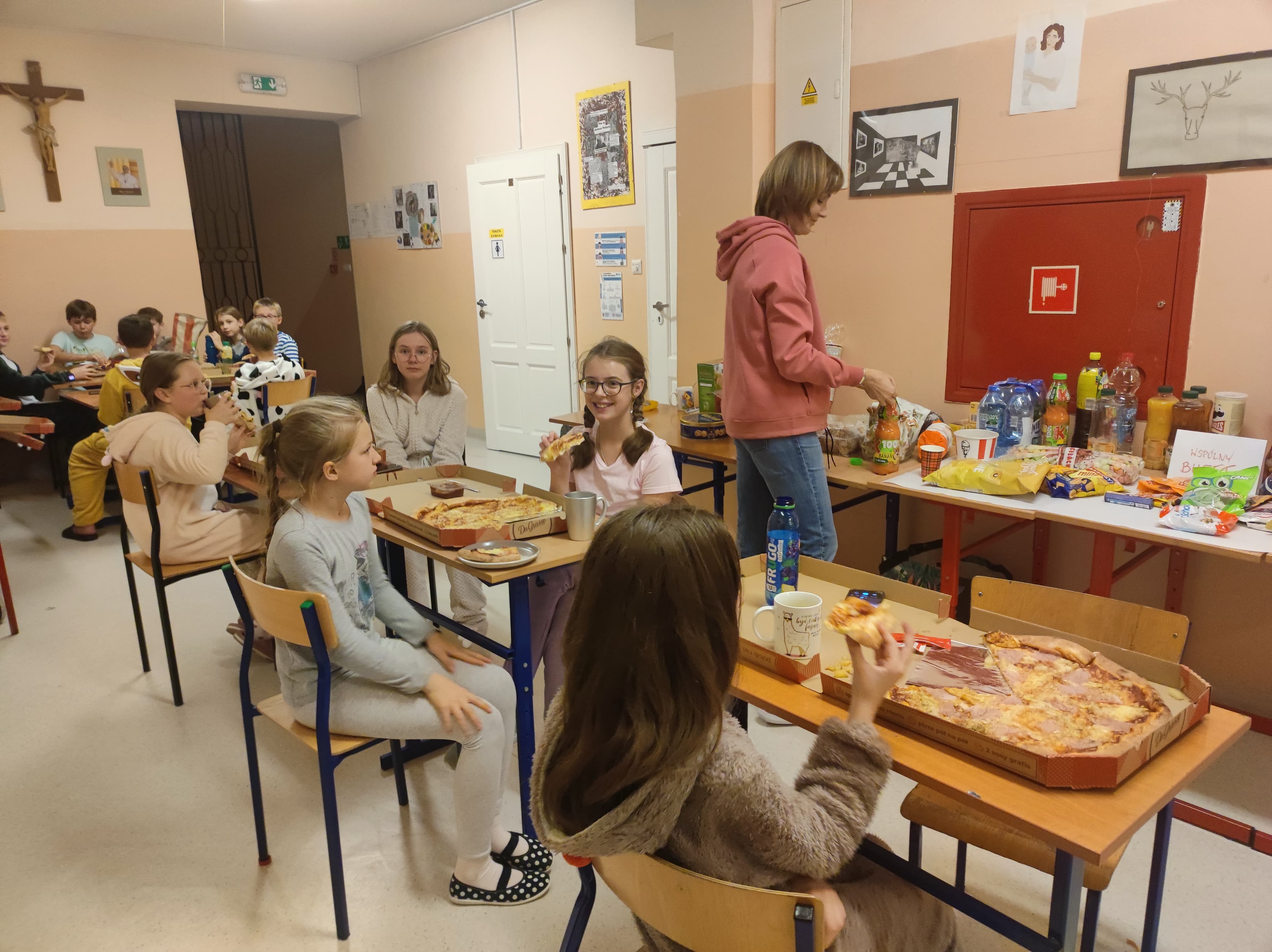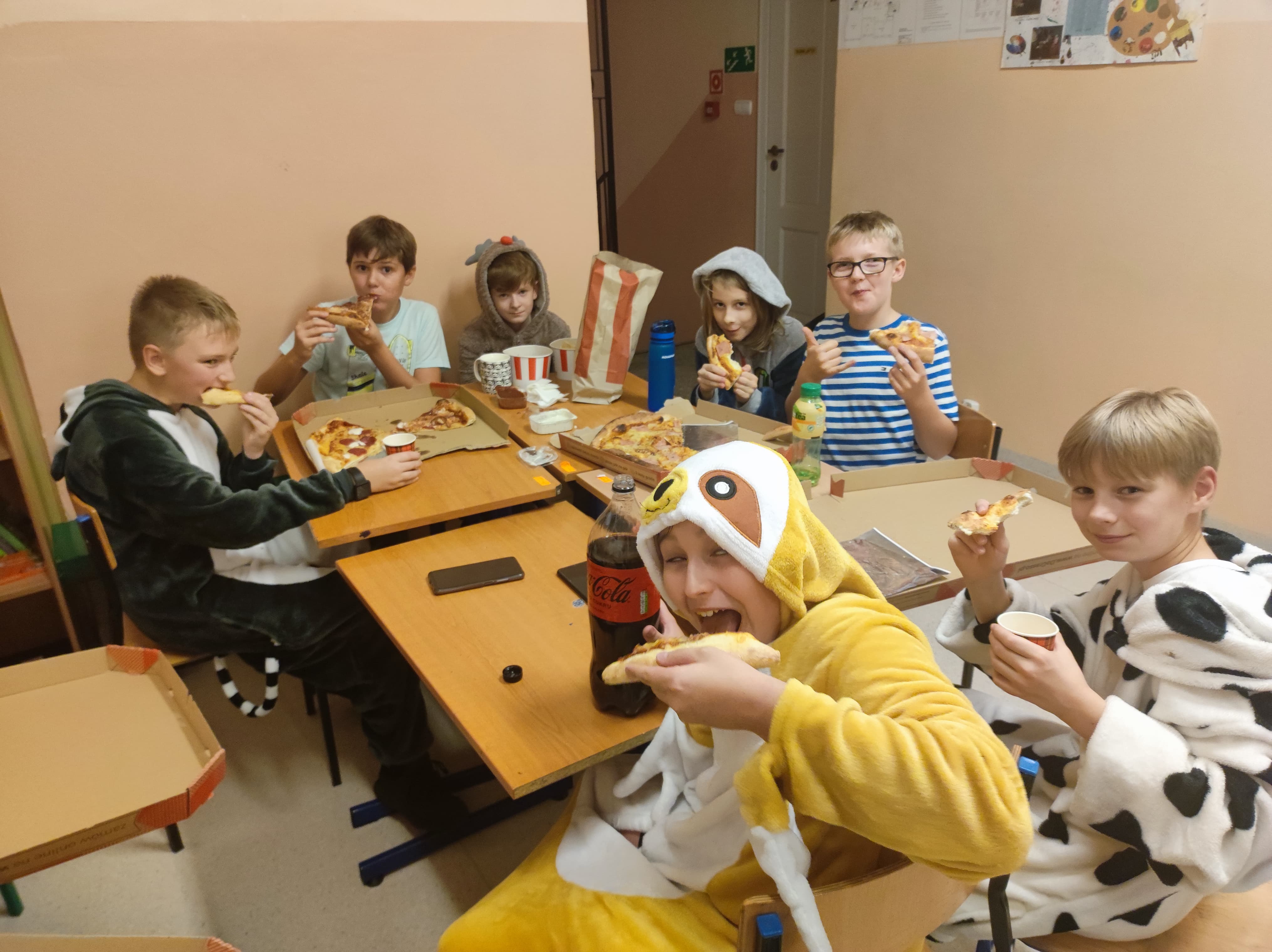 W pewnien piątkowy wieczór, a właściwie piątkową noc klasa 5 nocowała w budynku szkolnym. Impreza była różnorodna: przygotowanie pokoi, sali stołówkowej i wspólnego bufetu, wspólne zjedzenie kolacji, gry integracyjne, zabawa w ciemnego chowanego w ciemnej szkolnej piwnicy - to wszystko zapewniło uczniom i opiekunom niemałą rozrywkę, ale... po cóż się rozpisywać, to trzeba zobaczyć, na zdjęciach :)