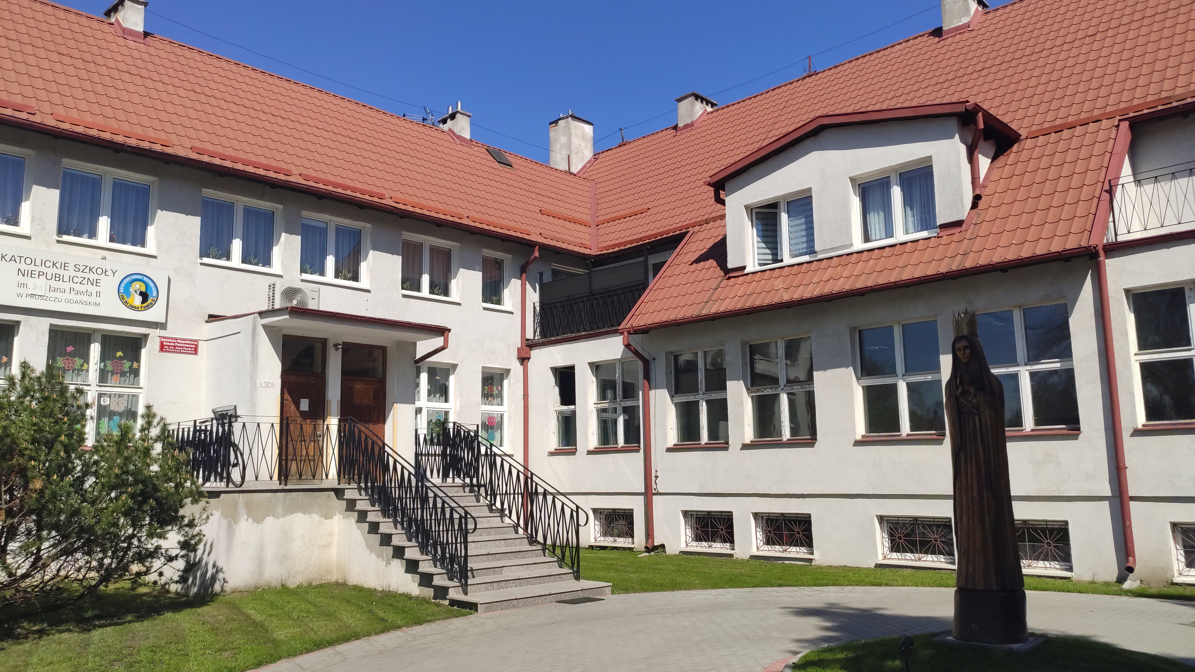 Katolickie Szkoły Niepubliczne powstały w 2004 roku. Mamy więc już ponad piętnastoletnie doświadczenie. Szkoła mieści się w dwukondygnacyjnym ponad stuletnim budynku, który przeszedł remont generalny. Budowla ta to nie tylko zwykły ceglany budynek z witrażem nad głównym wejście, ale też spory fragment historii naszego miasta. W budynku mieszczą się klasy lekcyjne, świetlica i biblioteka. Szkoła posiada ogródek z trawnikiem i ławeczkami, które w ciepłe dni są wykorzystywane do prowadzenia zajęć lekcyjnych.