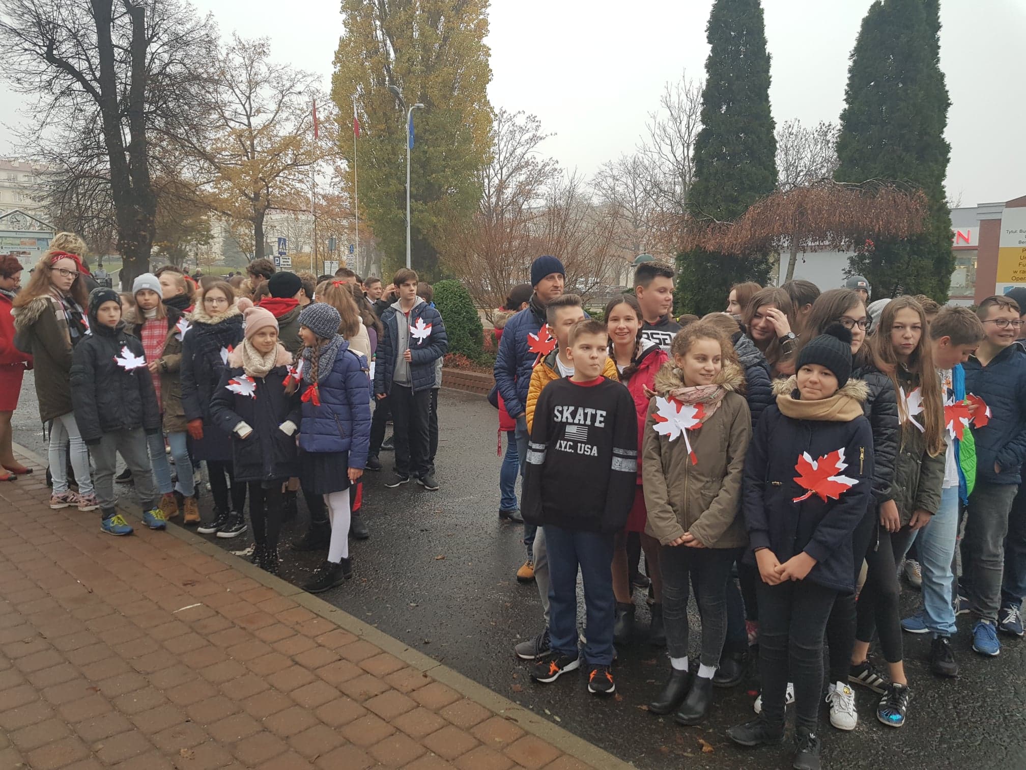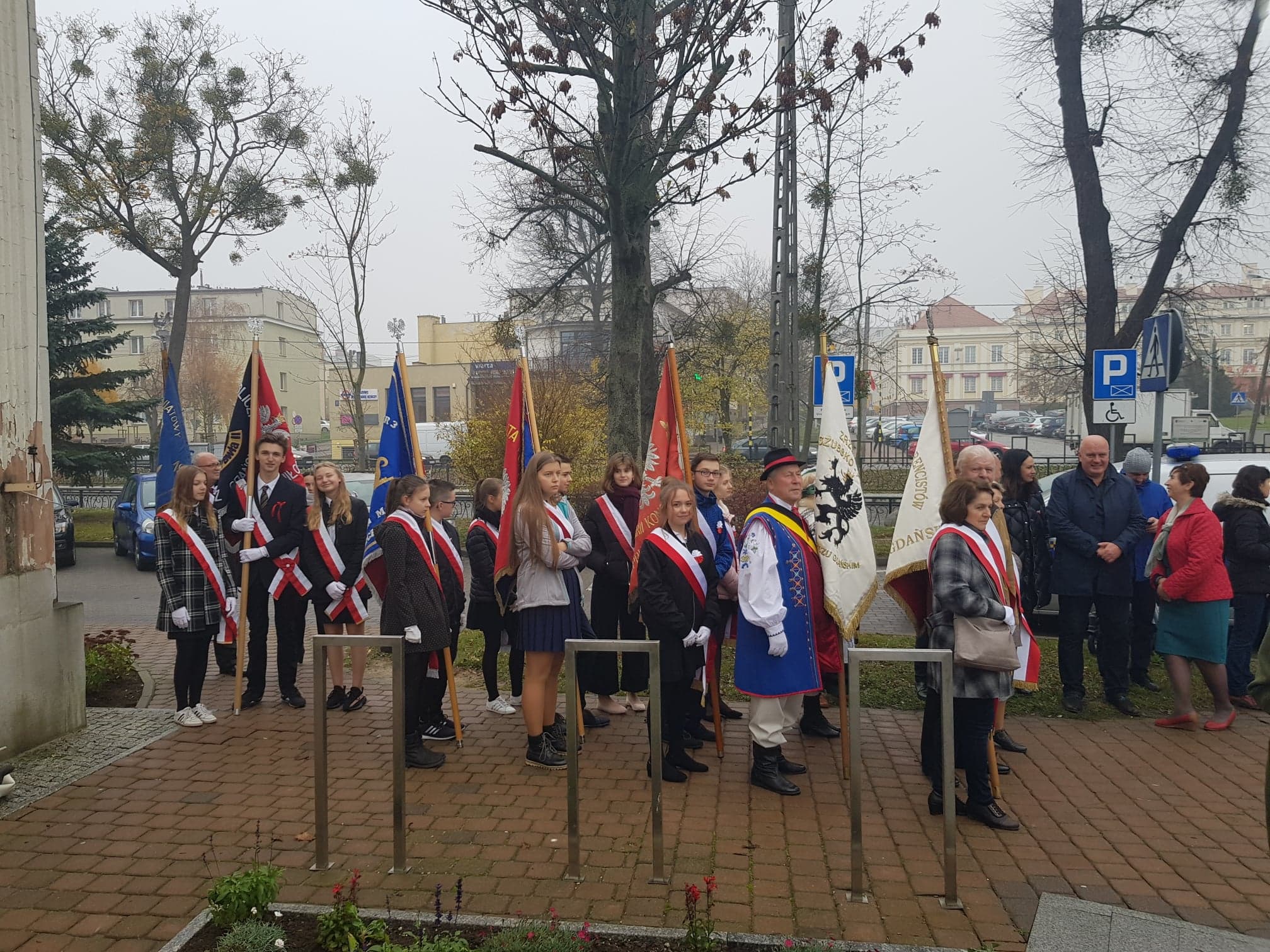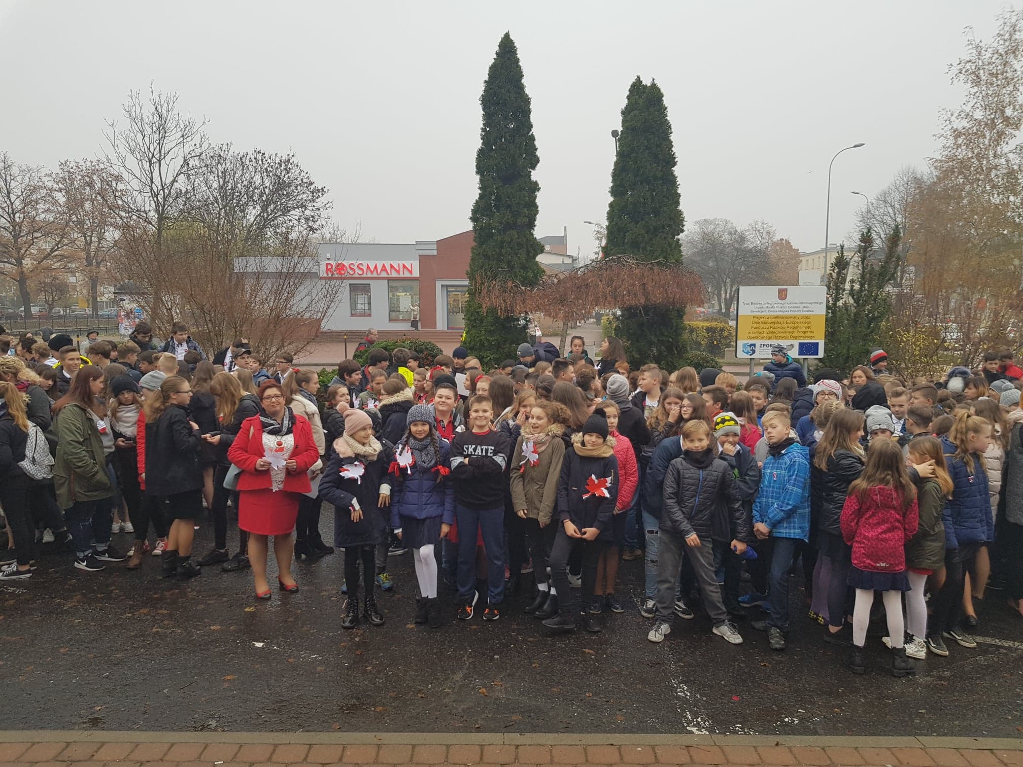09.11.2018 r. uczniowie naszej szkoły wzięli udział w uroczystych obchodach 100 rocznicy odzyskania Niepodległości pod budynkiem Urzędu Miasta w Pruszczu Gdańskim. Obchody rozpoczęto uroczystym zawieszeniem na budynku Urzędu Miejskiego Godła Rzeczpospolitej Polskiej, namalowanego w deszczowy poranek 26.10.2018 r. przez uczniów pruszczańskich szkół. Wielkie malowanie było jednoczenie próbą pobicia rekordu Guinnessa, którego certyfikat został wręczony podczas dzisiejszych obchodów. O godzinie 11:11, uczniowie KNSP wzięli udział w akcji "Rekord dla Niepodległej" i wspólnie z uczniami z innych pruszczańskich szkół zaśpiewaliśmy 4-zwrotkowy hymn narodowy.