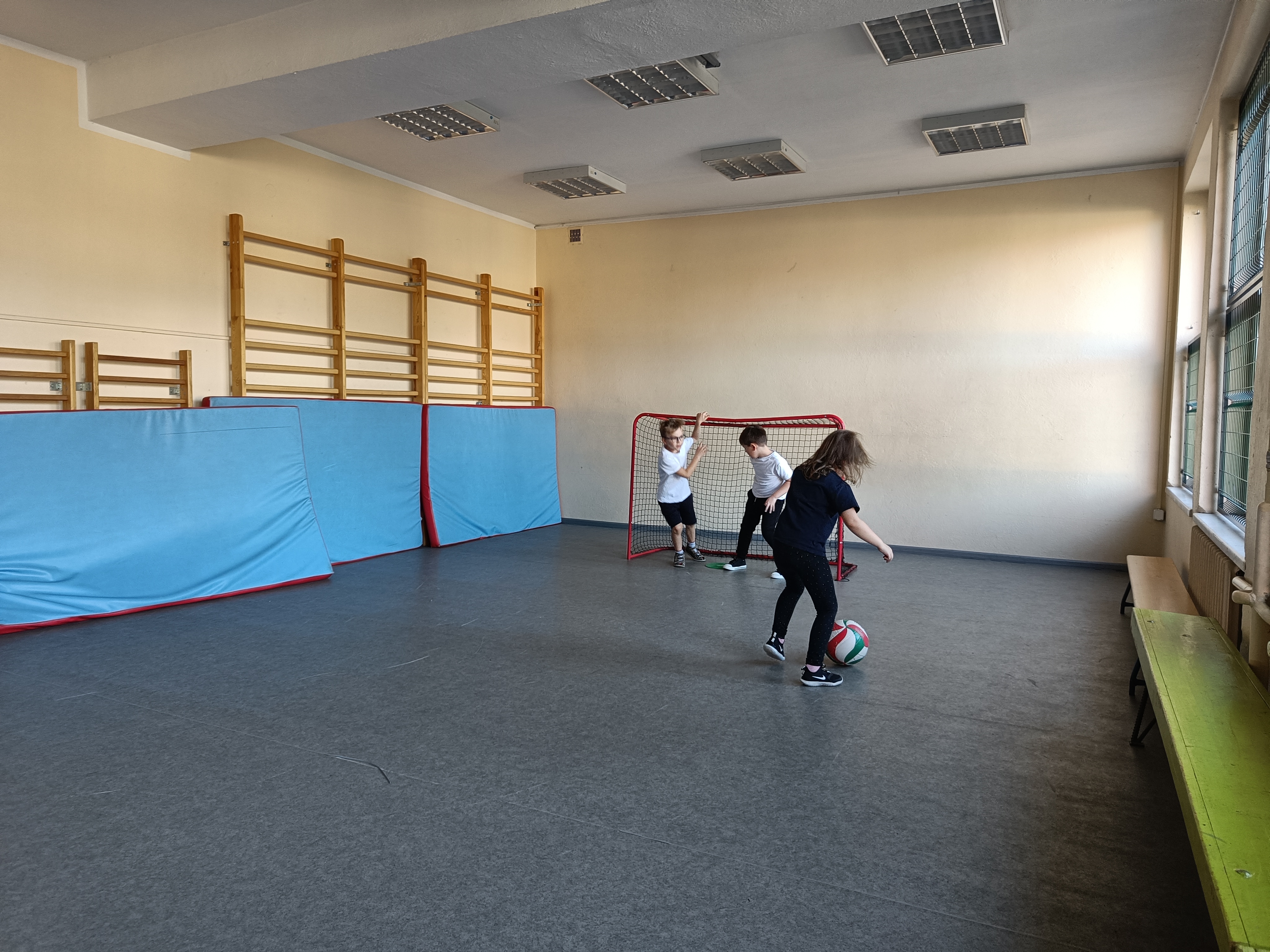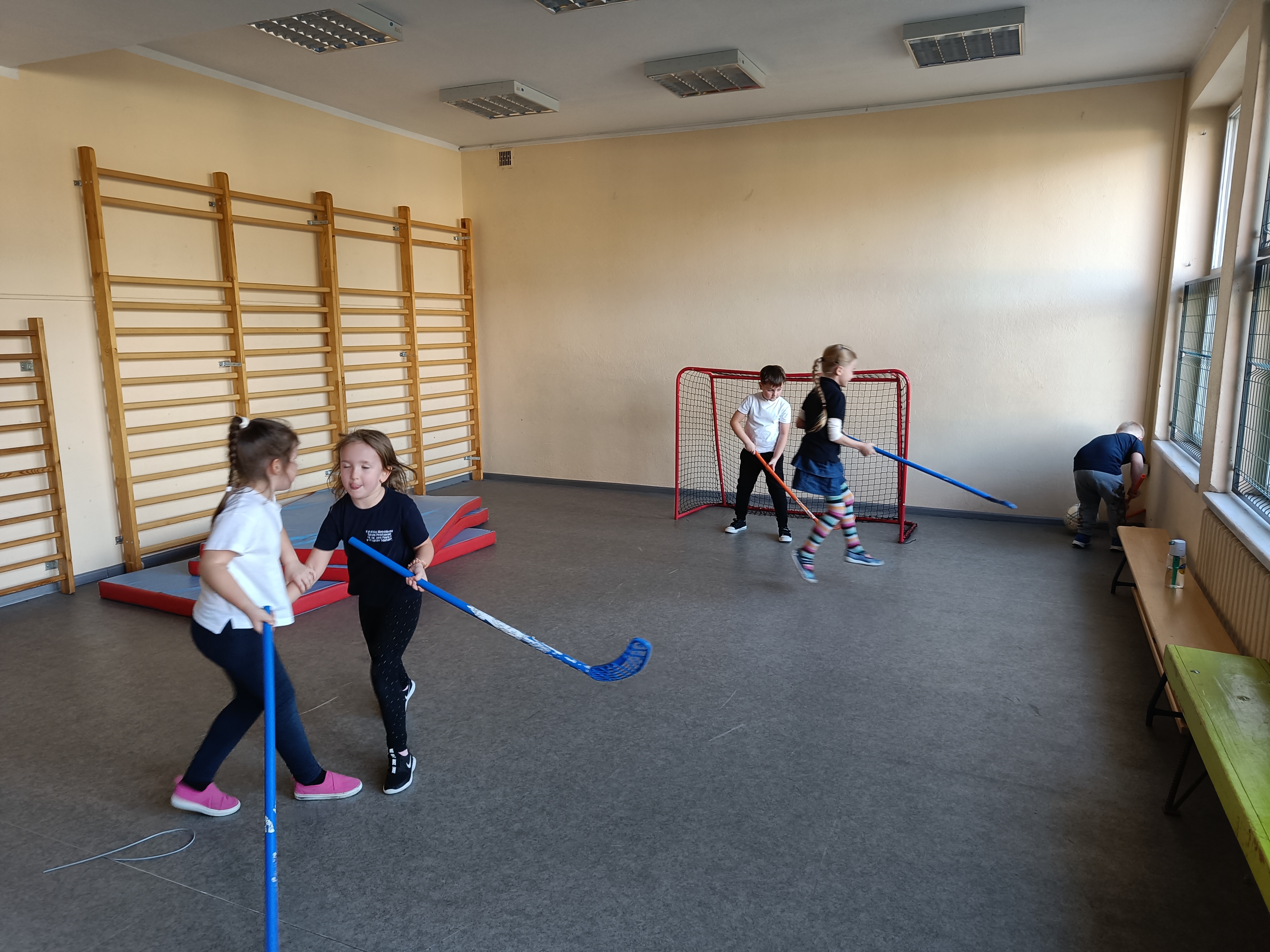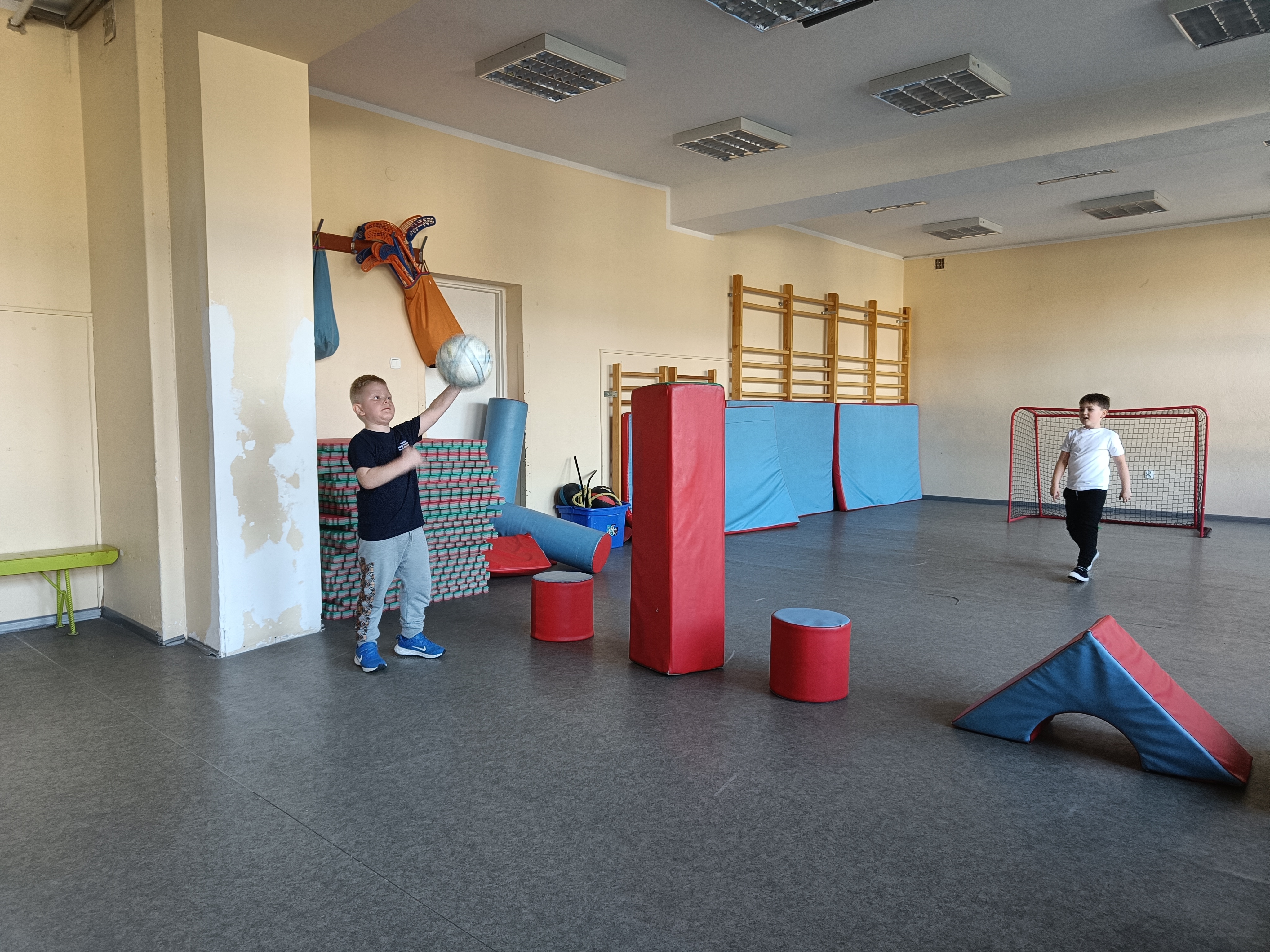 Piotruś wcielił się w rolę nauczyciela i poprowadził lekcję wf-u. Podczas tej lekcji zaprosił dzieci do gry w piłkę nożną z przeszkodami :) , nastepnie było przeciąganie liny i na koniec gra w unihokeja. Piotrka lekcja spodobała się wszystkim dzieciom.