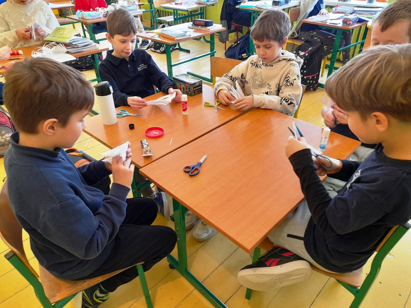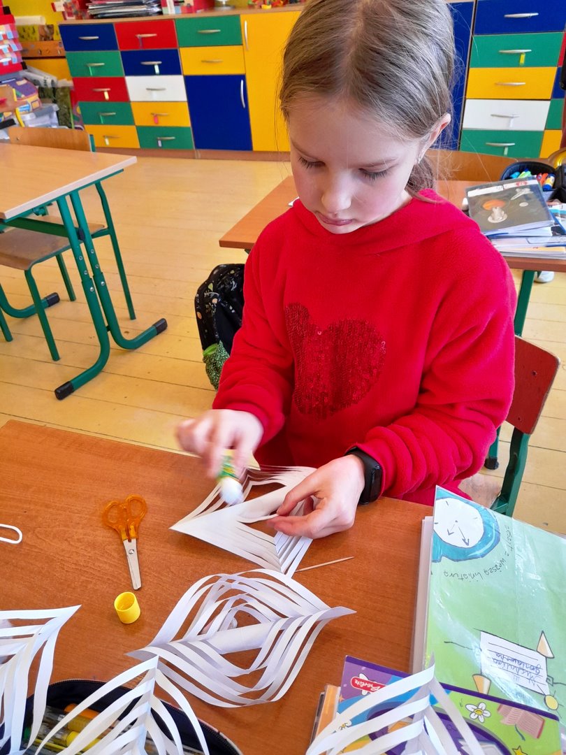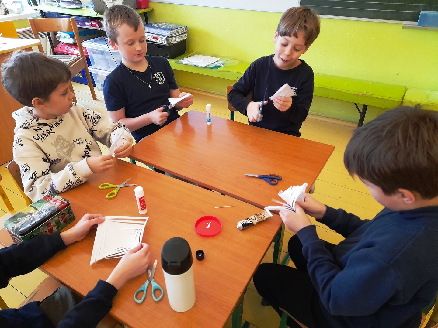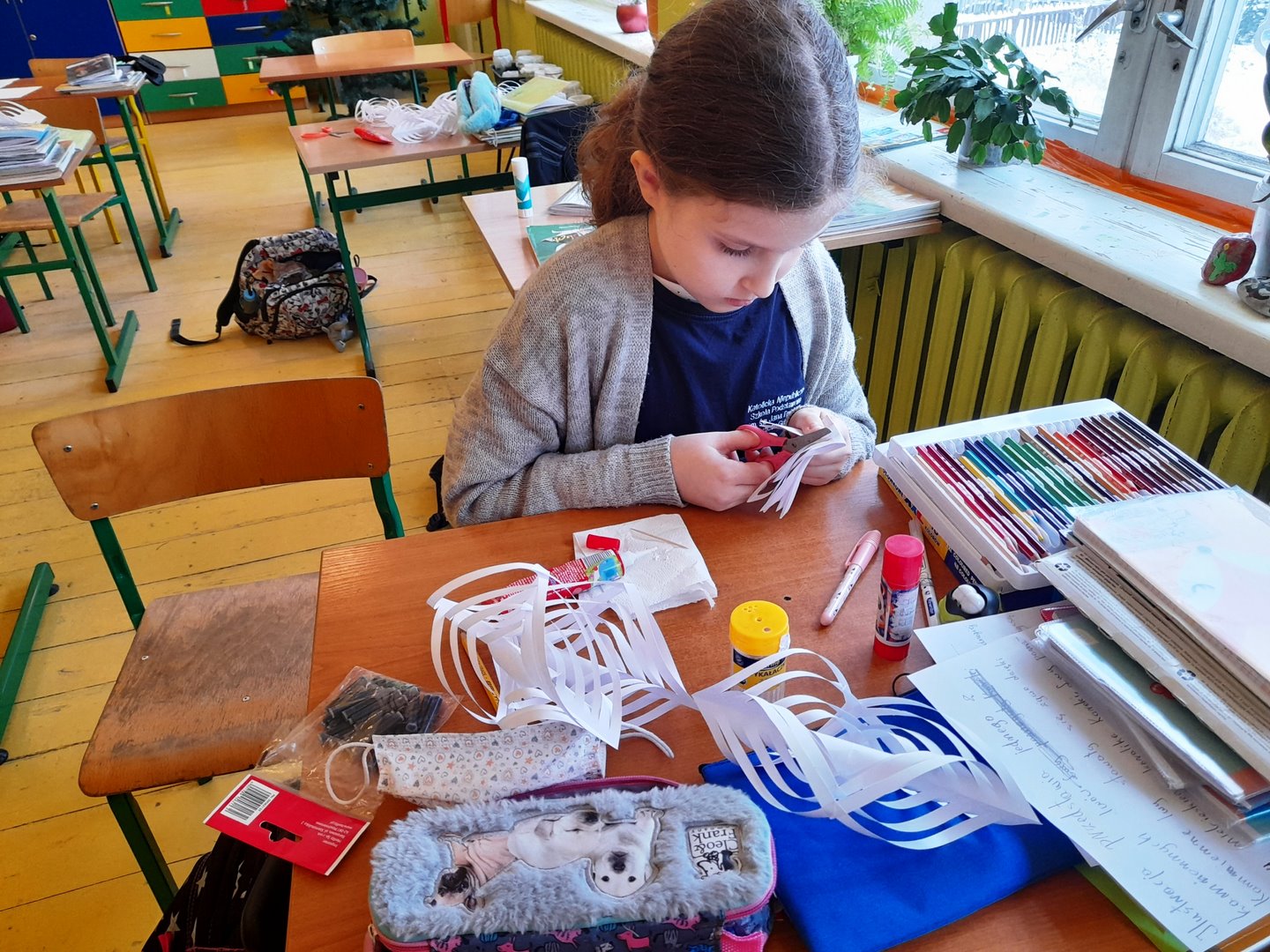 Uczniowie klasy 3 edukacji wczesnoszkolnej przygotowali dla podopiecznych dzieci z Domu dla Dzieci w Straszynie samodzielnie wykonane papierowe gwiazdy, które będą dekoracją świąteczną. Każda gwiazda była imienna dedykowana podopiecznemu placówki.