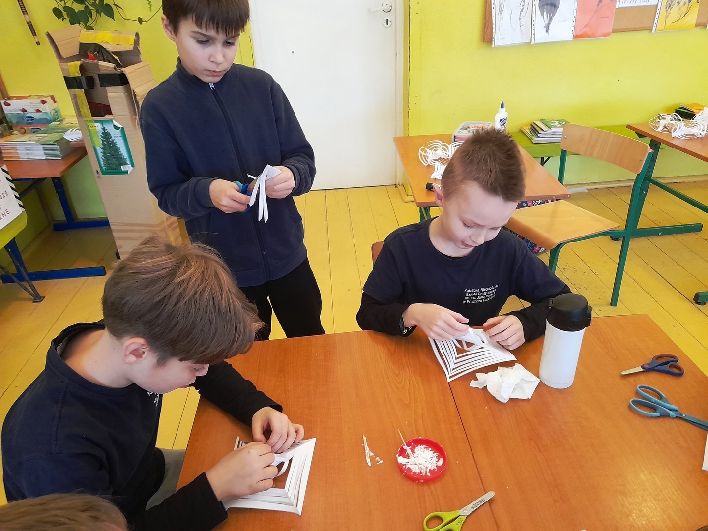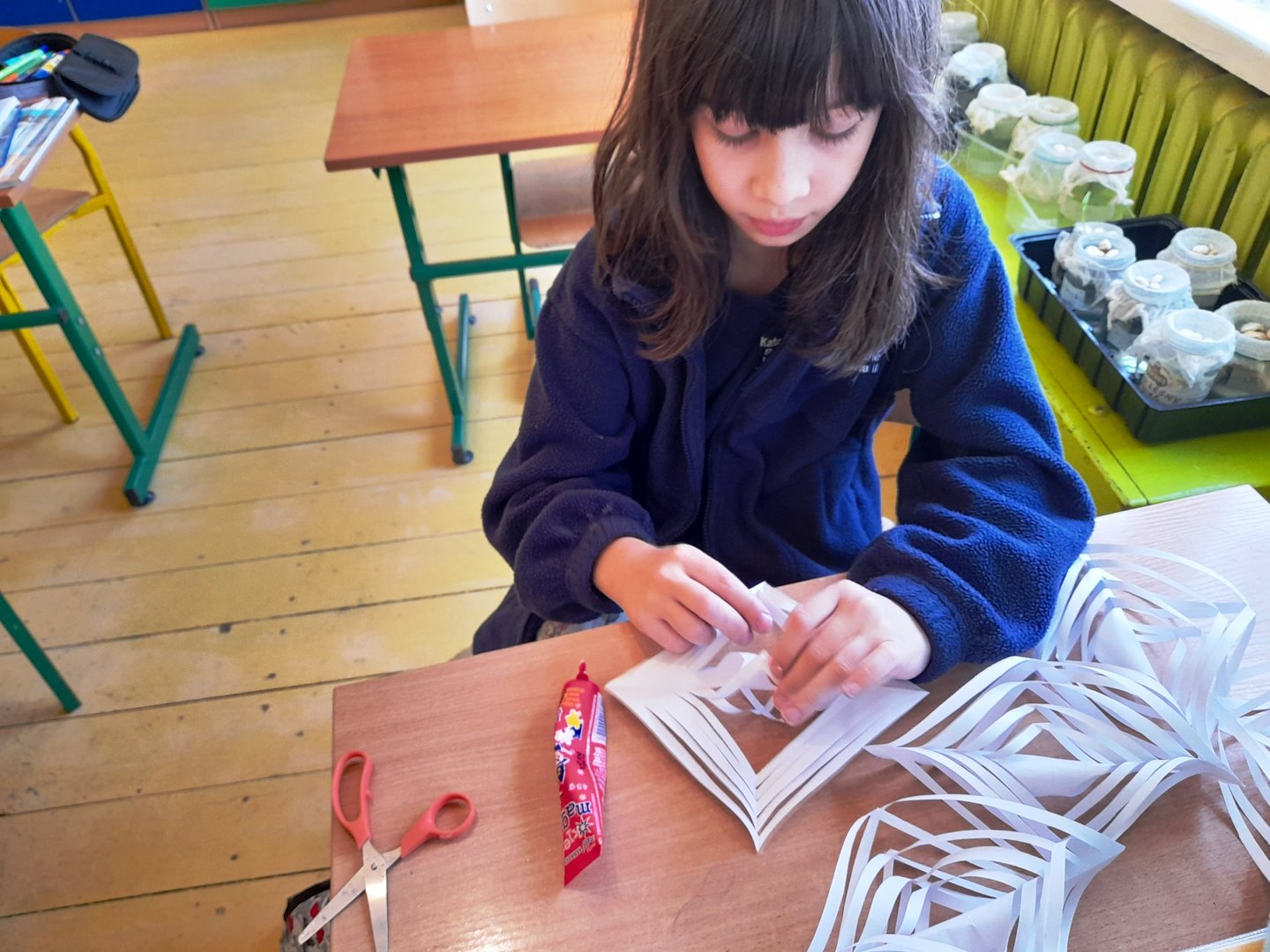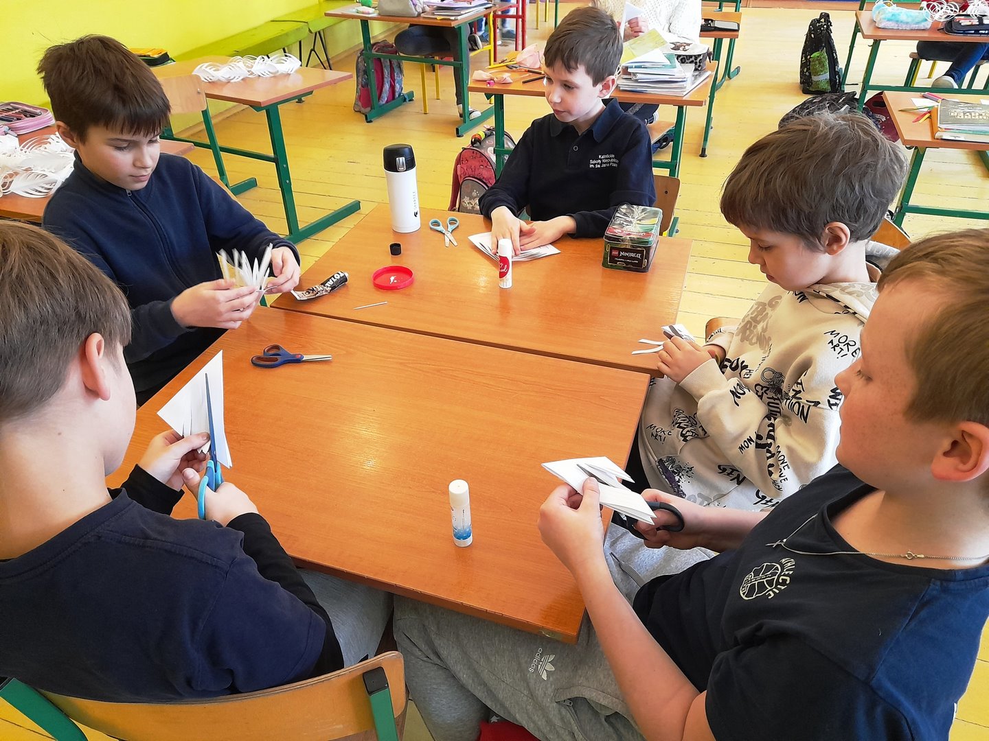Uczniowie klasy 3 edukacji wczesnoszkolnej przygotowali dla podopiecznych dzieci z Domu dla Dzieci w Straszynie samodzielnie wykonane papierowe gwiazdy, które będą dekoracją świąteczną. Każda gwiazda była imienna dedykowana podopiecznemu placówki.
