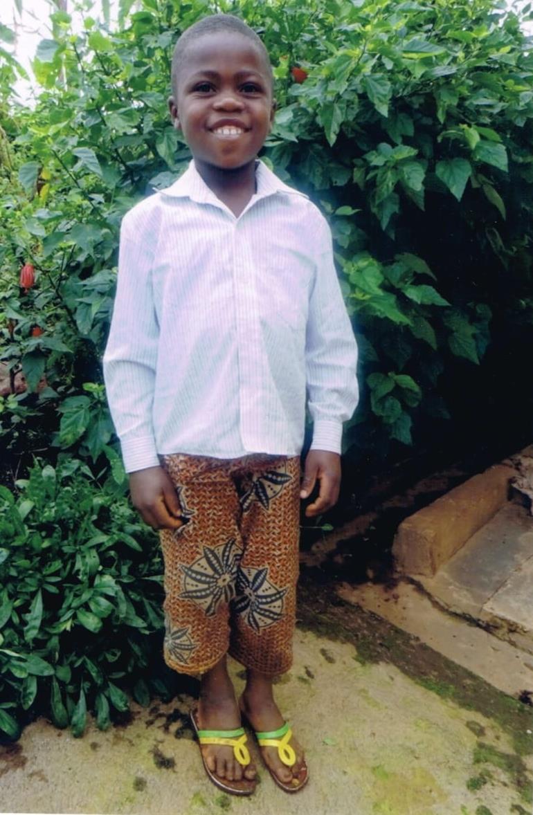 Ma prawie 11 lat i pochodzi z Kamerunu. Chodzi do 4 klasy szkoły podstawowej przy placówce misyjnej w Mbei prowadzoenej przez Zgromadzenie Sióstr Pasjonistek. Posiada siedmioro rodzeństwa w wieku od 16 do 3 lat. Mieszka wraz z rodziną w nieukończonym domu z niewypalanej cegły. Mają 3 łóżka, 1 stół, 2 krzesła, szafę i ławki. Wodę czerpią z potoku znajdującego się u podnóża wzgórza, na którym mieszkają. Dostęp do wody pitnej jest często ograniczony. Rodzice zajmują się rolnictwem, dzięki czemu mają środki na podstawowe produkty spożywcze. Mimo to najmłodsze trojaczki pozostają niedożywione.